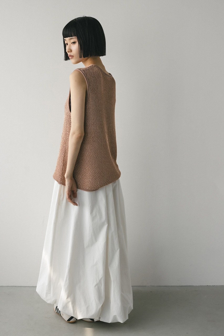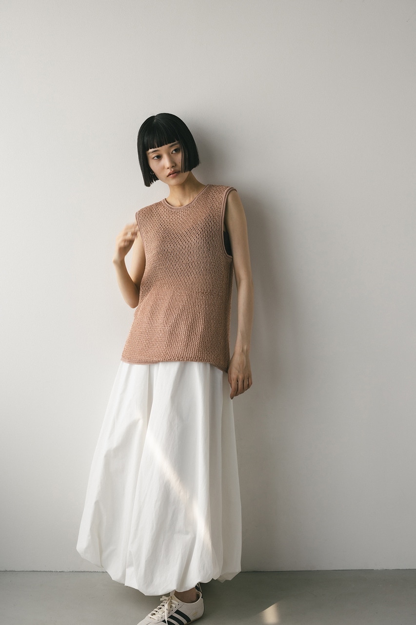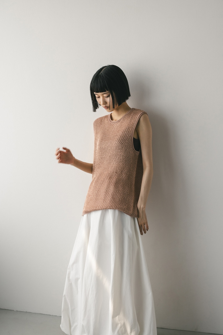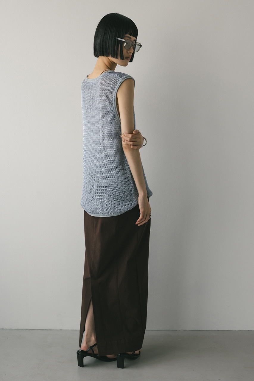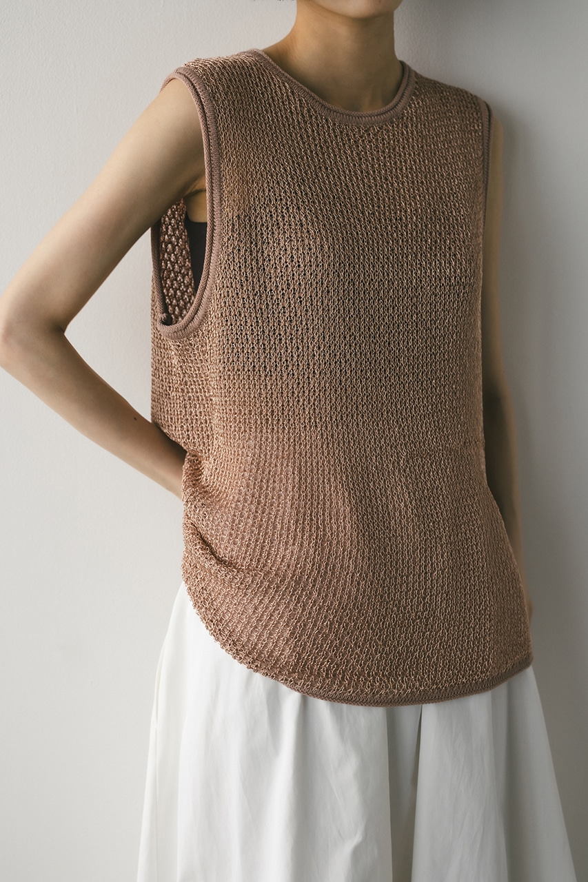 涼し気な光沢感と程よい透け感が映えるニットタンク。