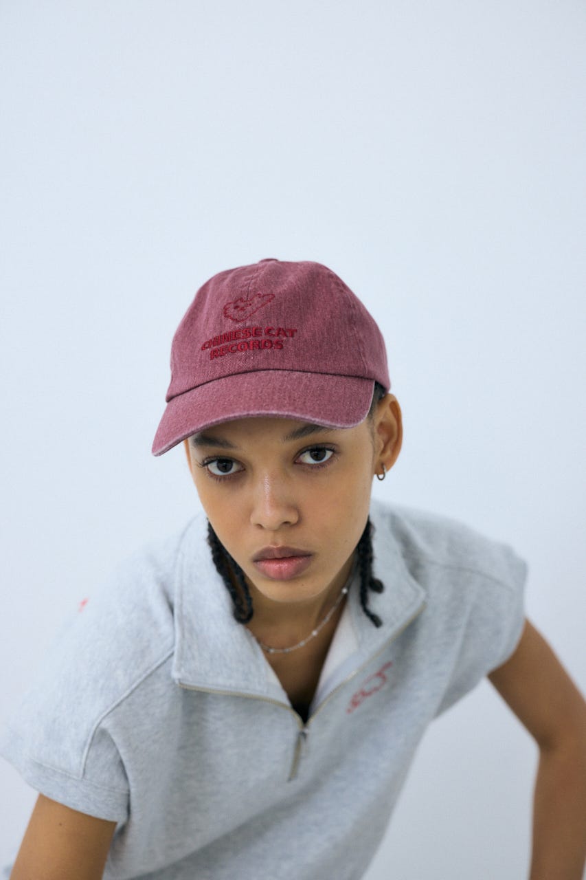 ■POINT:DJとしても活躍するMAYU KAKIHATAさんが手がける架空のレコードショップ「CHINESE CAT RECORDS」にまつわるアートワークを使用したコラボレーション企画のコットンロゴキャップ。