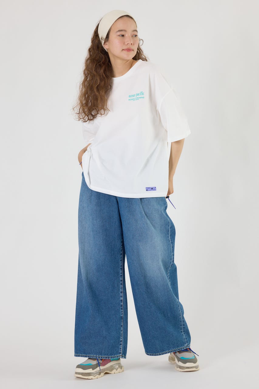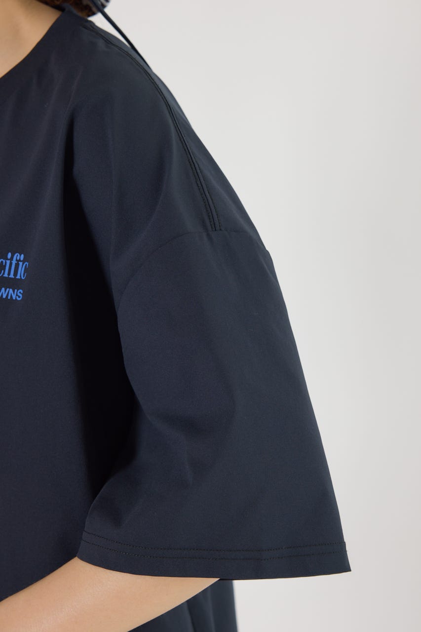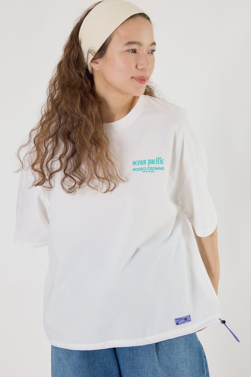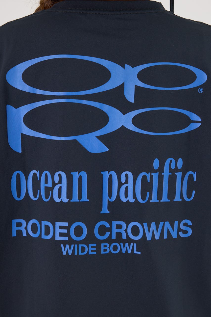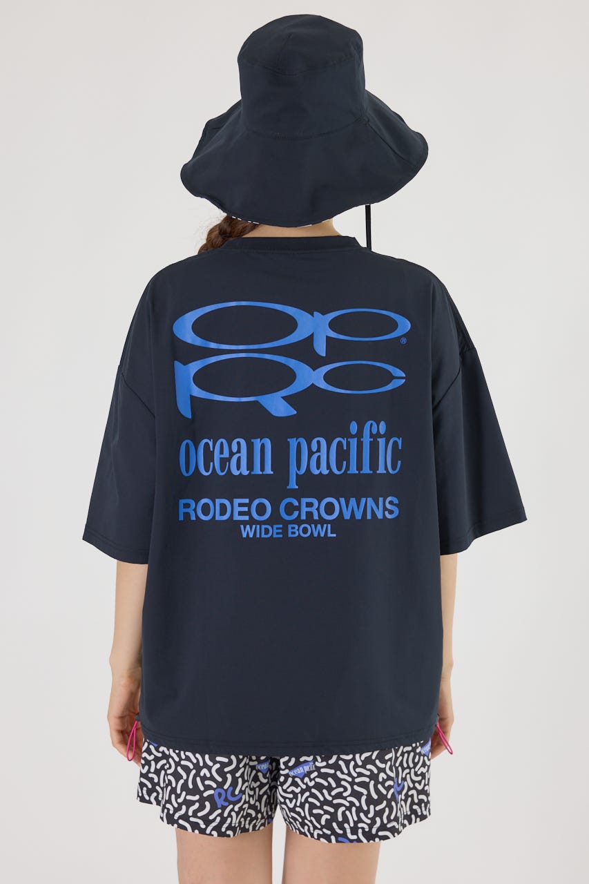 Ocean Pacificコラボ商品。コラボらしい両ブランドのロゴがプリントされたラッシュガードTシャツ。