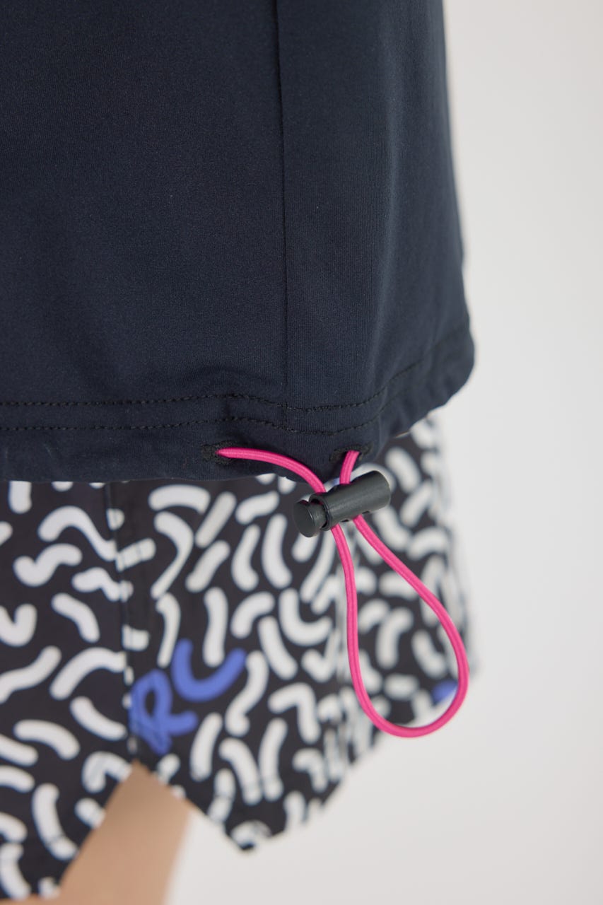 裾の両側に配したドローコードを絞ると、ふんわりと丸みのあるバルーンシルエットに変化。