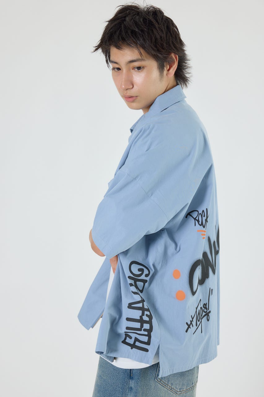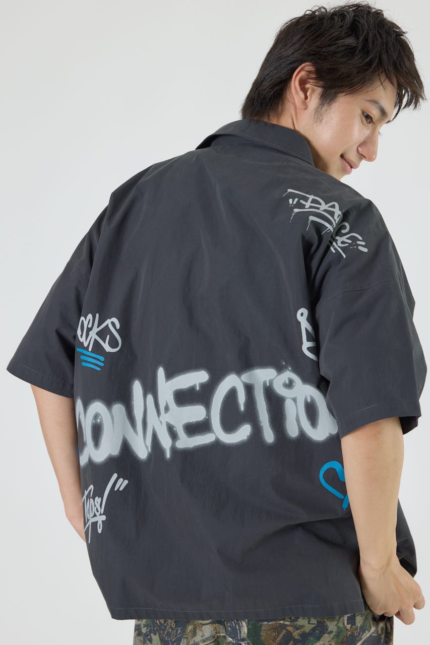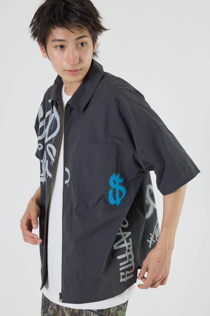 ストリートライクなグラフィックデザインが特徴的な半袖シャツ。