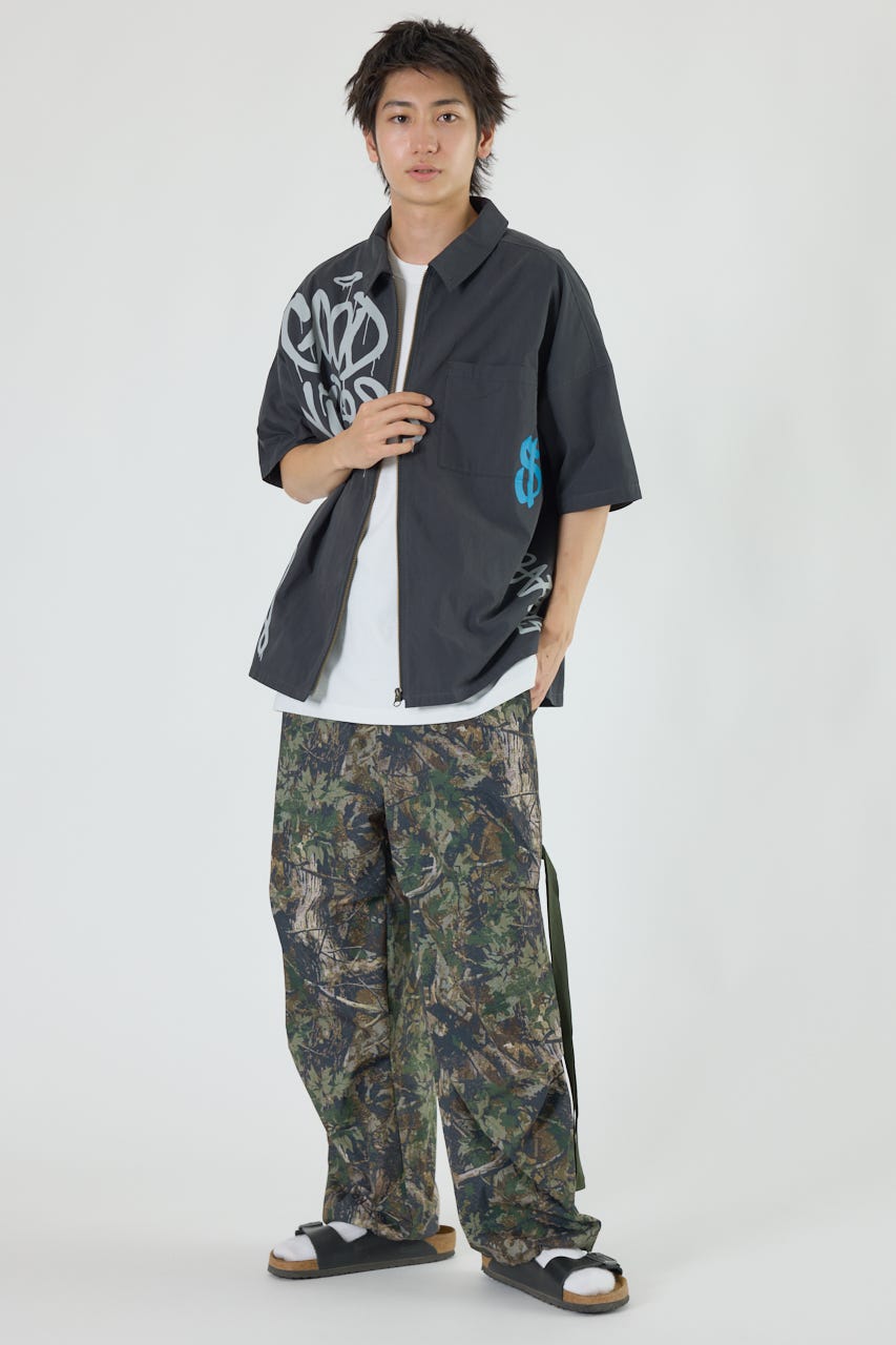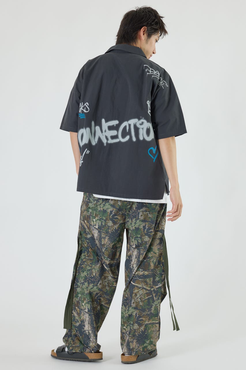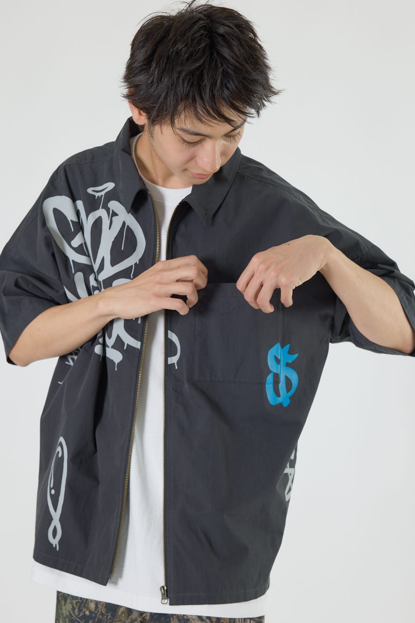 ストリートライクなグラフィックデザインが特徴的な半袖シャツ。