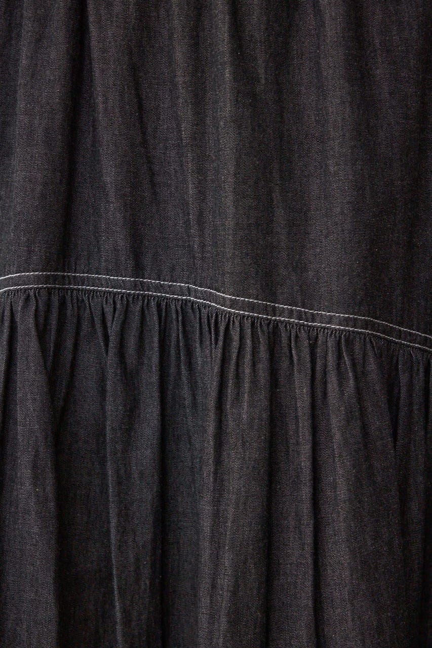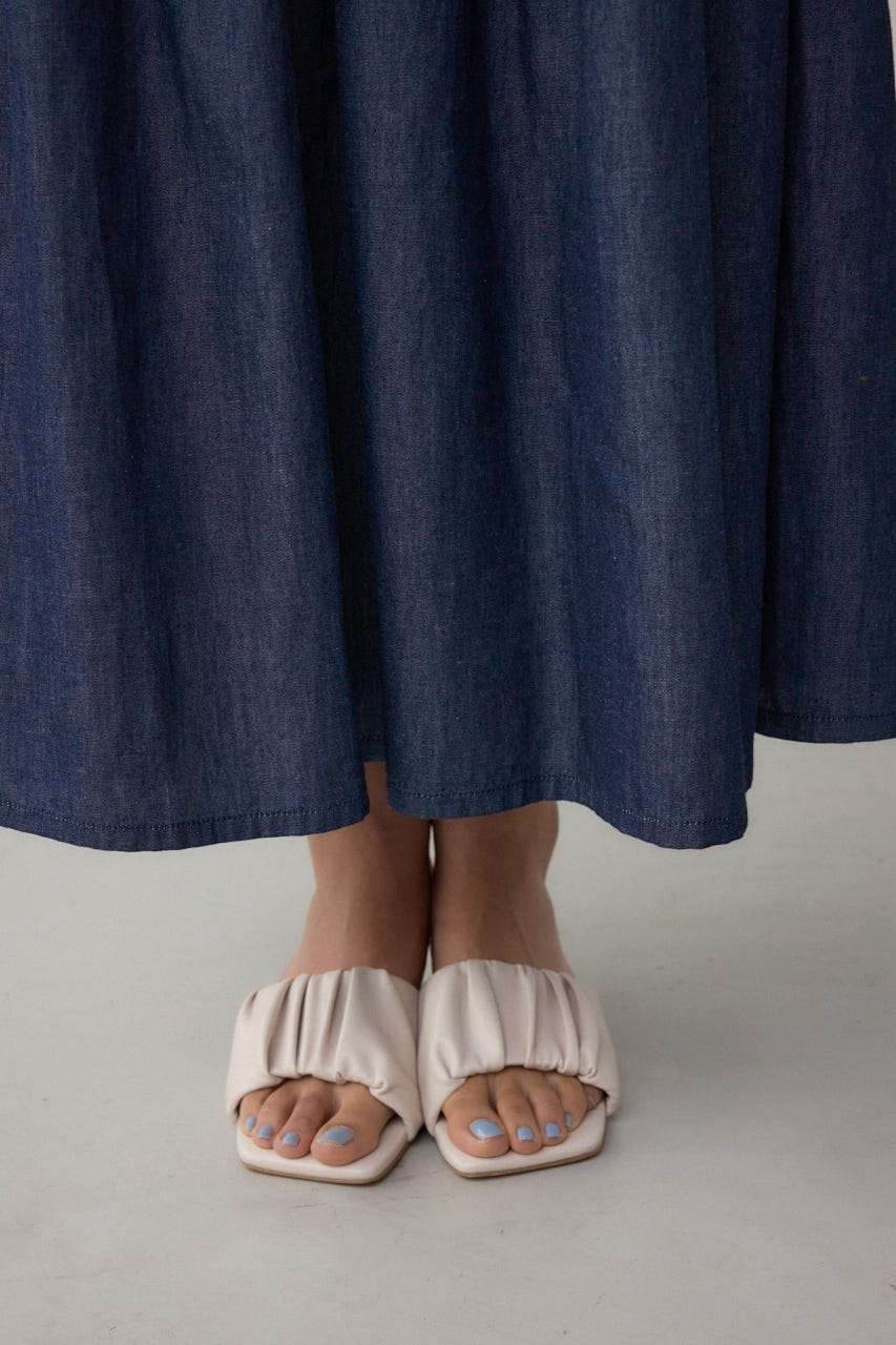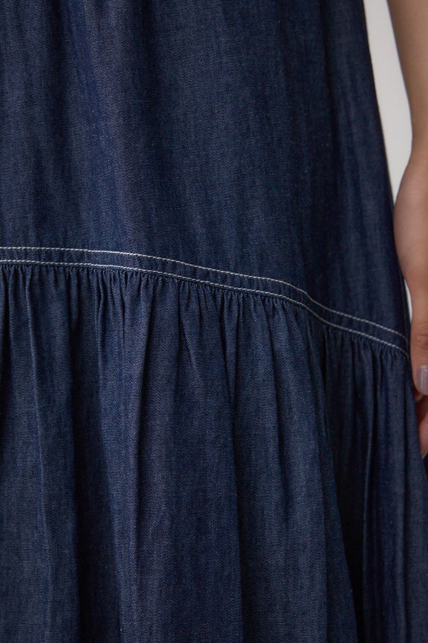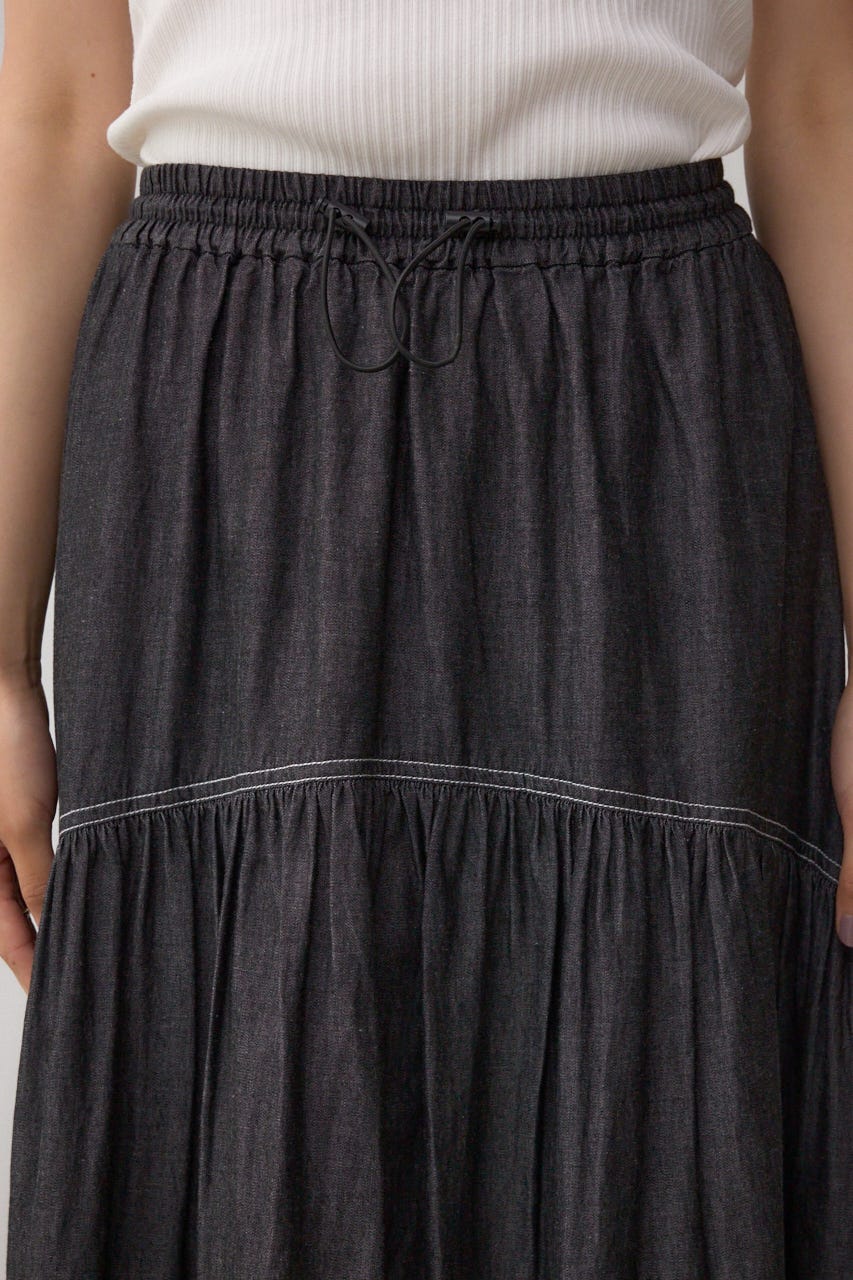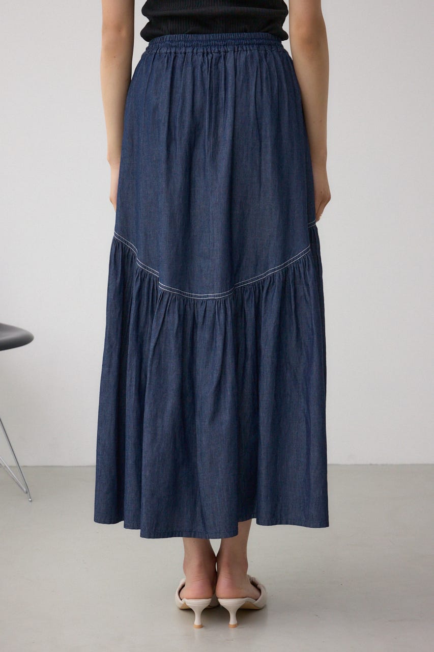 同素材のブラウス(250IAC30-163G フロントギャザースリーブブラウス)を合わせてセットアップとして着用すると、ワンピース風な着こなしになります。
