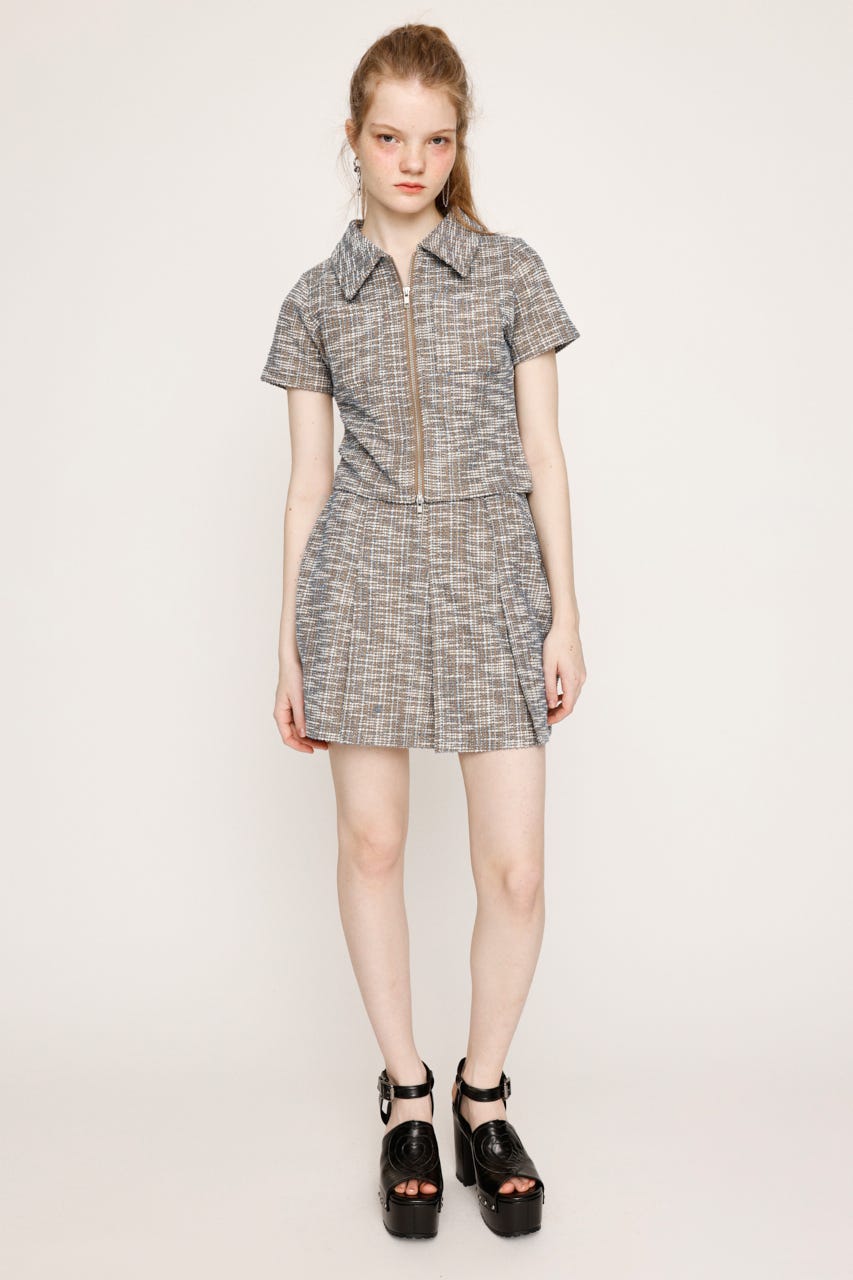 ツイード柄がポイントなのでシンプルなアイテムとの合わせがおすすめです。