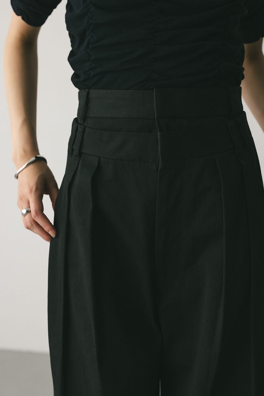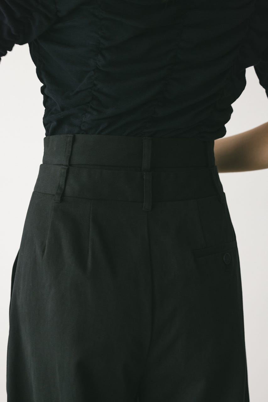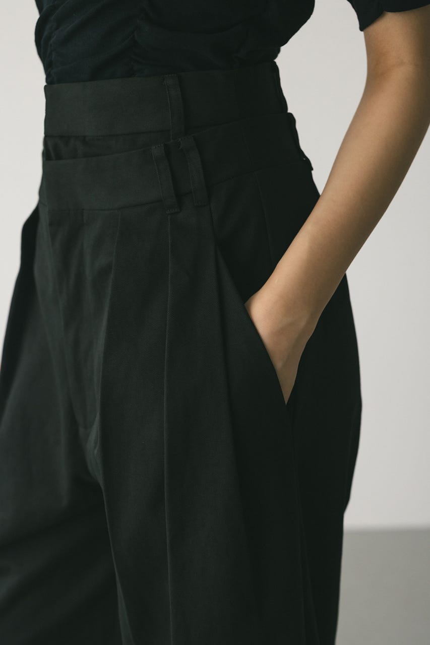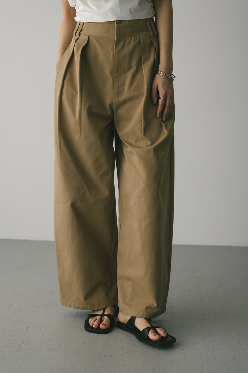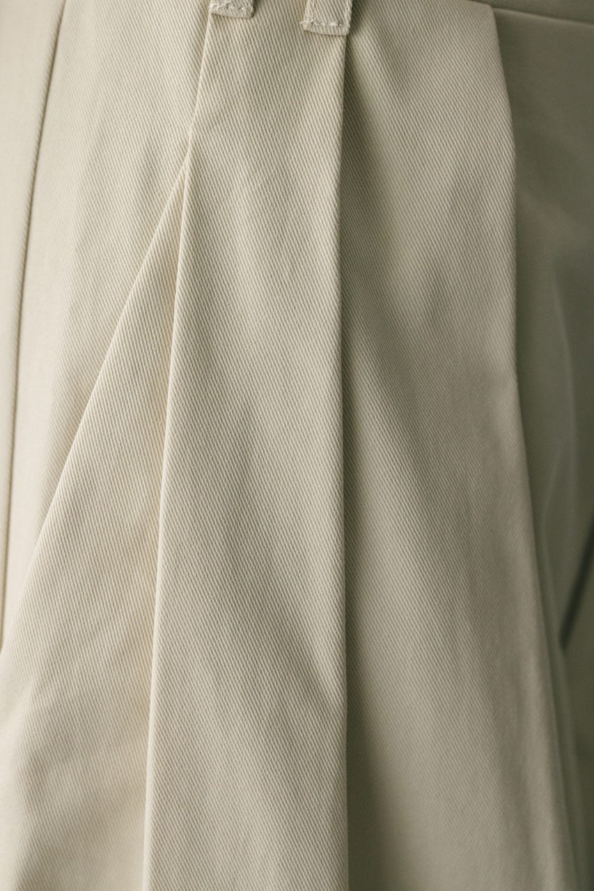 スタイルアップしてくれるレイヤーウエストがポイントの型崩れしにくいチノパンツ。