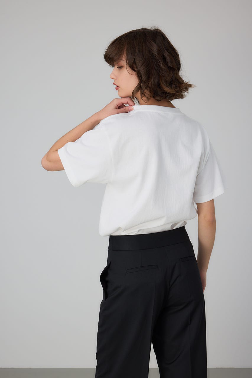 襟元はヨレにくいようにタブルステッチと裏バインダーを施してあり、肌あたりも柔らかく型崩れを防いでくれるのも嬉しいポイント。