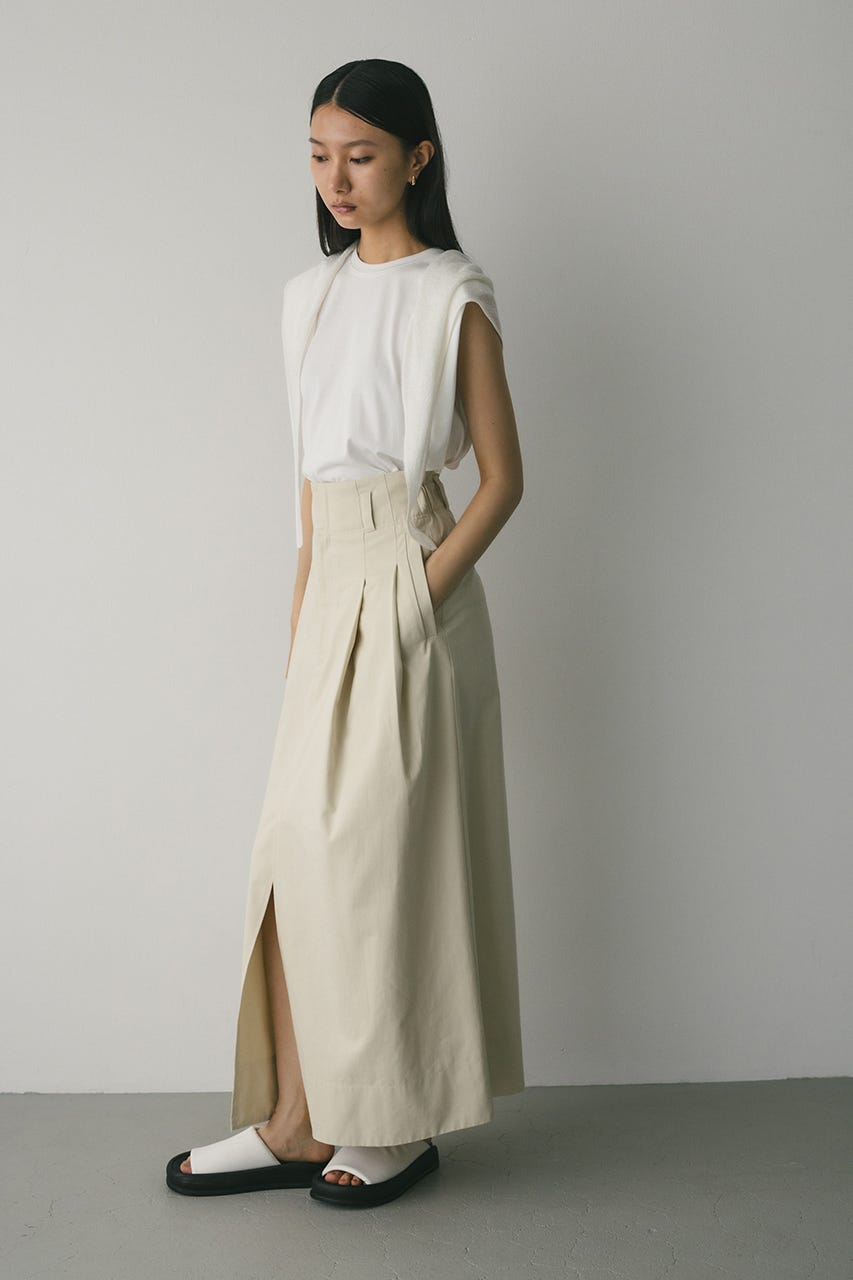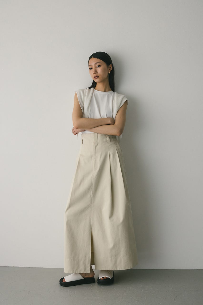 深めに入ったスリットが大人の抜け感をプラスしてくれるチノスカート。