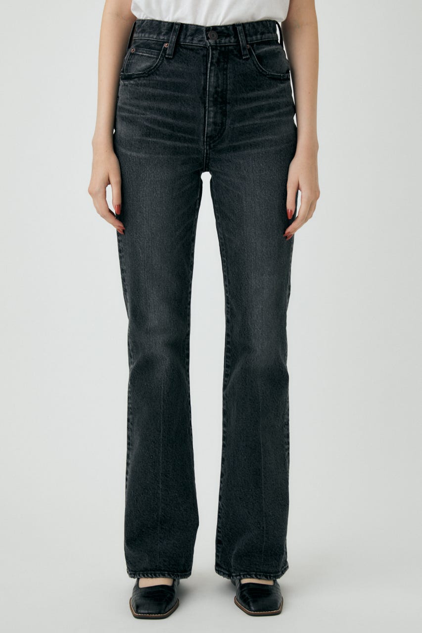04_Beautiful Silhouette 高めに設定したヒザ位置と裾に向けたフレアの分量で、脚を長く見せる効果を発揮します。コンパクトな腰回りから始まり太ももからひざ、そして裾にかけて描かれたラインが、脚全体を細く スラッと見せてくれます。