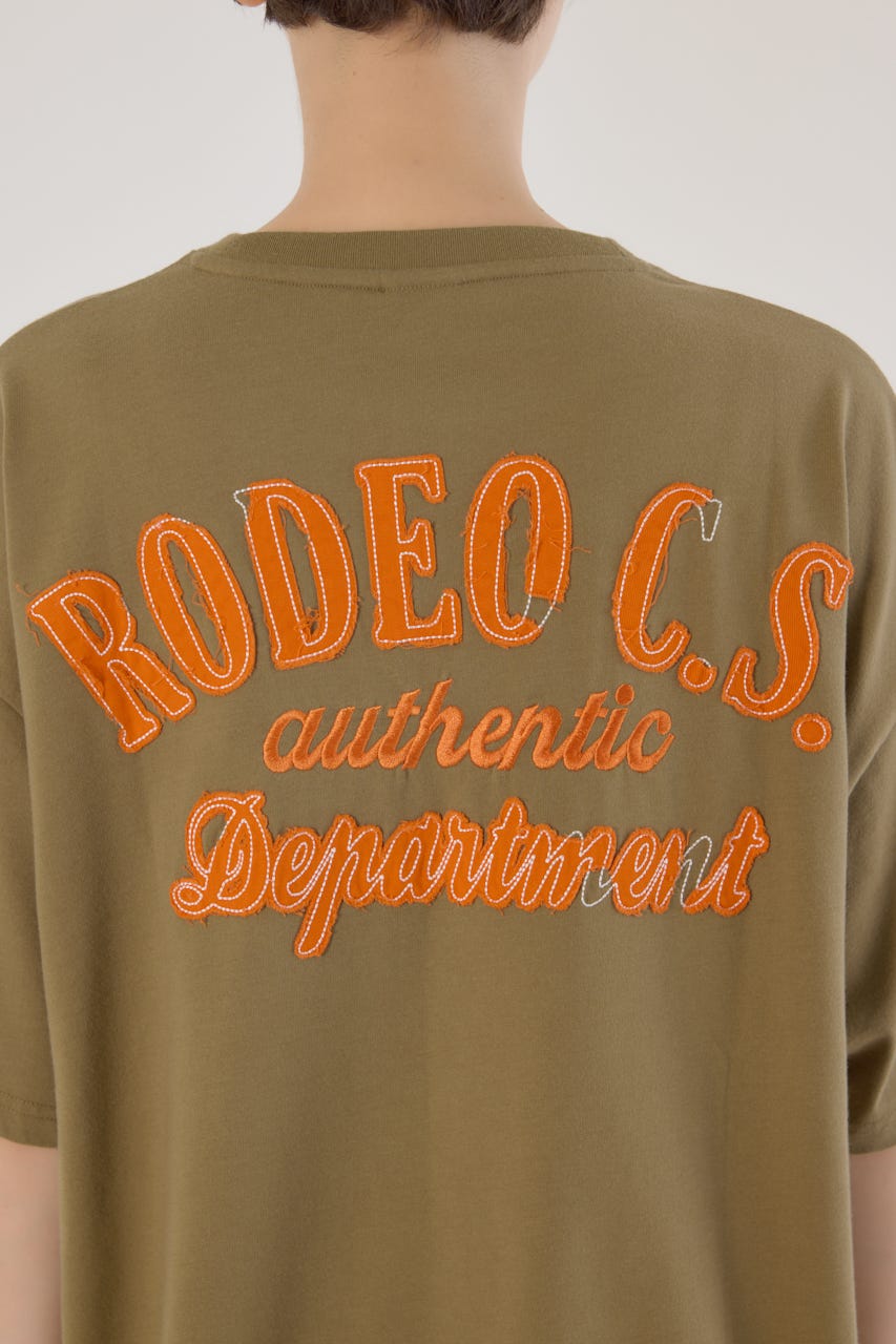 RODEOのロゴ部分がアップリケ仕様になった半袖Tシャツです。