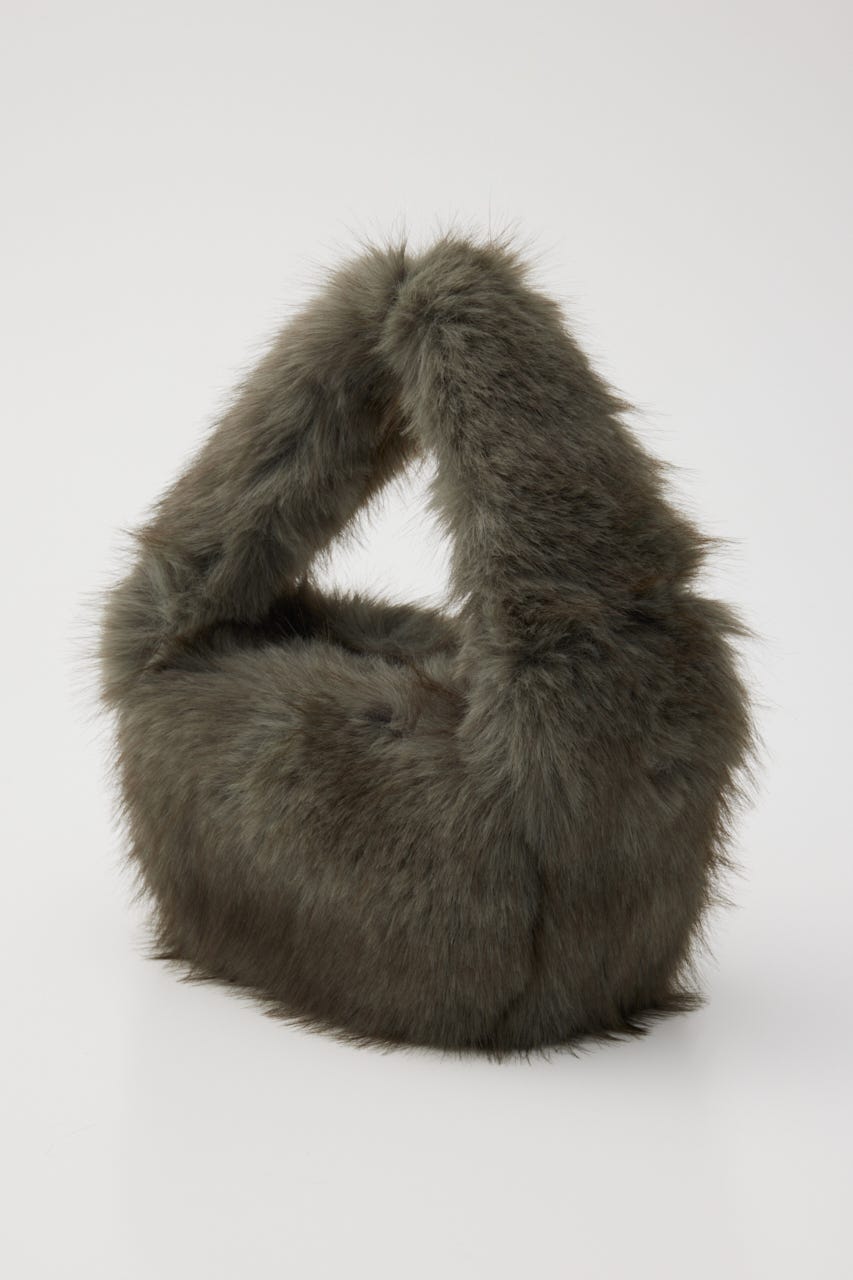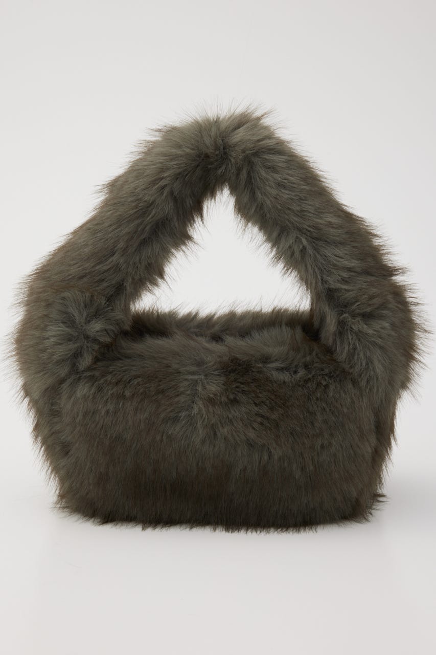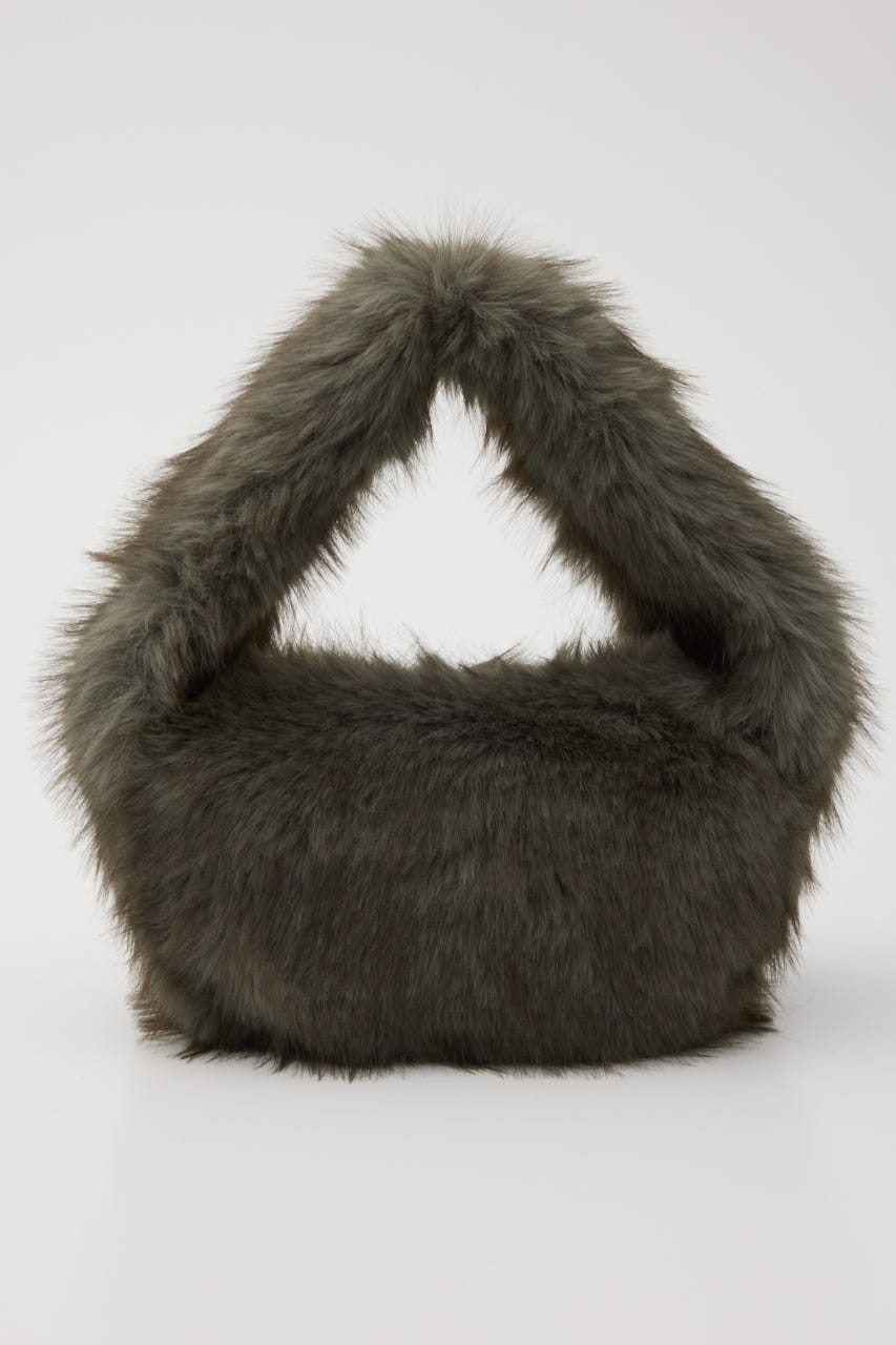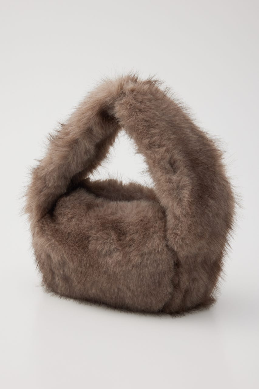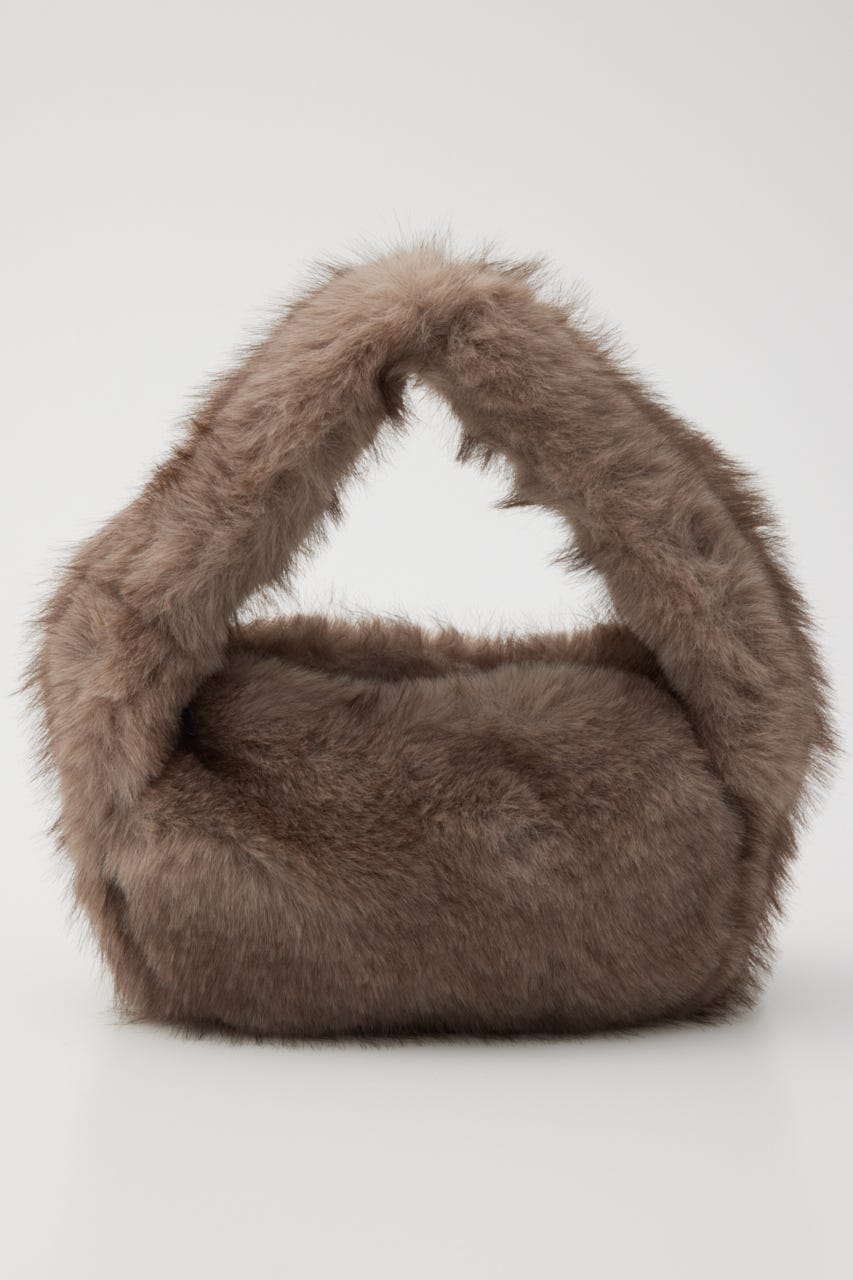 毛先と根元で色がグラデーションになったトップ染め手法のエコファーが高級感のあるワンハンドルバッグ。