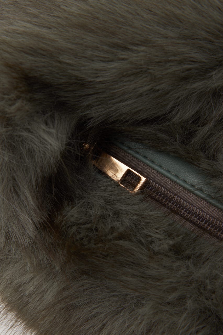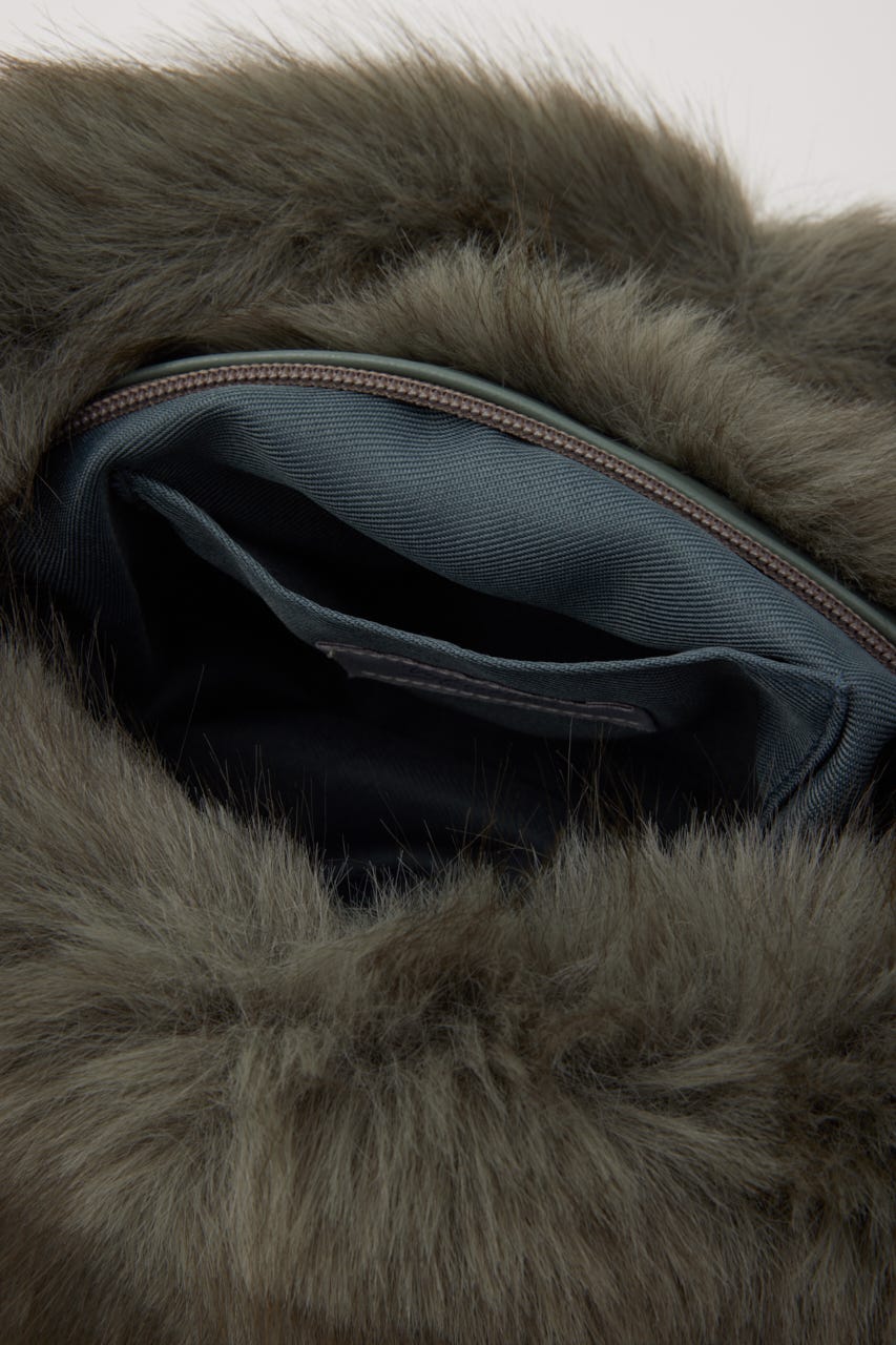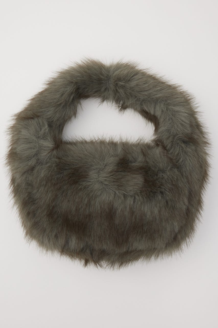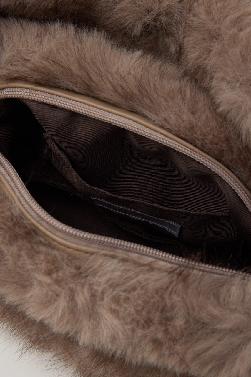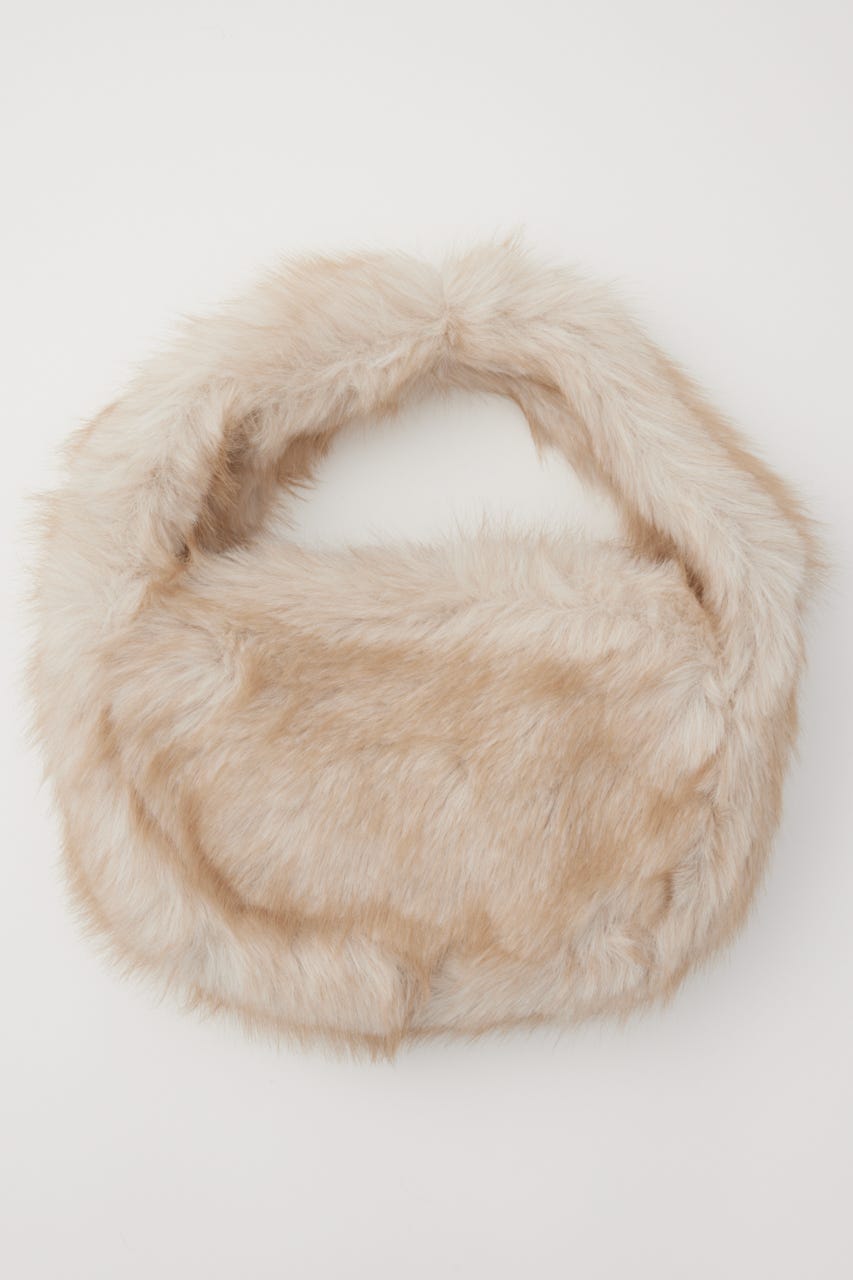 毛先と根元で色がグラデーションになったトップ染め手法のエコファーが高級感のあるワンハンドルバッグ。