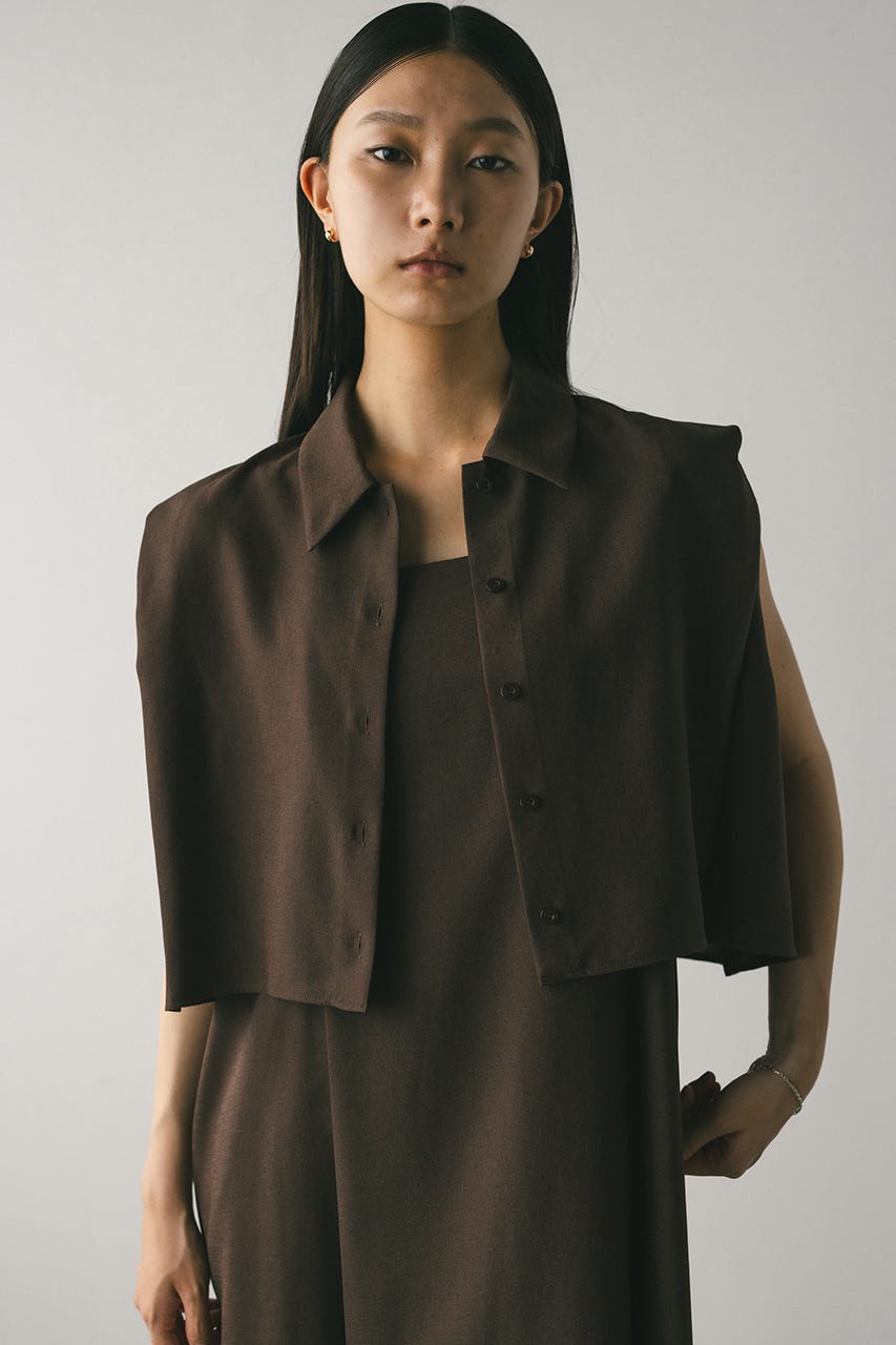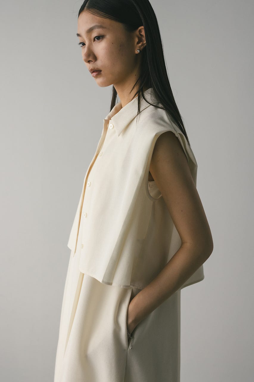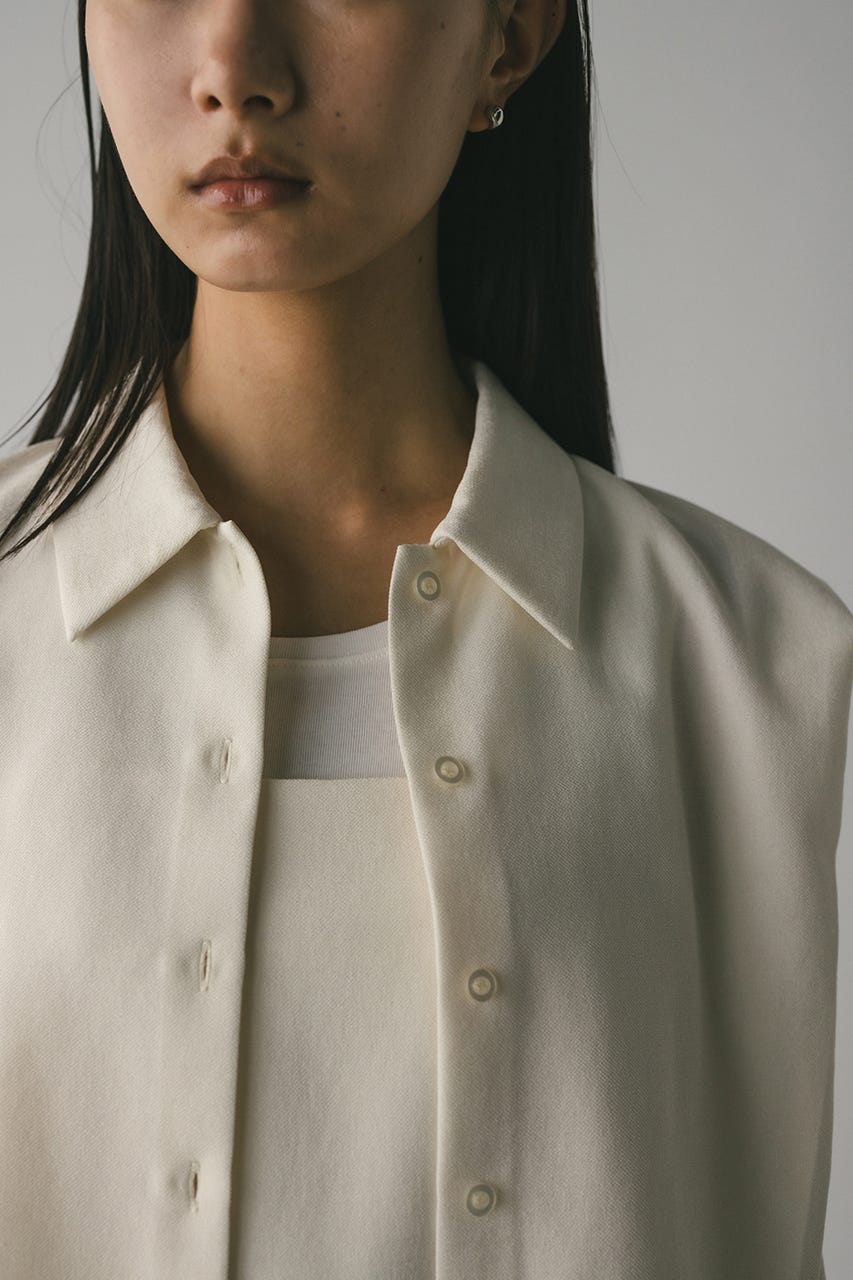 シャツのショルダー部分には深くタックを入れ、二の腕がすっきりと見えるシルエットに仕上げています。