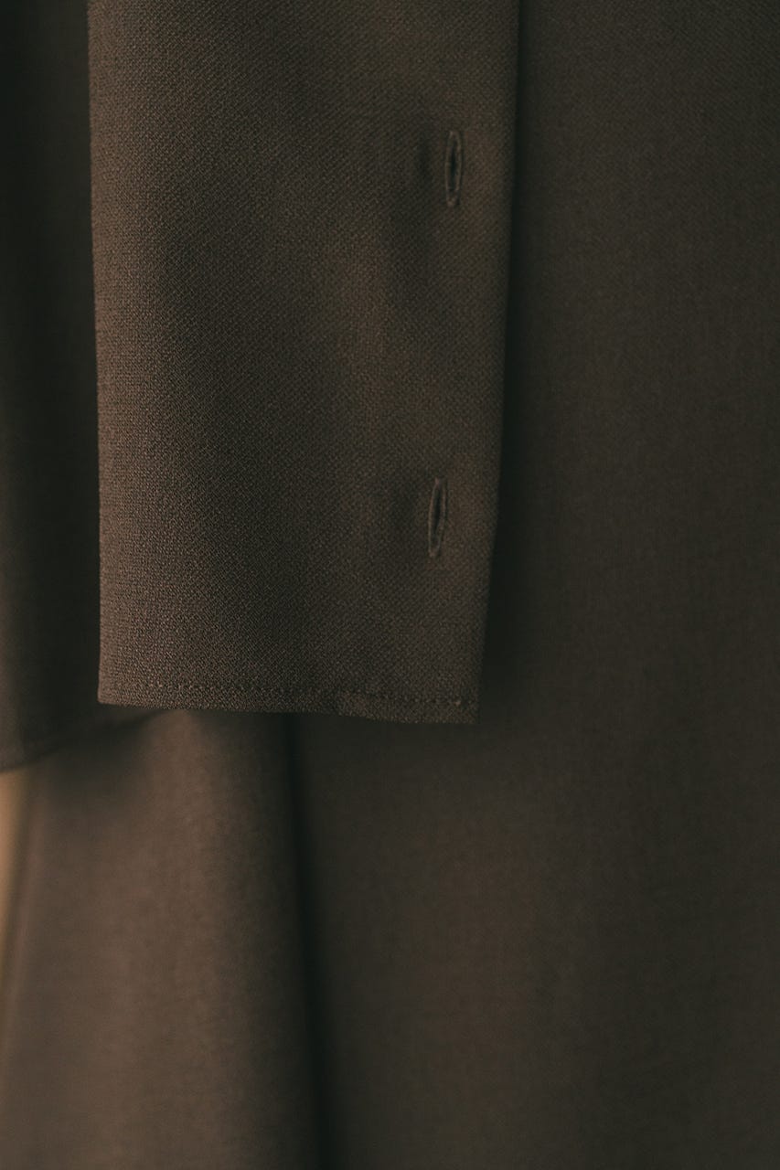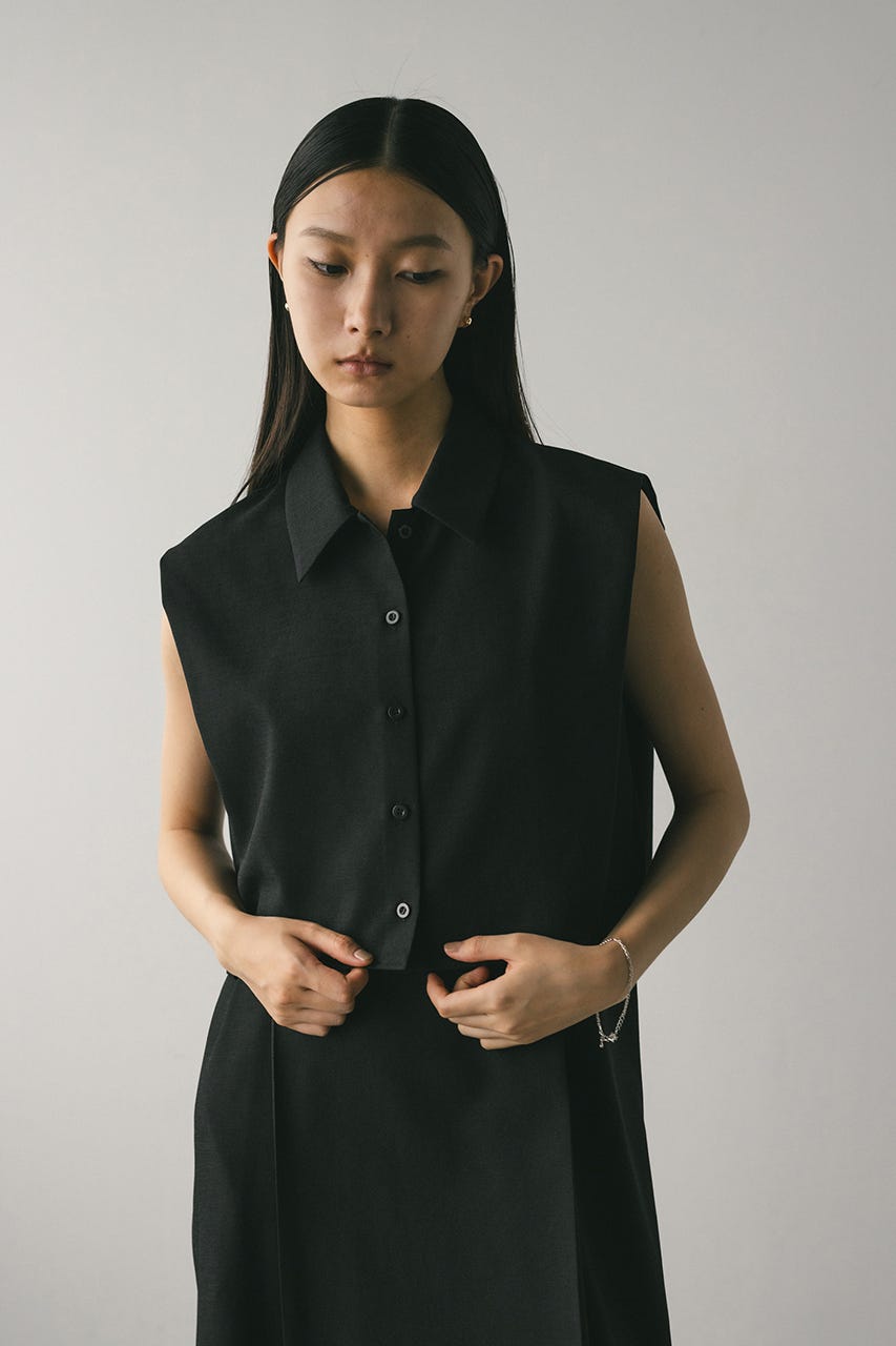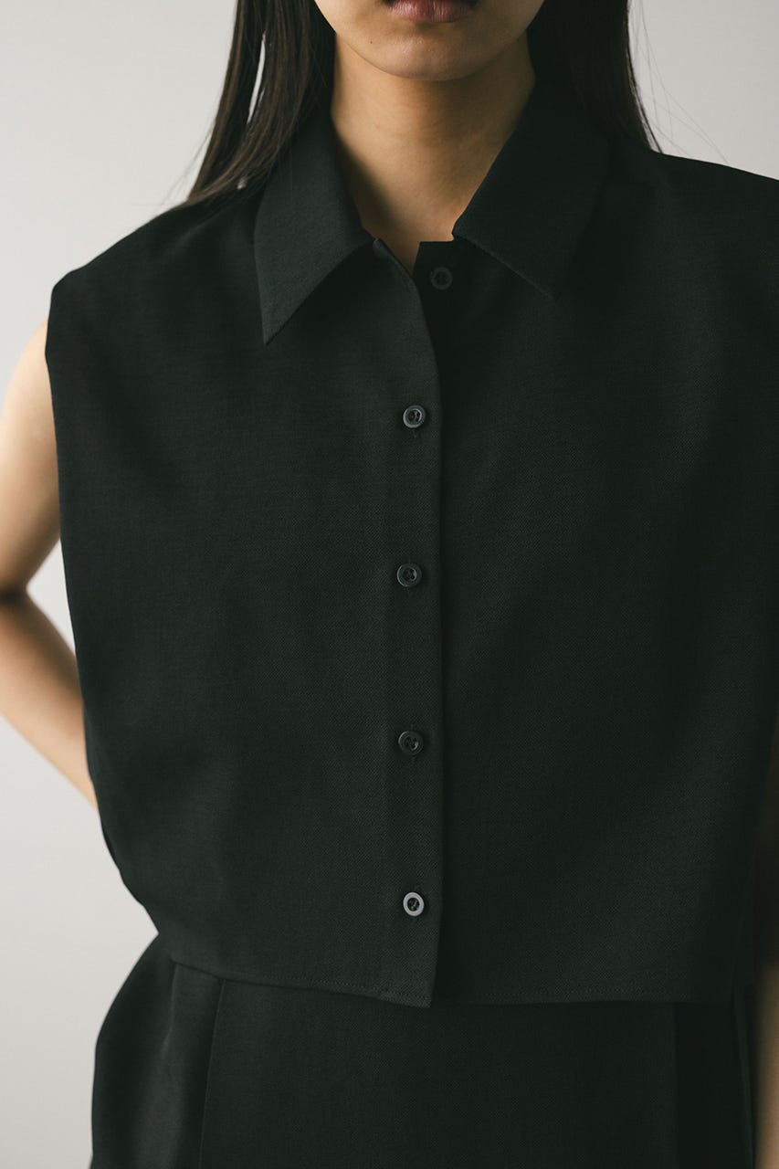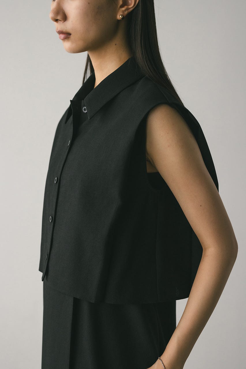 シャツのショルダー部分には深くタックを入れ、二の腕がすっきりと見えるシルエットに仕上げています。