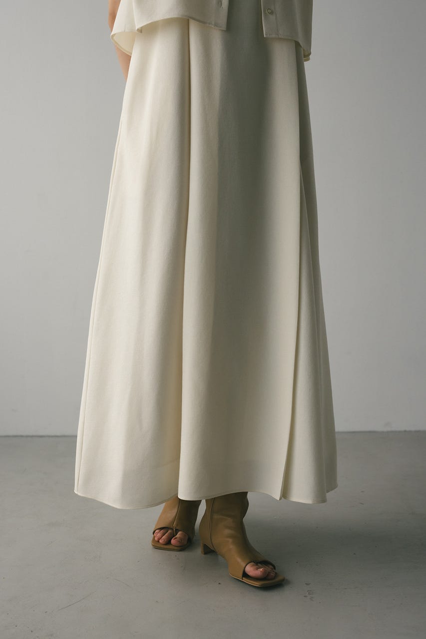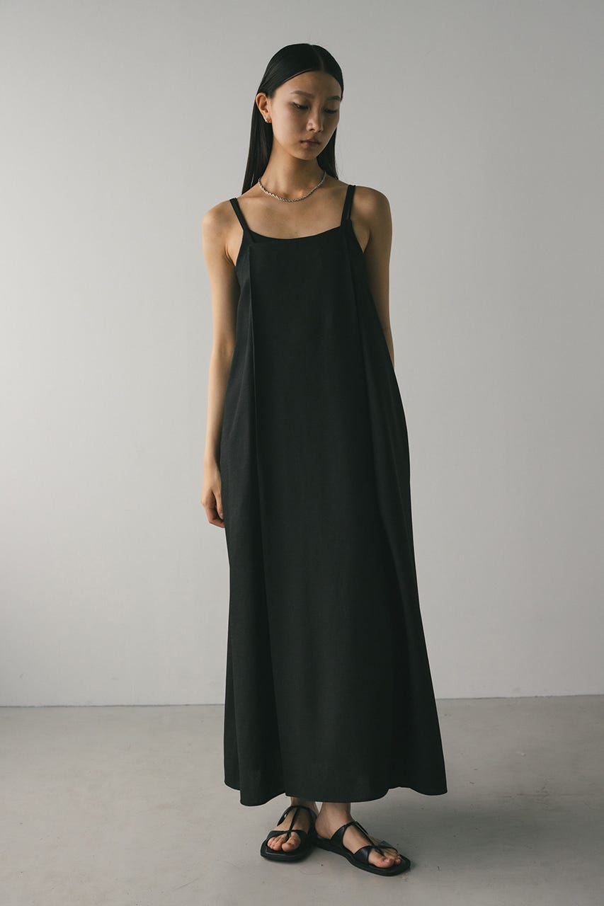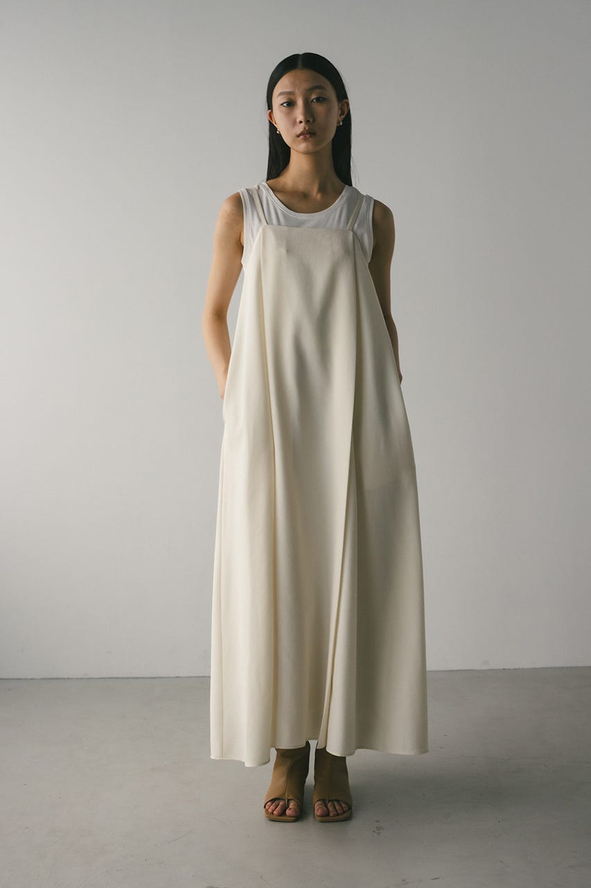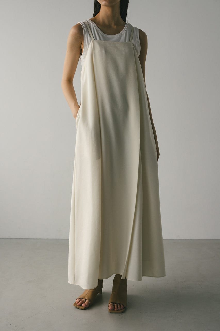フロントに大きくタックを入れたワンピースは、たっぷりと入ったフレアデザインで大人なシルエットに導きます。