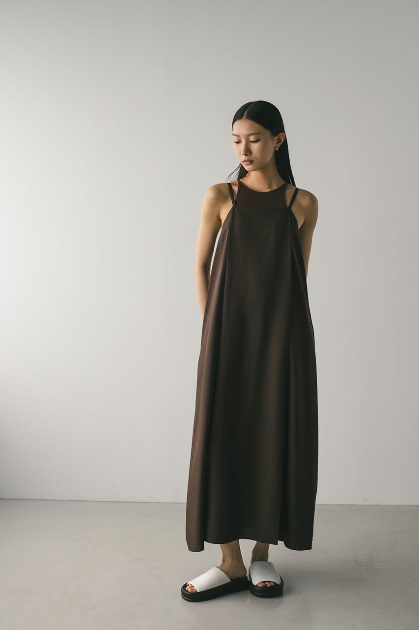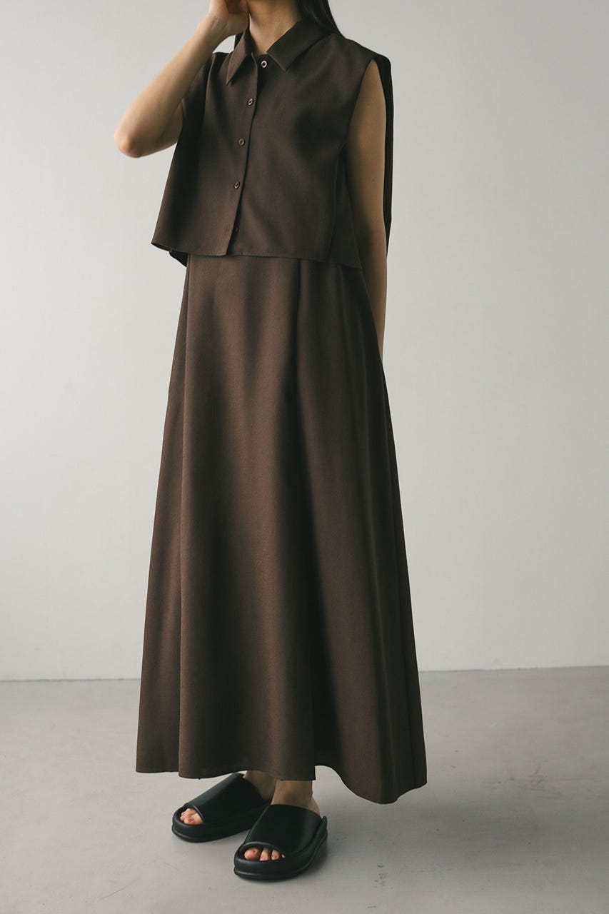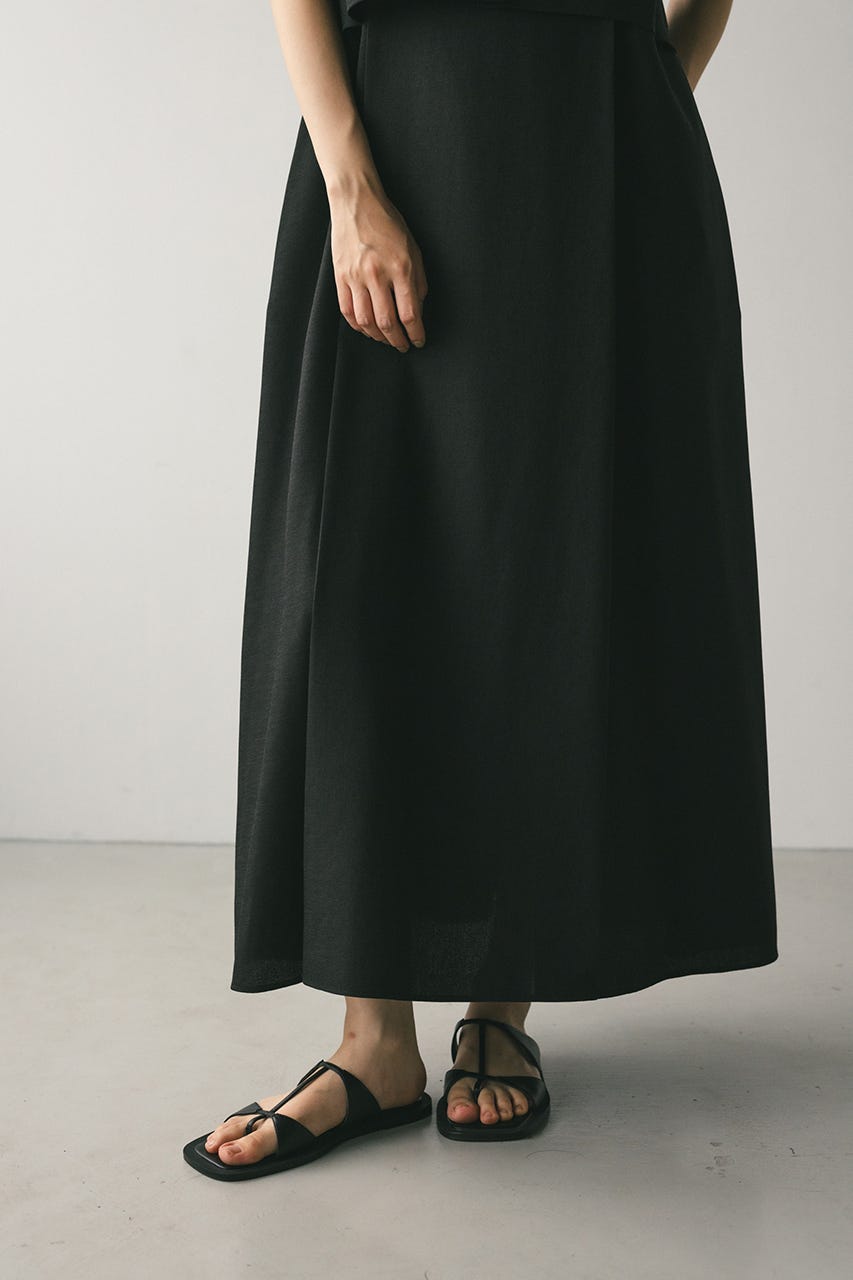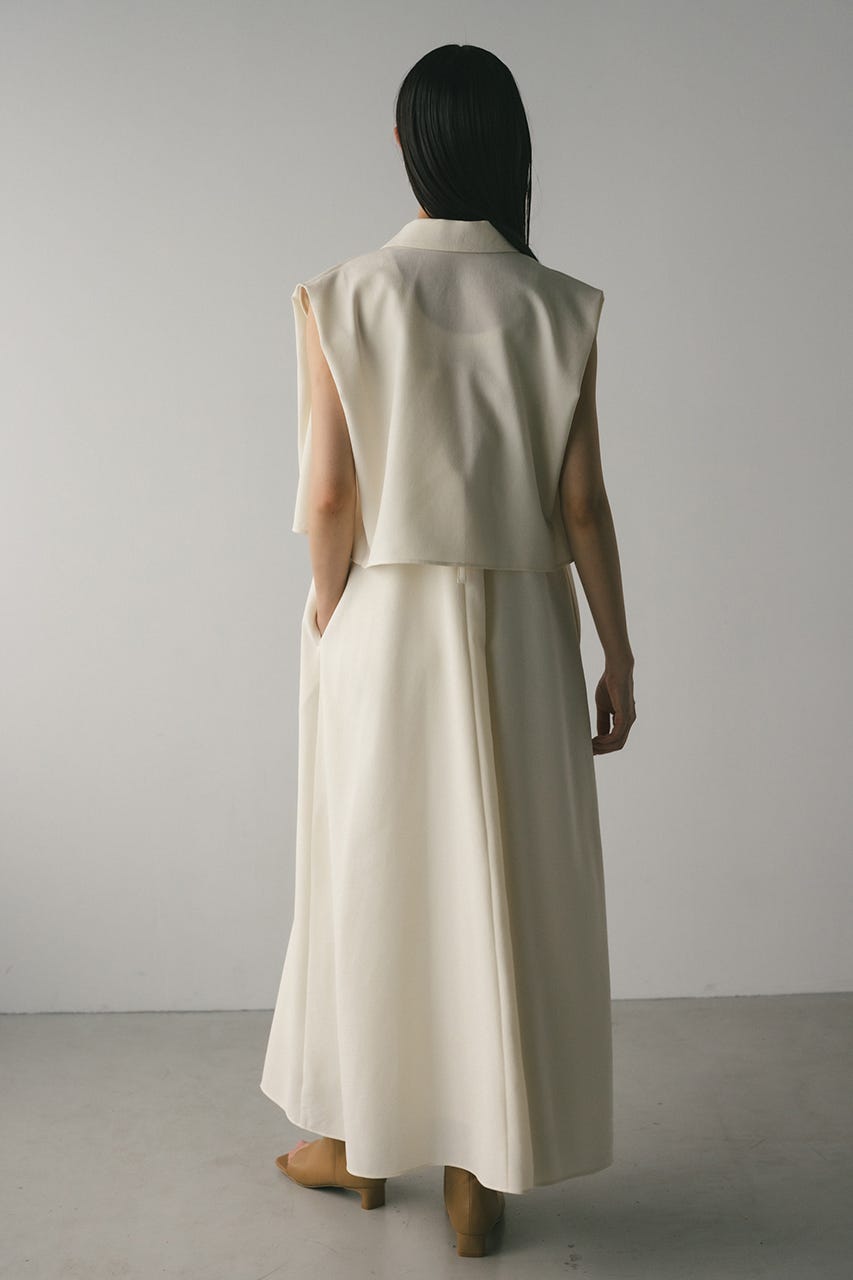 フロントに大きくタックを入れたワンピースは、たっぷりと入ったフレアデザインで大人なシルエットに導きます。