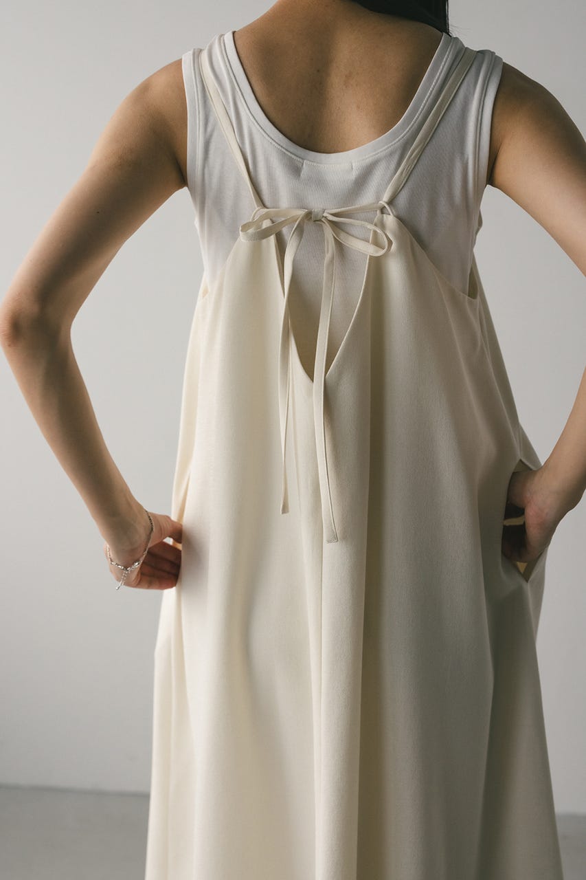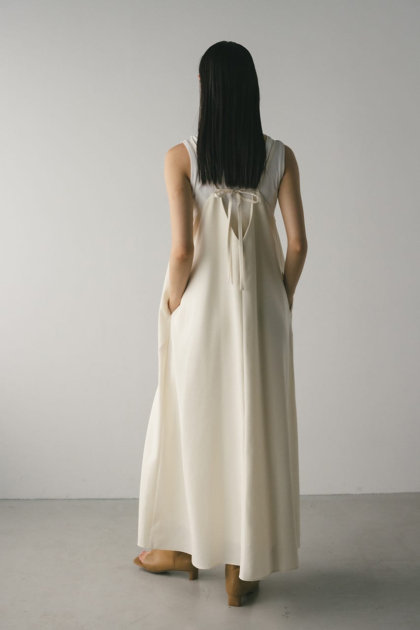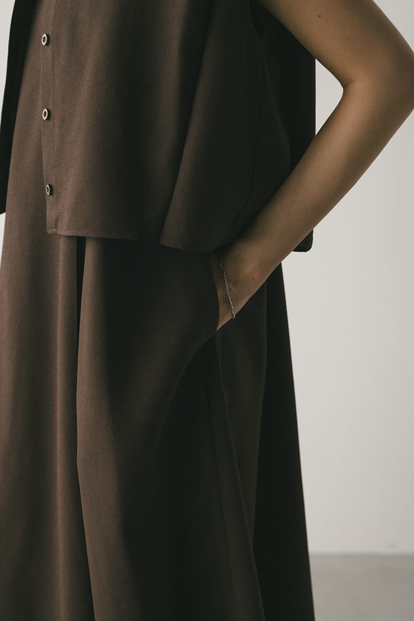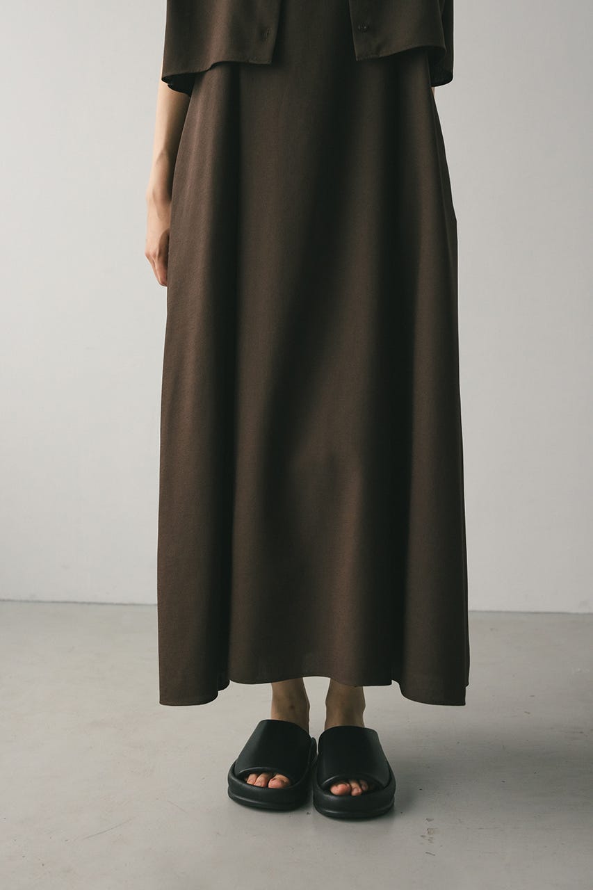 フロントに大きくタックを入れたワンピースは、たっぷりと入ったフレアデザインで大人なシルエットに導きます。