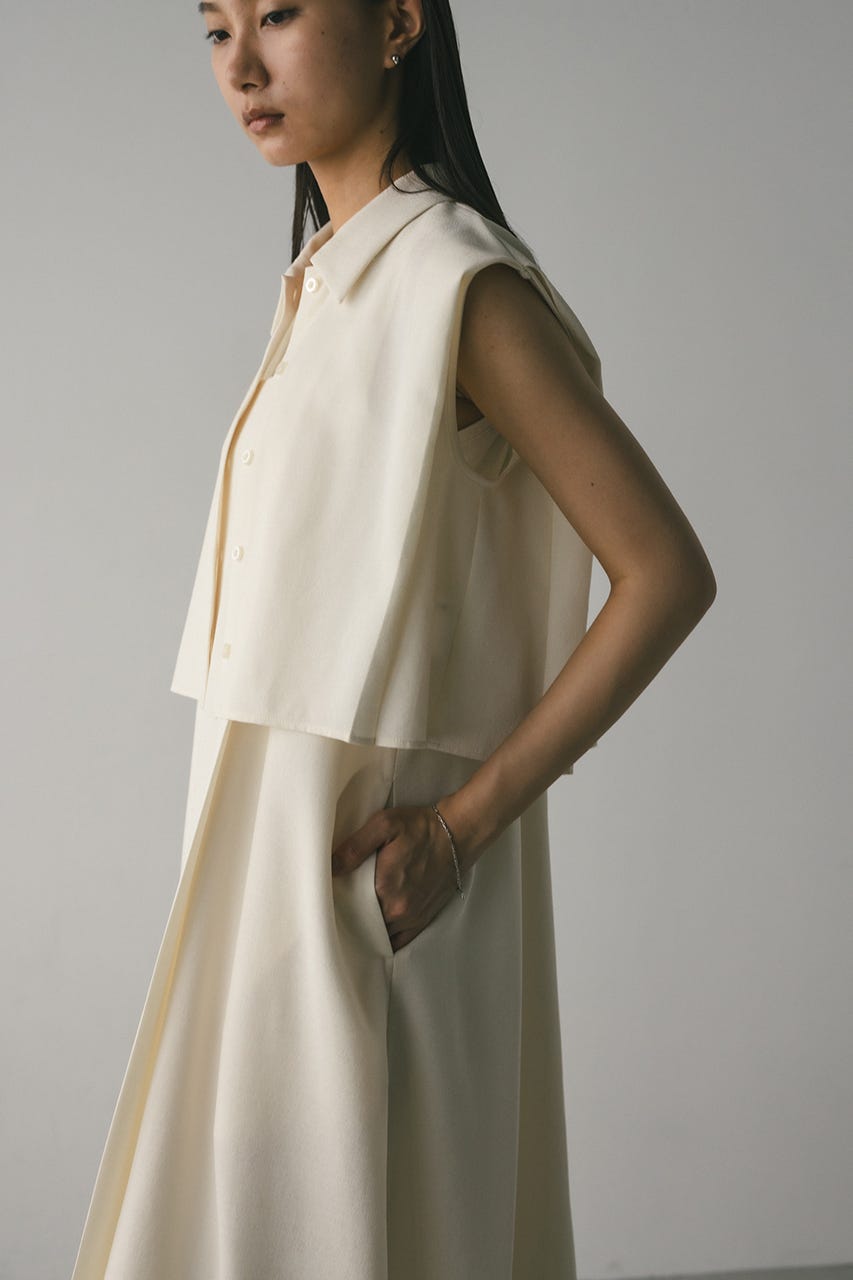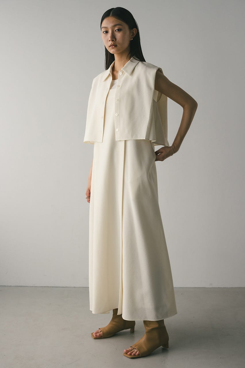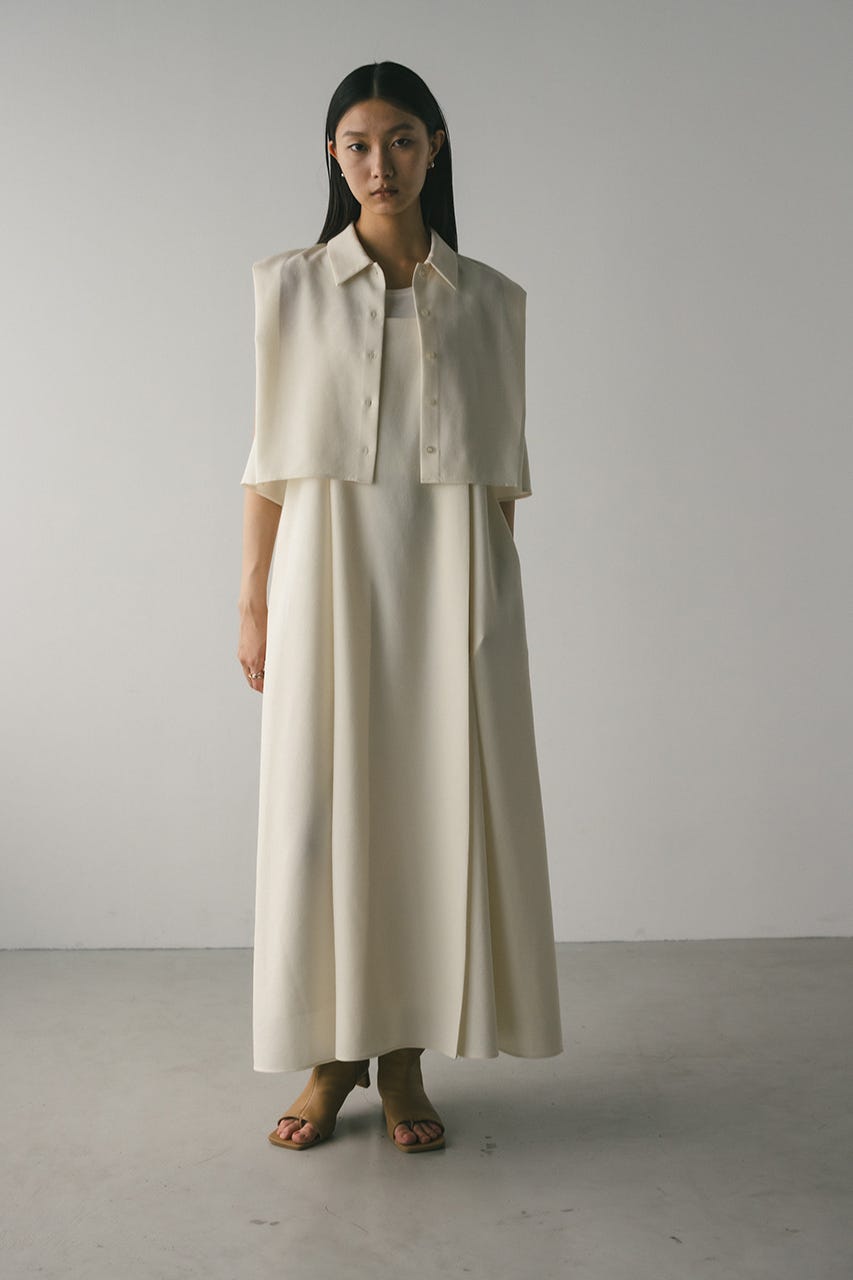 コンパクトなサイズ感のショートシャツとフレアワンピースが着回しの効くセットアイテム。