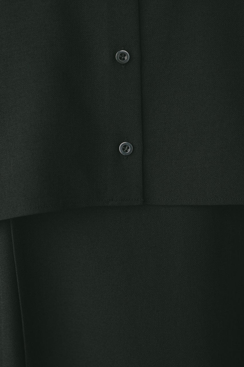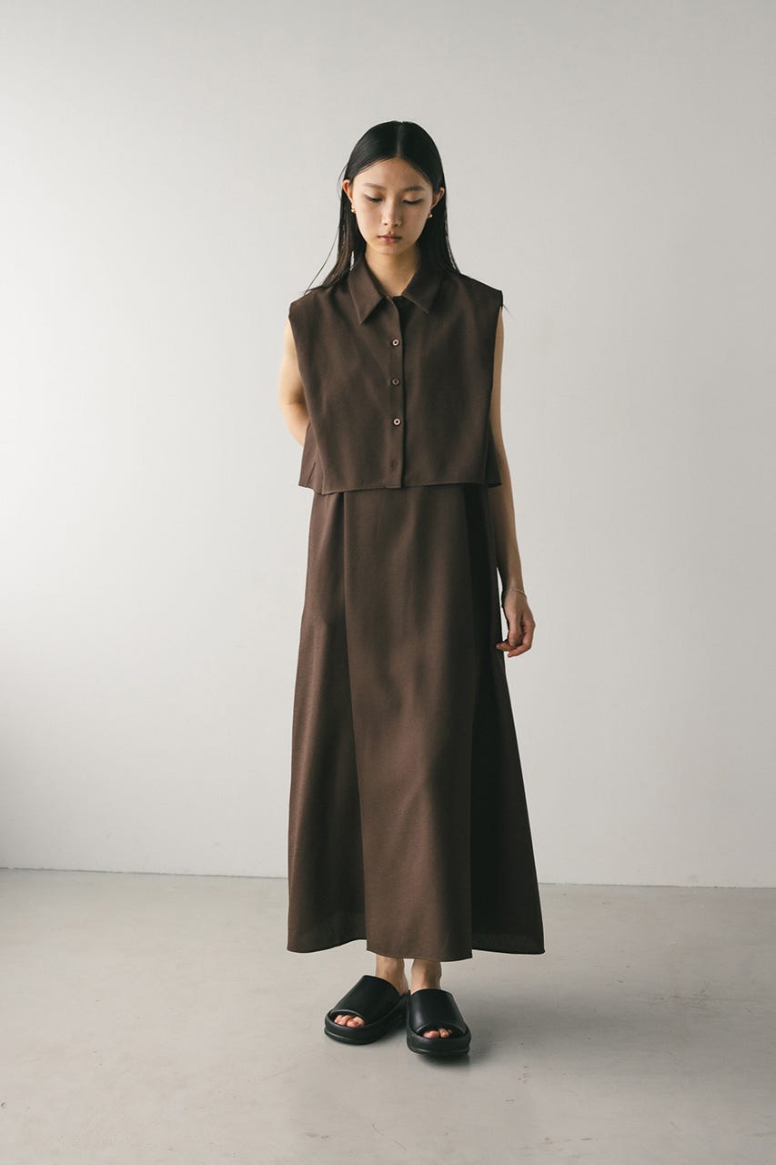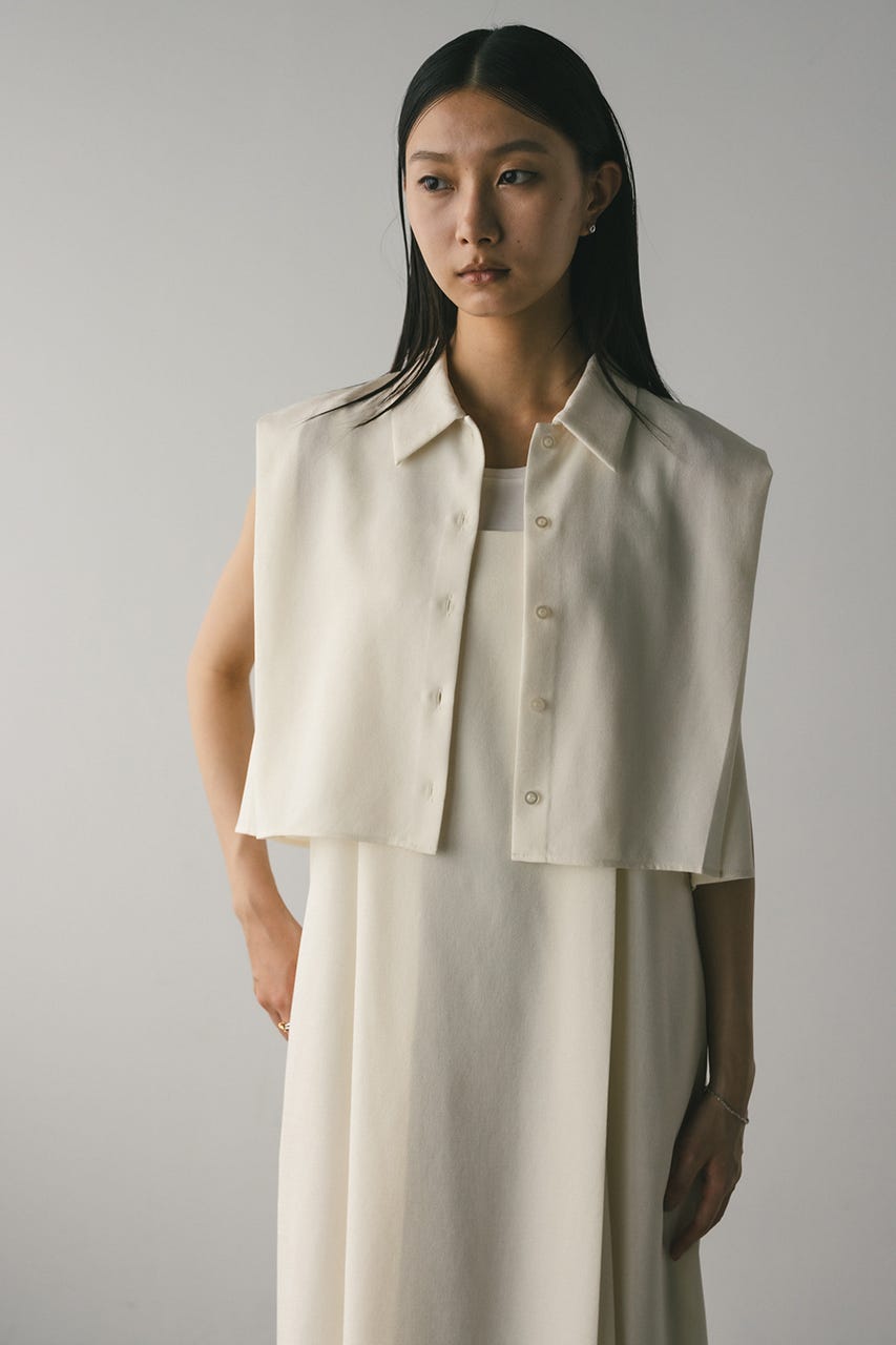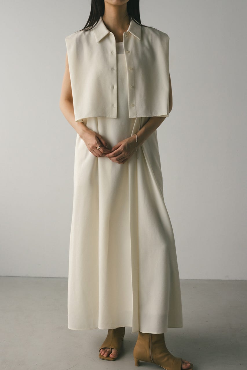 コンパクトなサイズ感のショートシャツとフレアワンピースが着回しの効くセットアイテム。