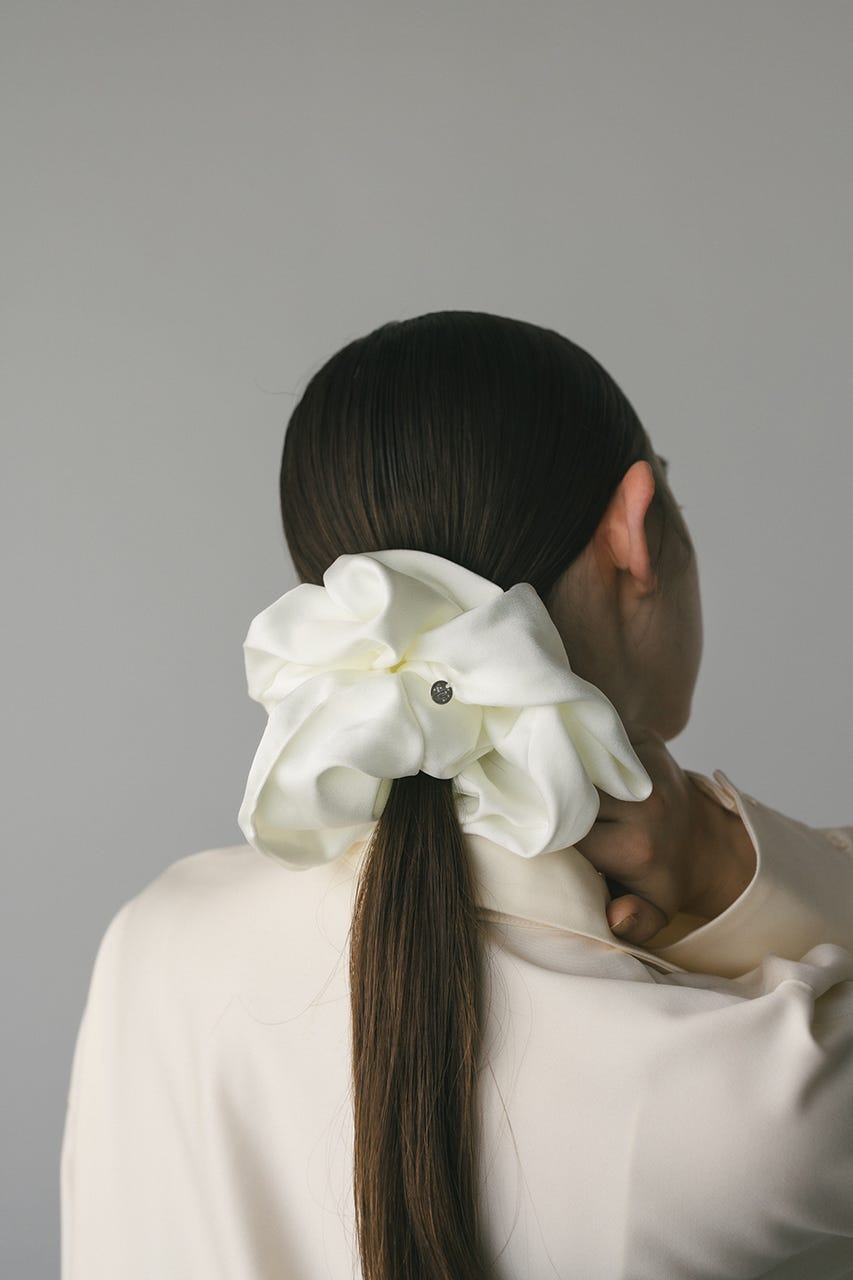 程よい光沢感のあるサテンシュシュ。