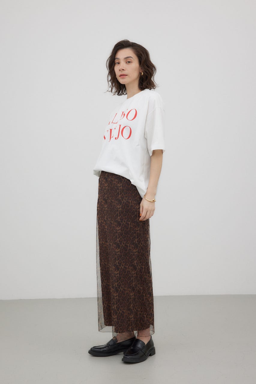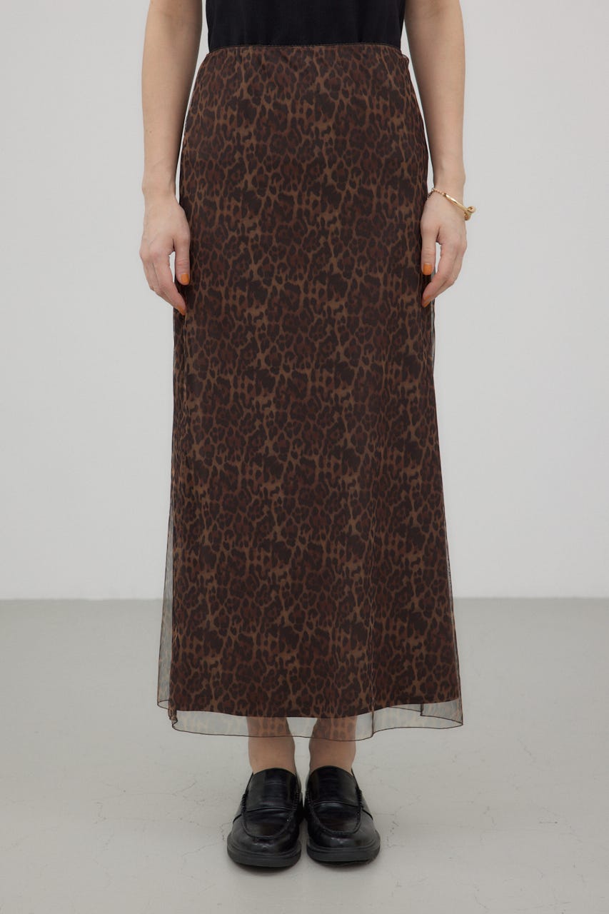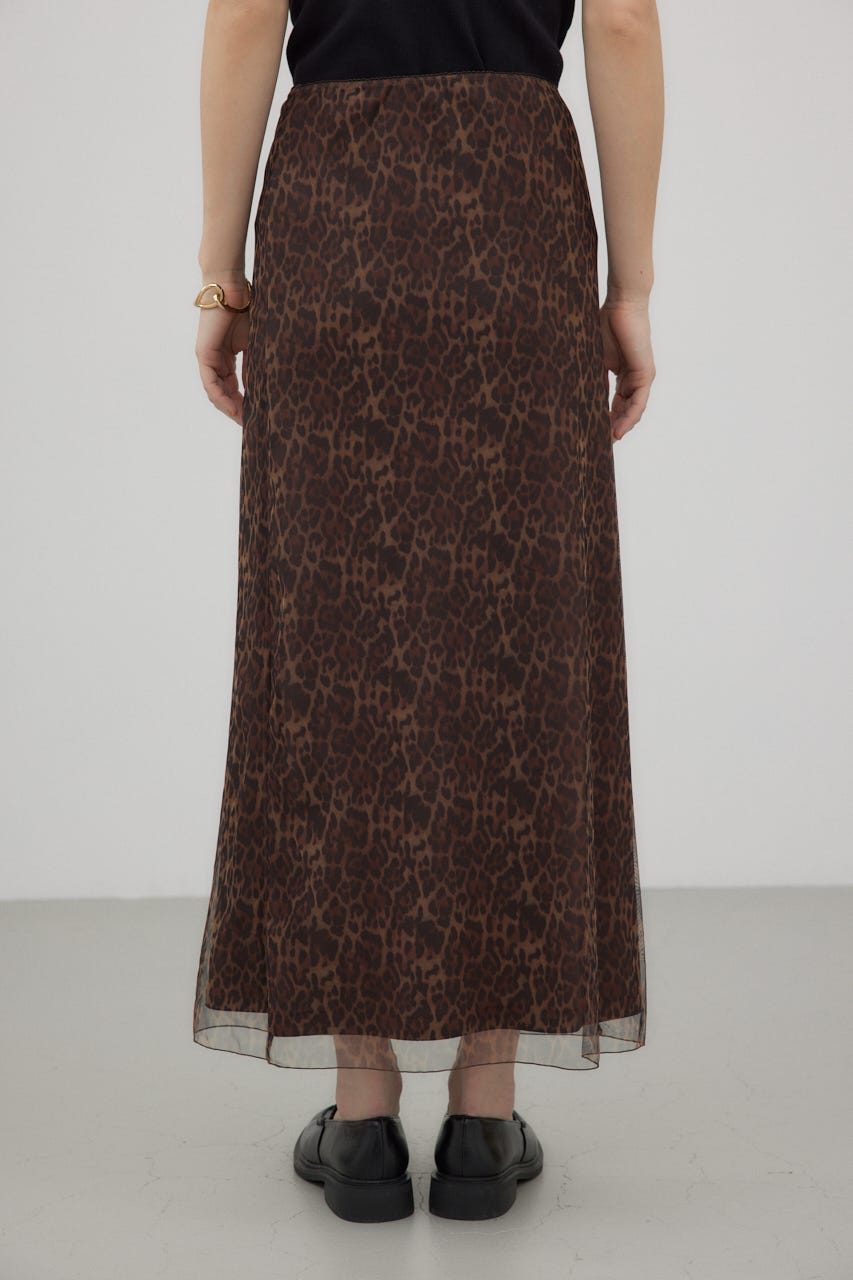 透け感のあるチュールにレオパード柄をプリントした素材を使用。