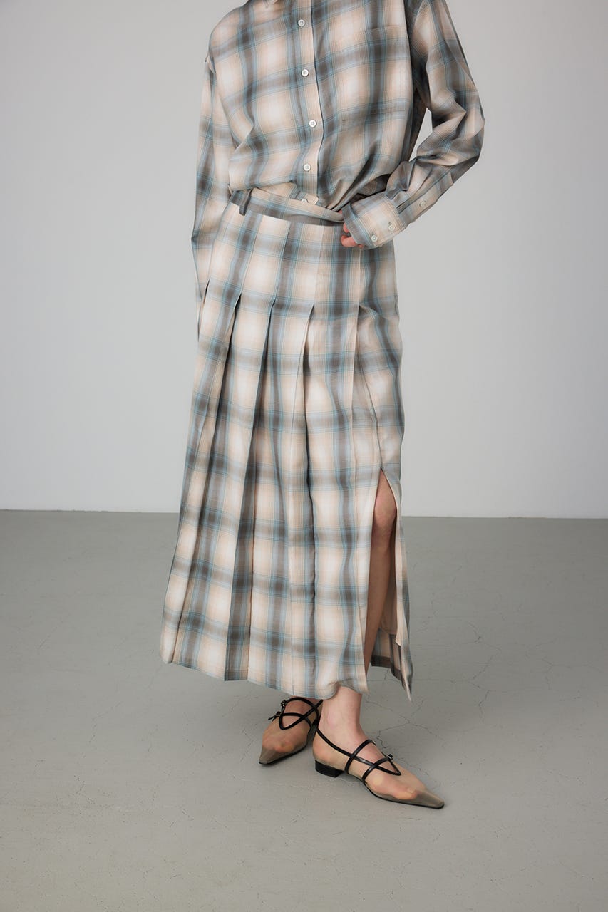 レディーな印象の深めスリットとプリーツ加工が特徴のスカートは、ソックス&ミュールで合わせたり、スニーカーと合わせたりで簡単にオシャレ映えしてくれる着回し力が魅力的な一着。