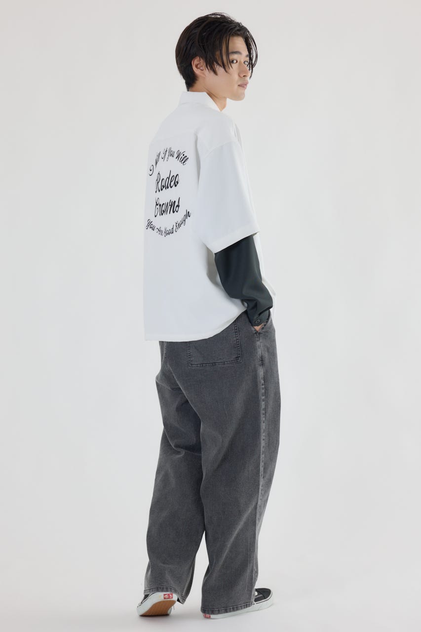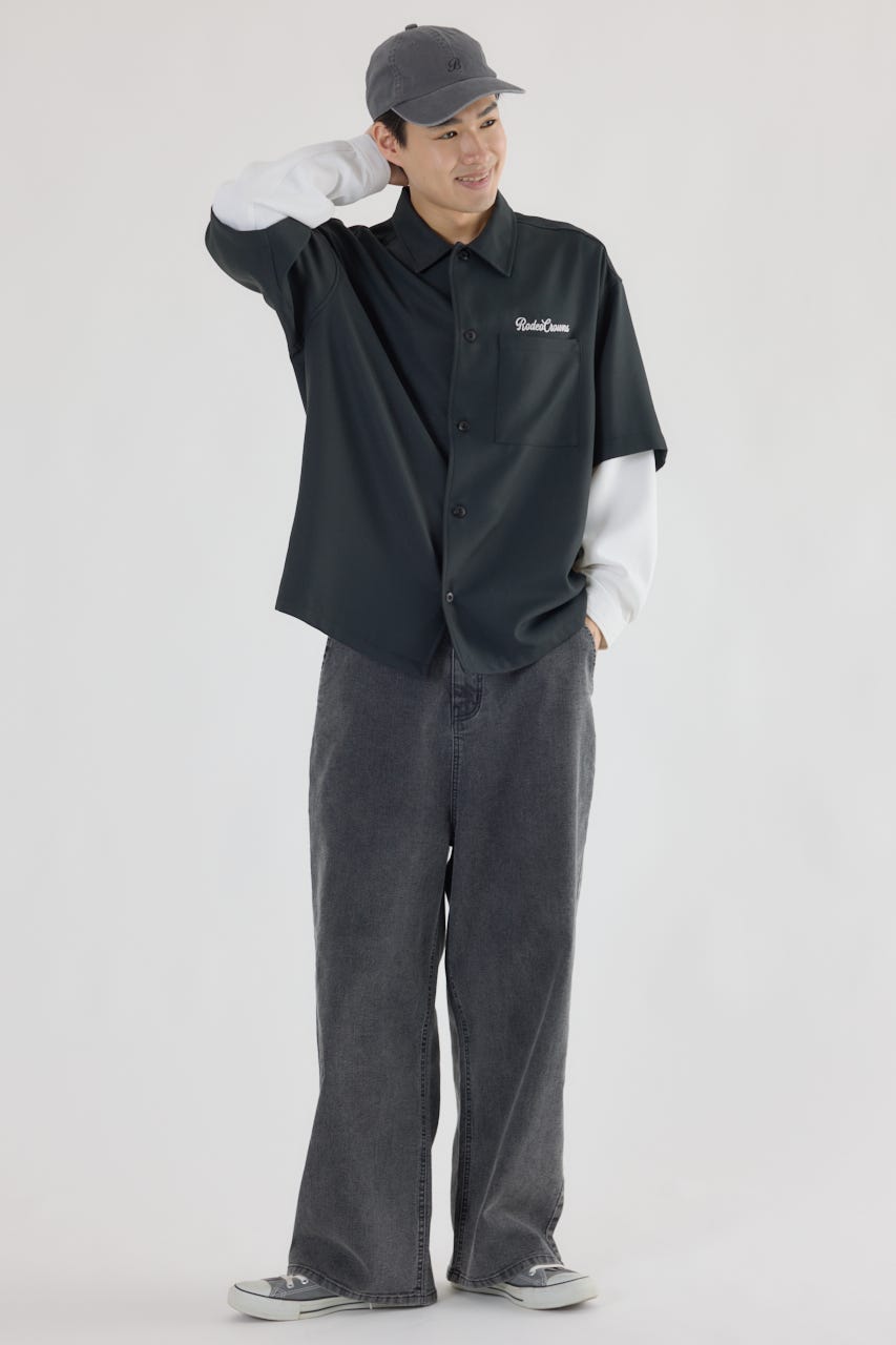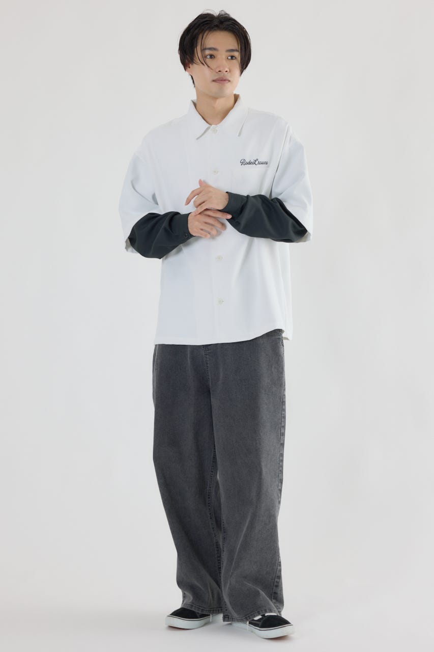ルーズフィットサイズなのでボトムもワイドなボリューム感のあるアイテムがおすすめです。
