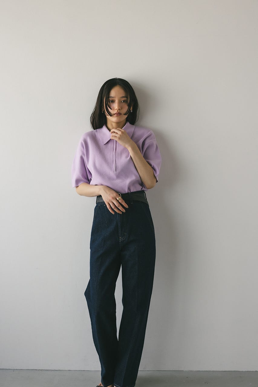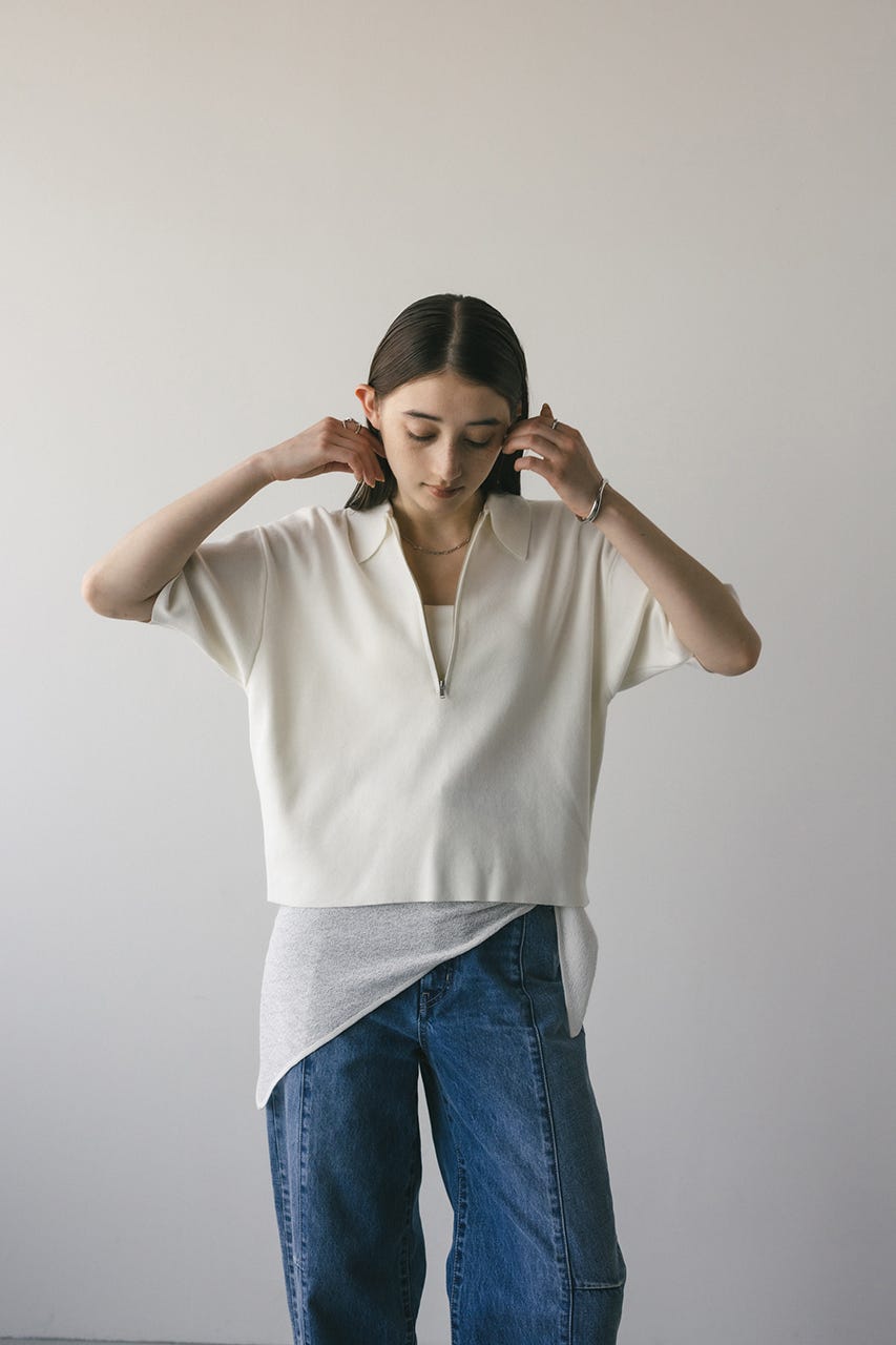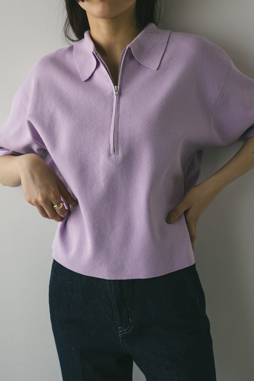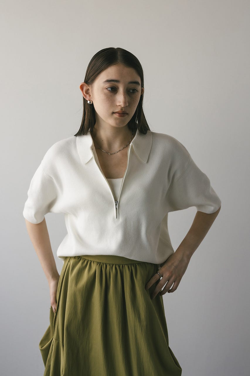 フロントジップで表情変化が楽しめるドライニットポロ。