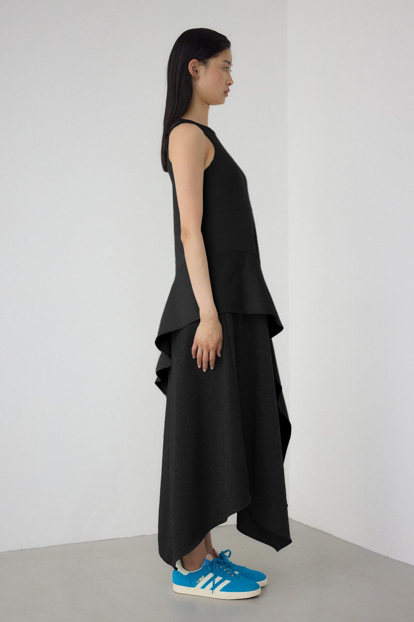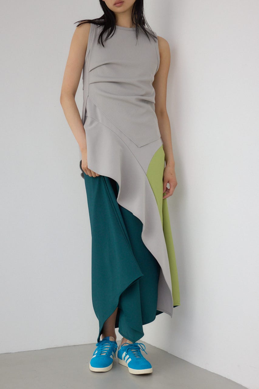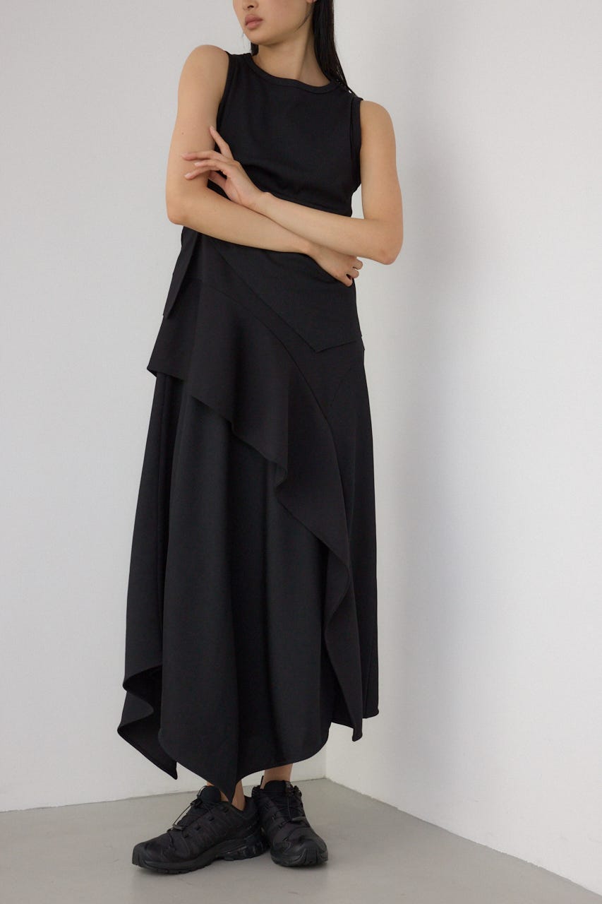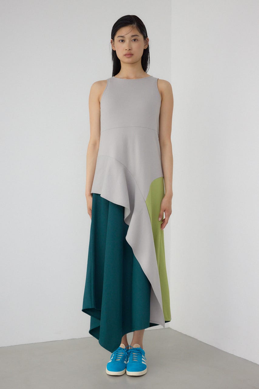 アシンメトリーデザインがポイントのレイヤードワンピースです。