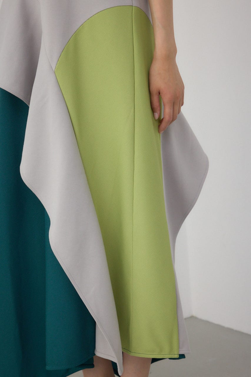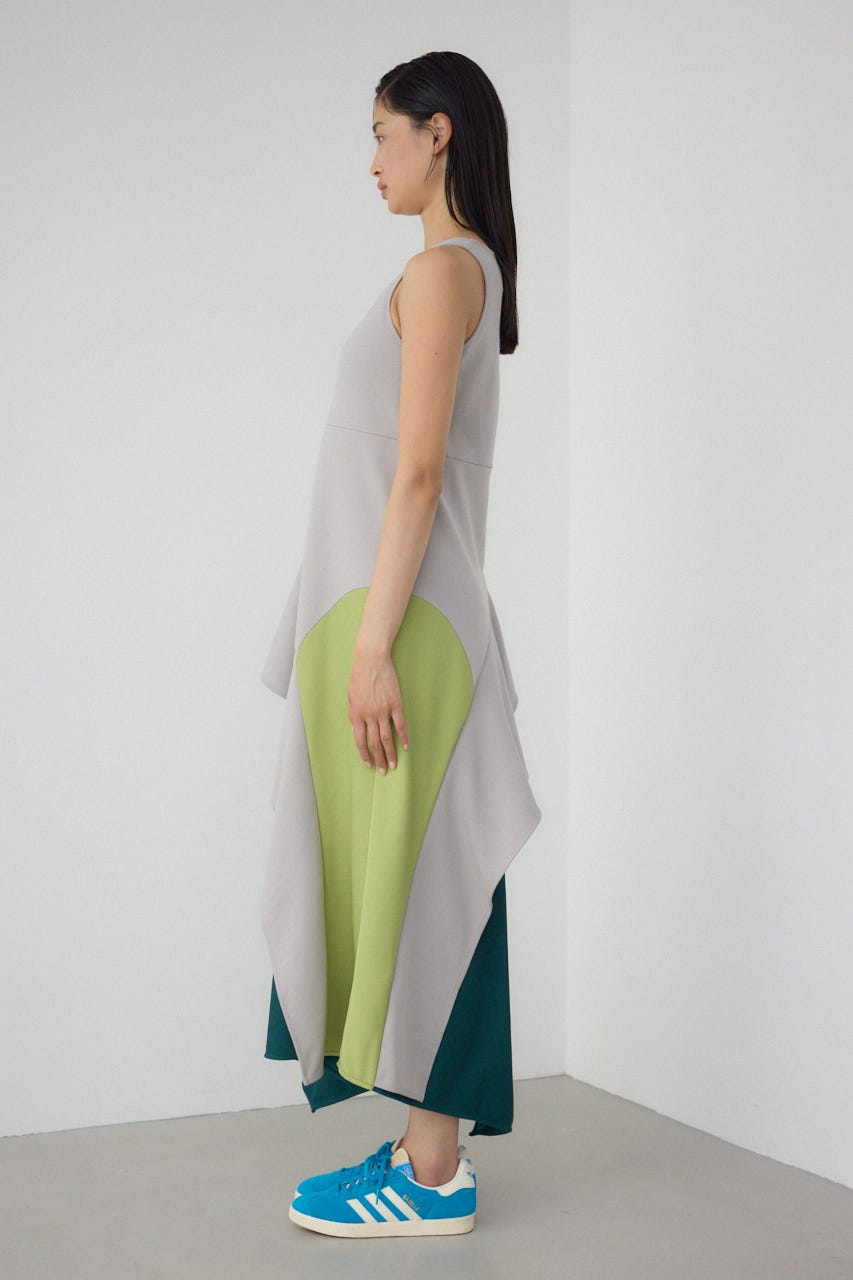表面感の違うカット素材を組み合わせたデザインワンピースです。