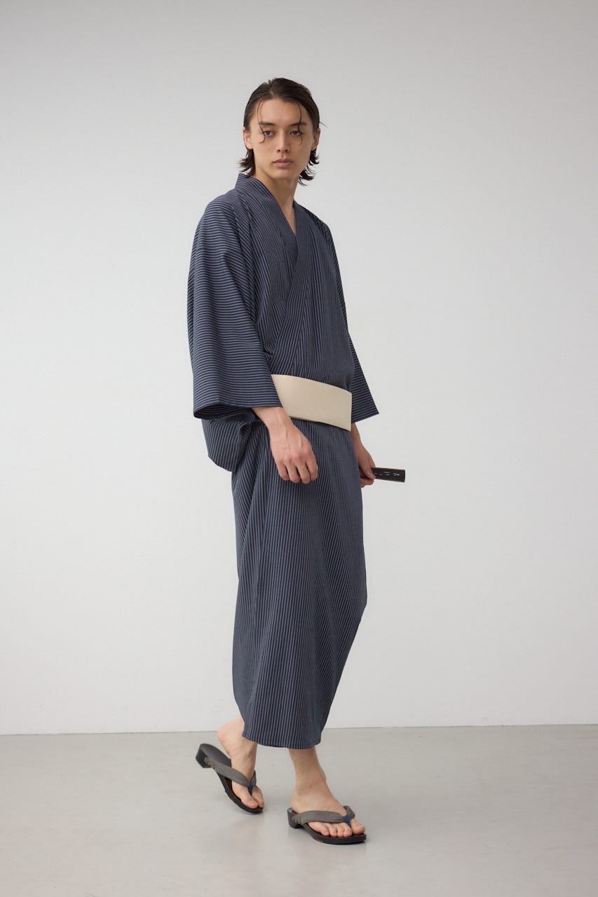 シンプルなストライプ柄の浴衣と、無地の帯がセットになった2点セットです。