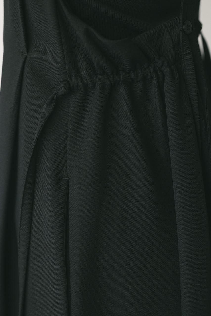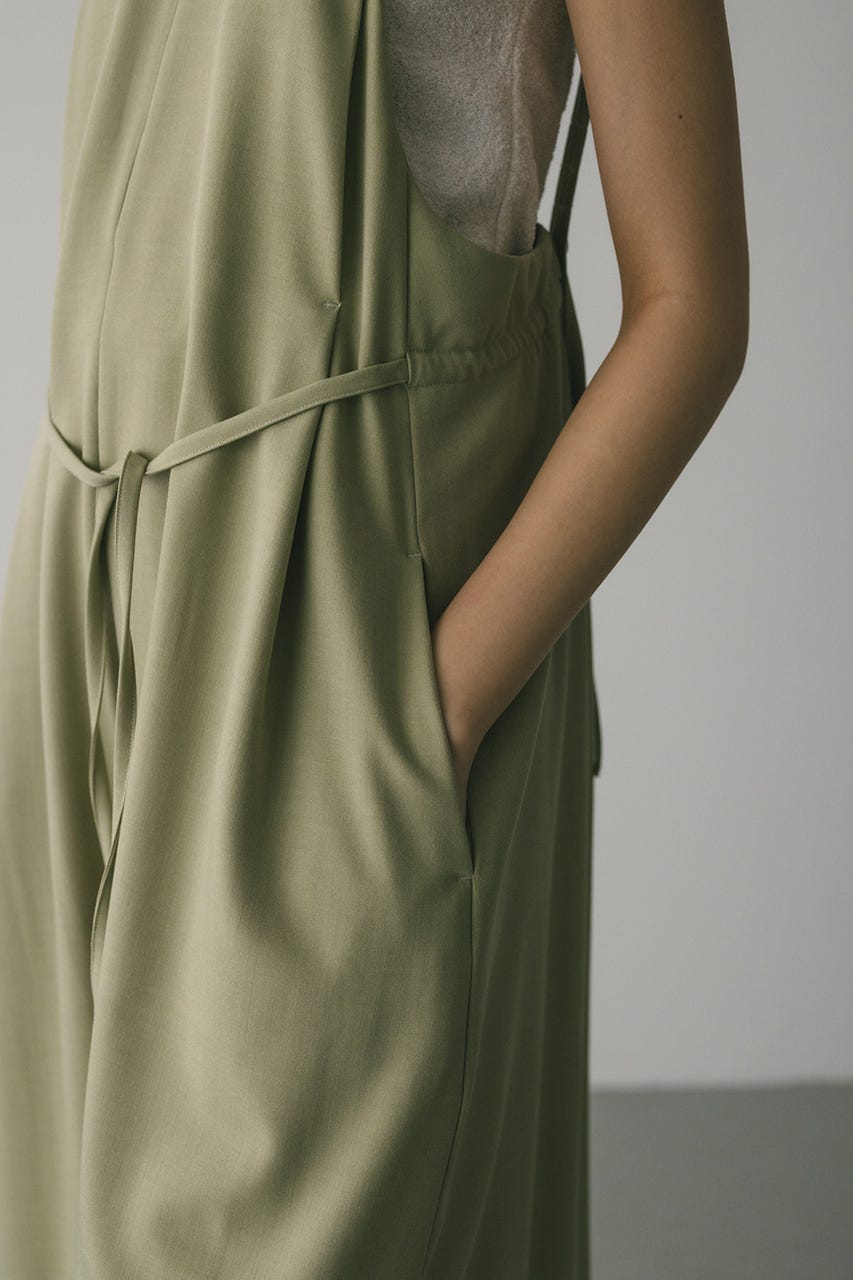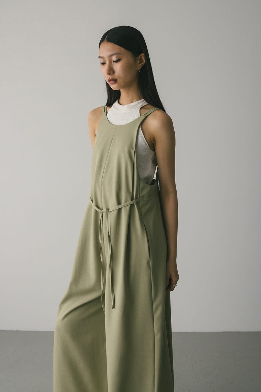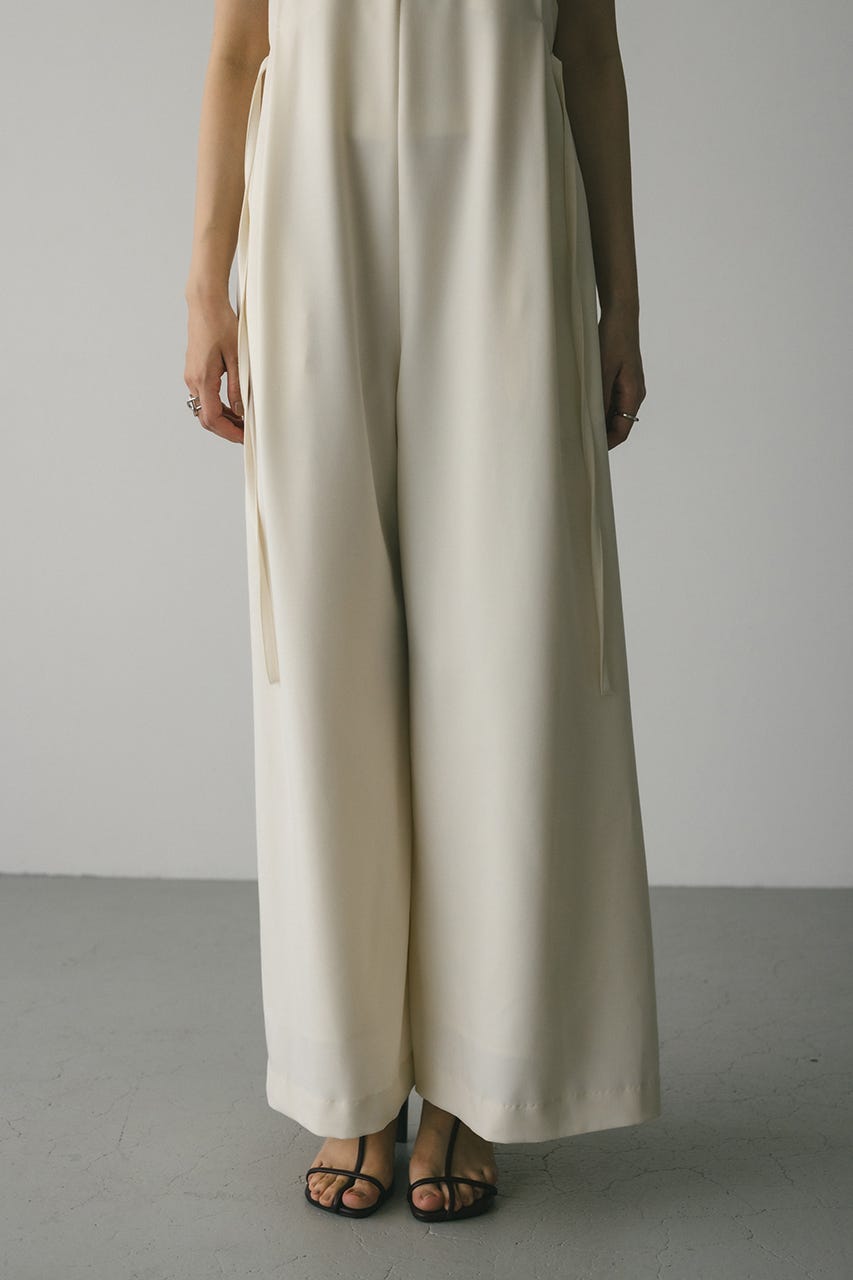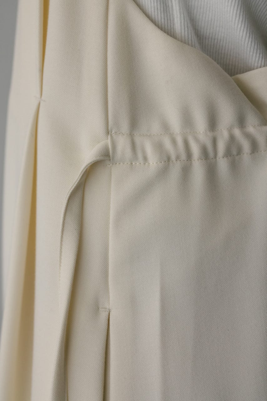 ウエスト部分は共紐でウエストマークできるデザインなのでスタイルアップ効果もある一枚です。