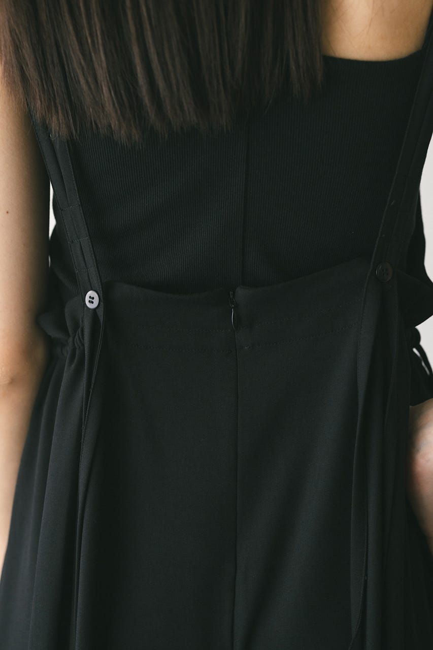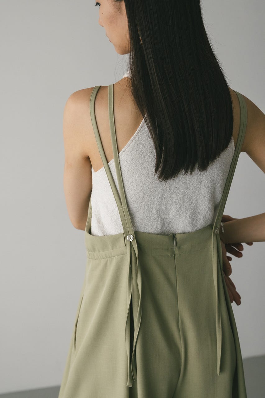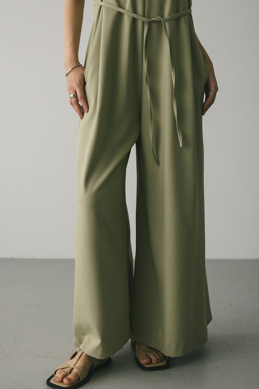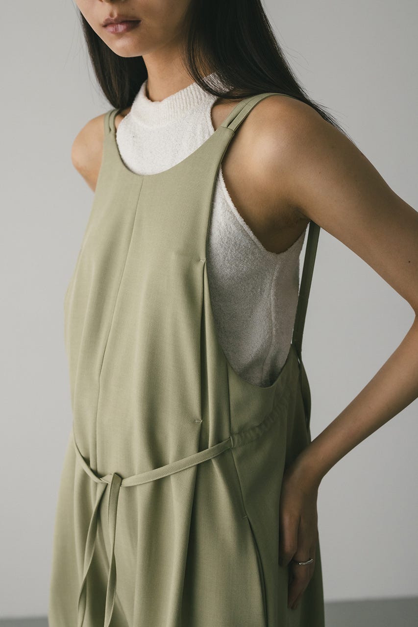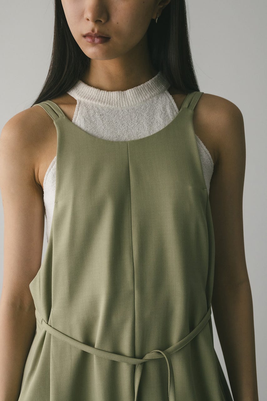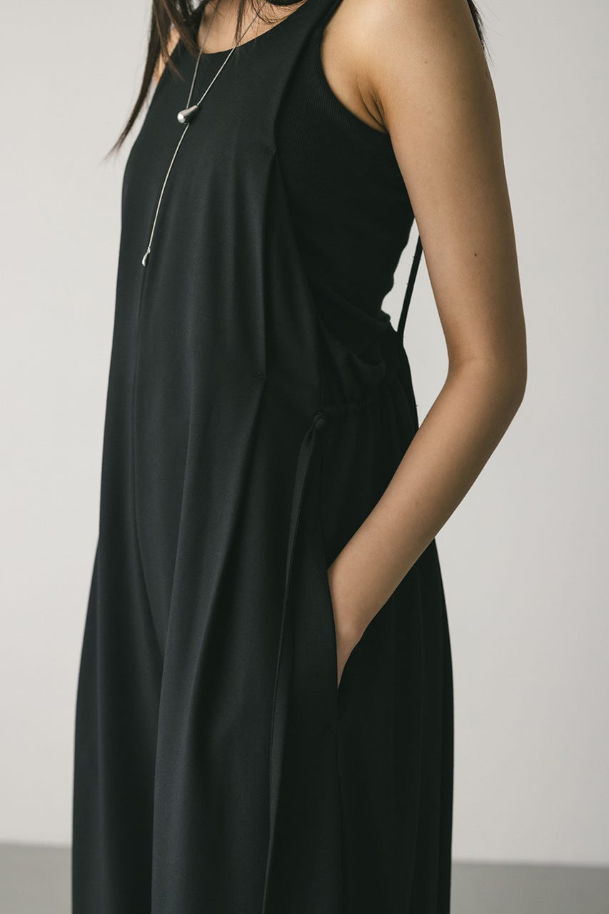 ウエスト部分は共紐でウエストマークできるデザインなのでスタイルアップ効果もある一枚です。