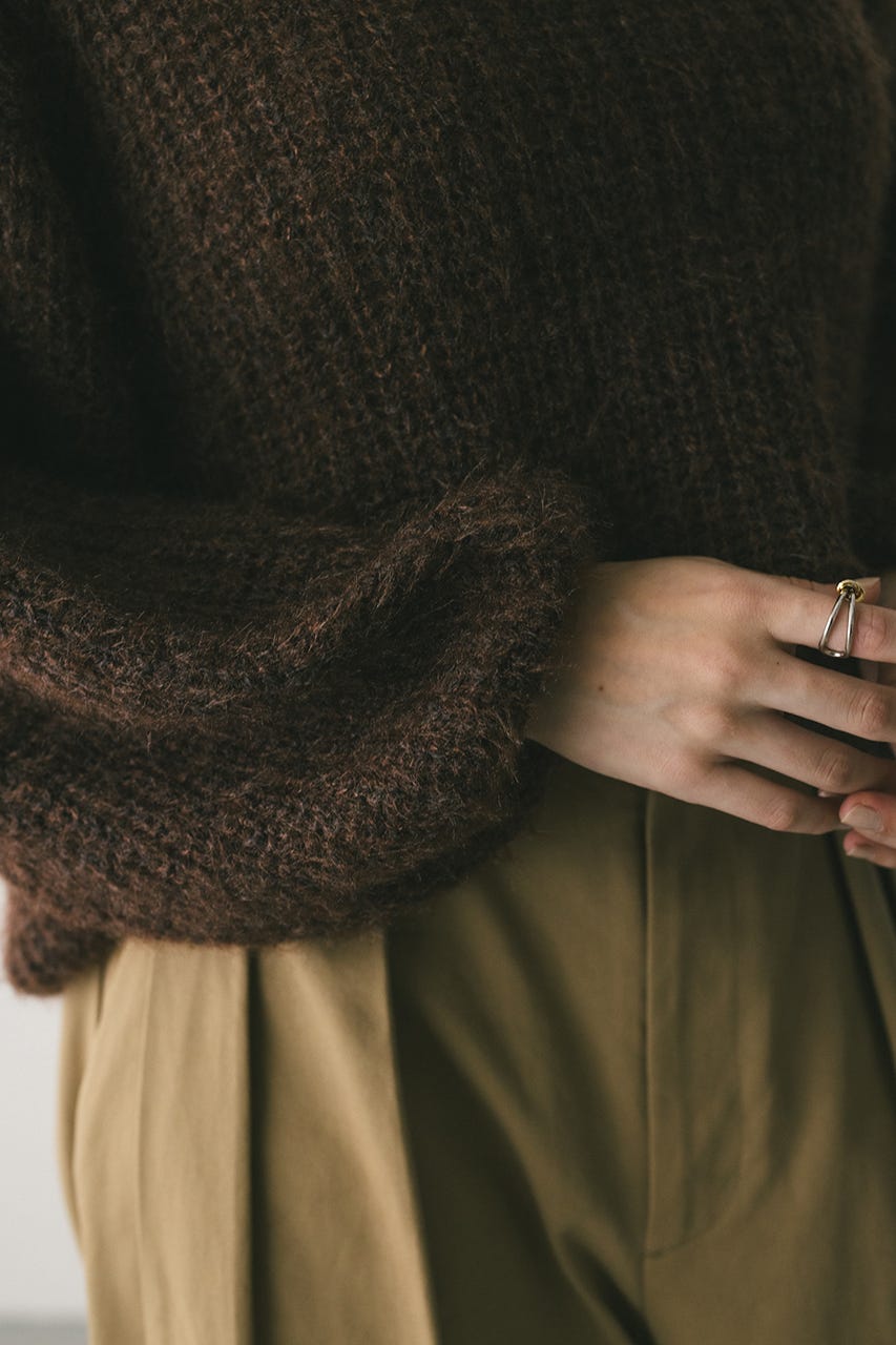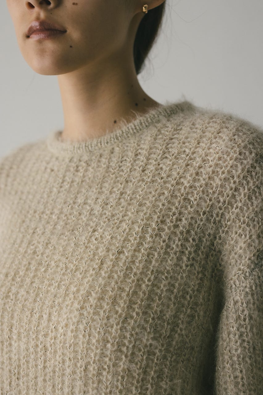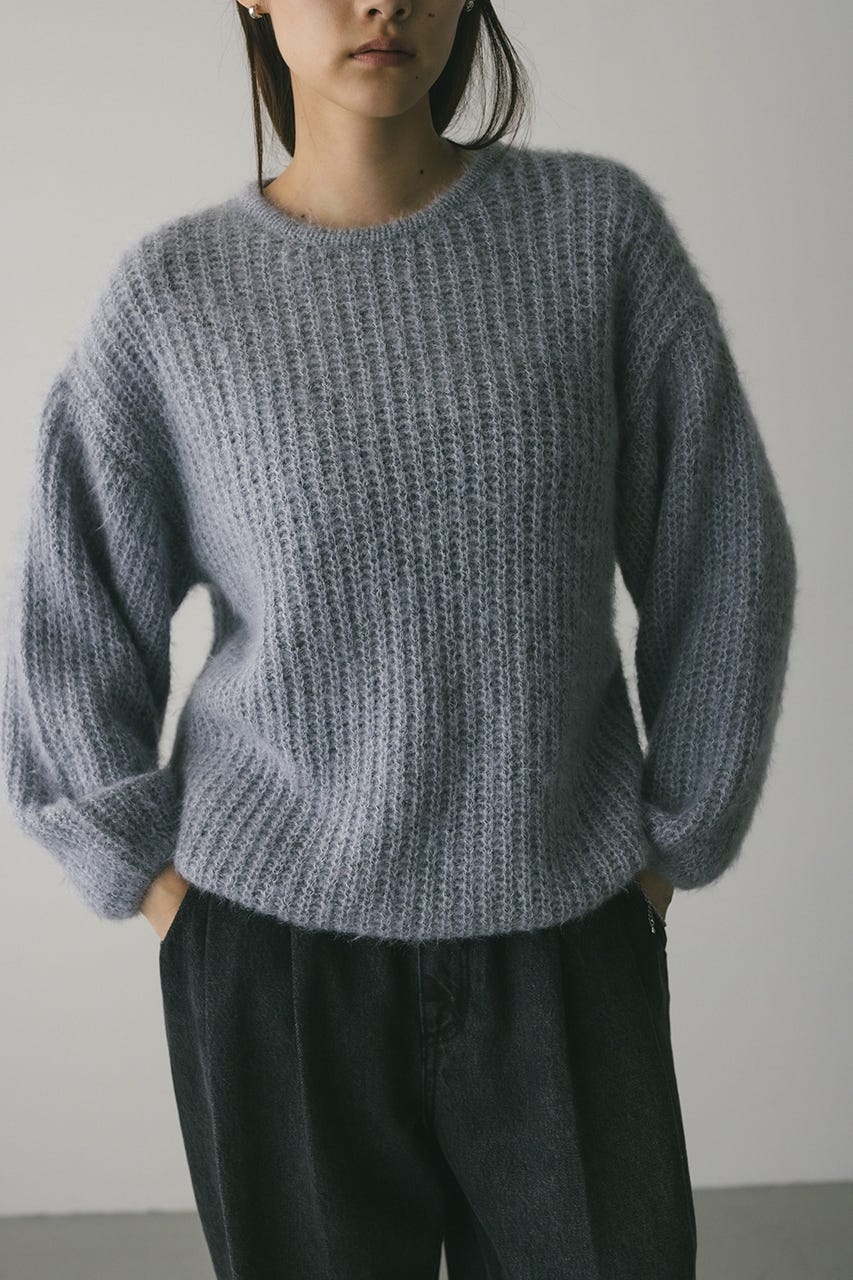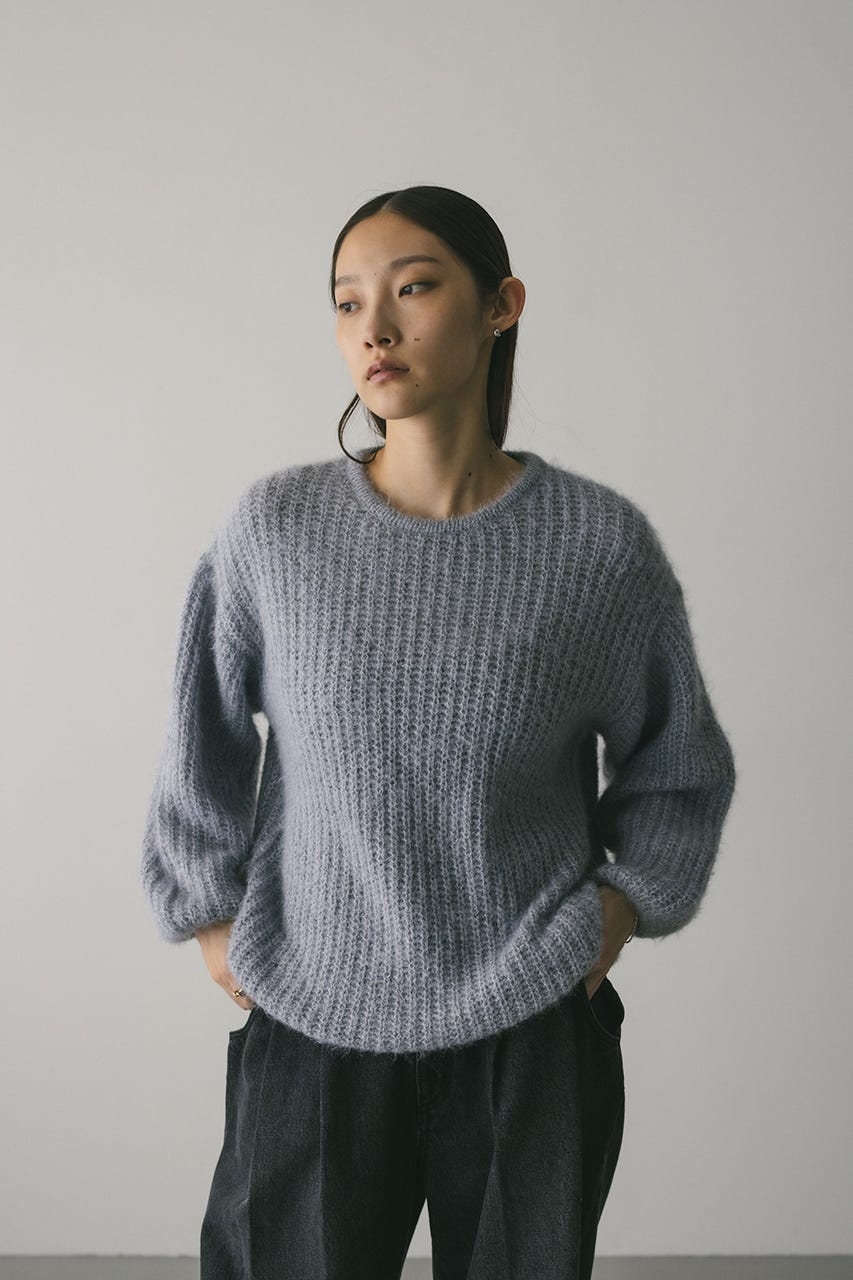 毛吹き感が可愛いニュアンスミックスカラーのボリュームニット。