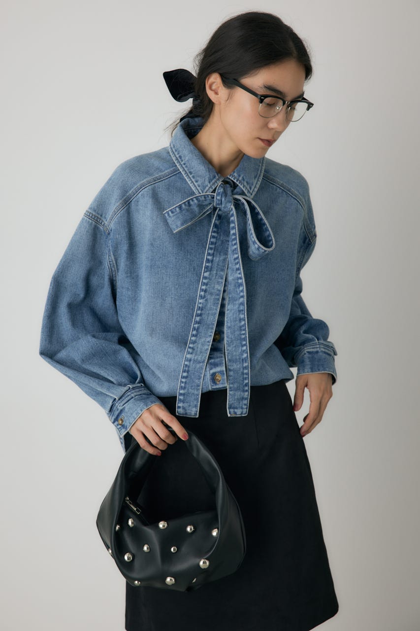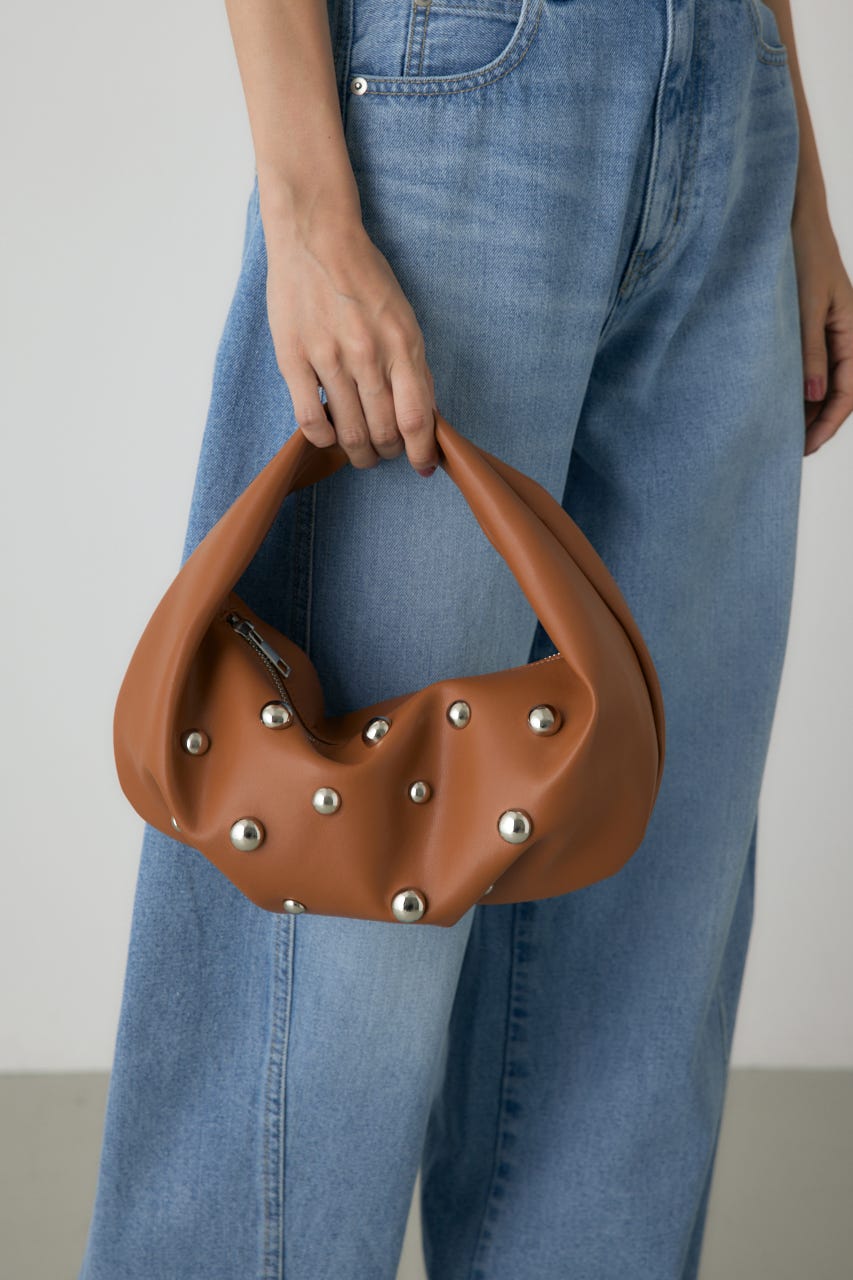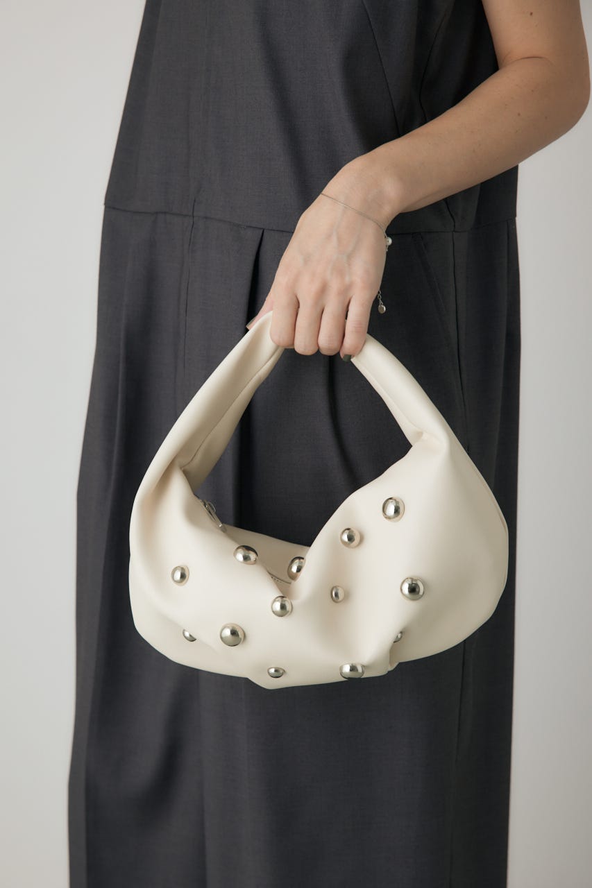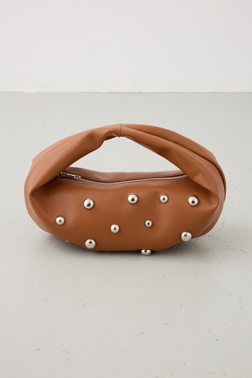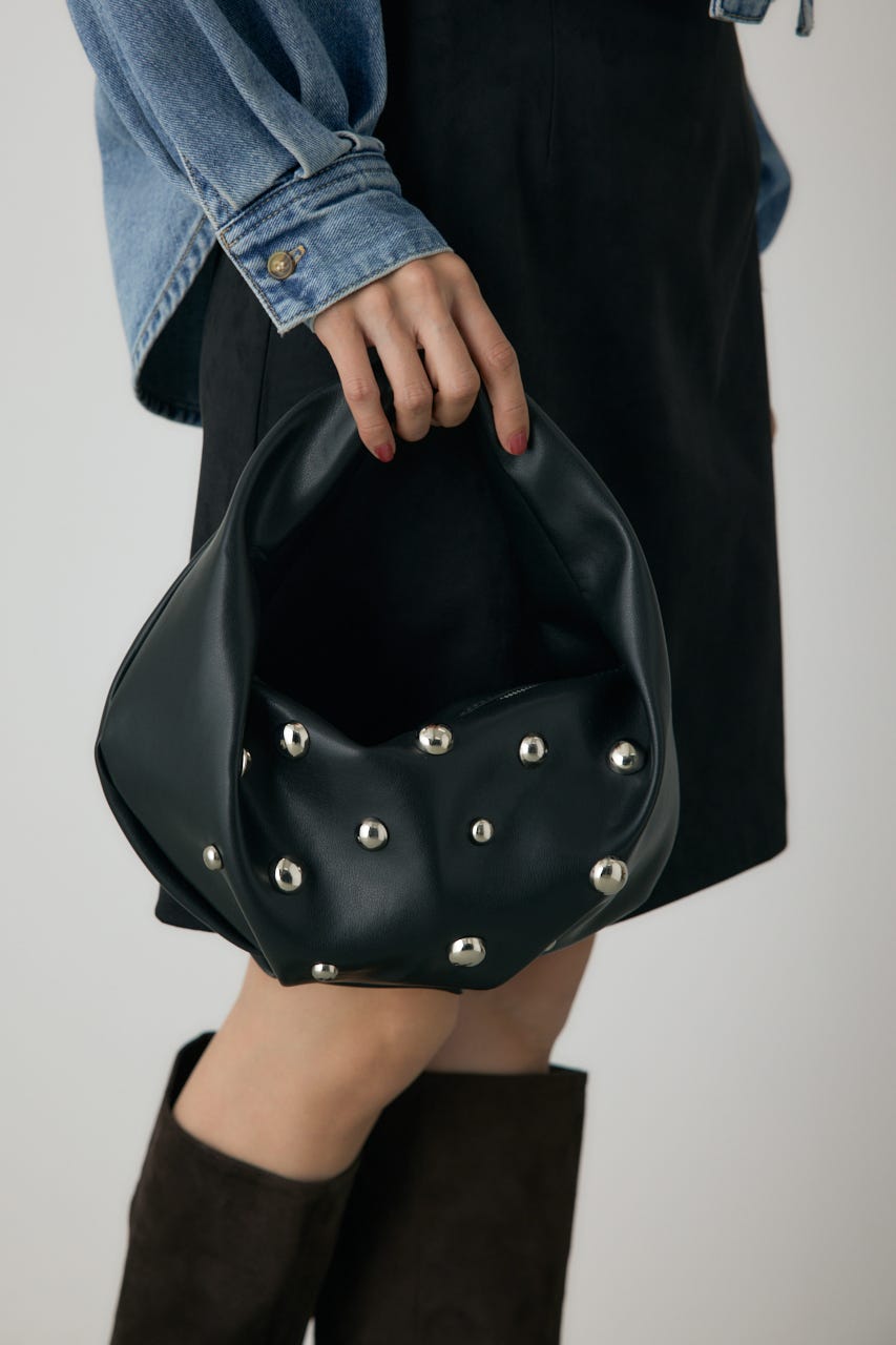 丸いスタッズがポイントのワンハンドルバッグ。