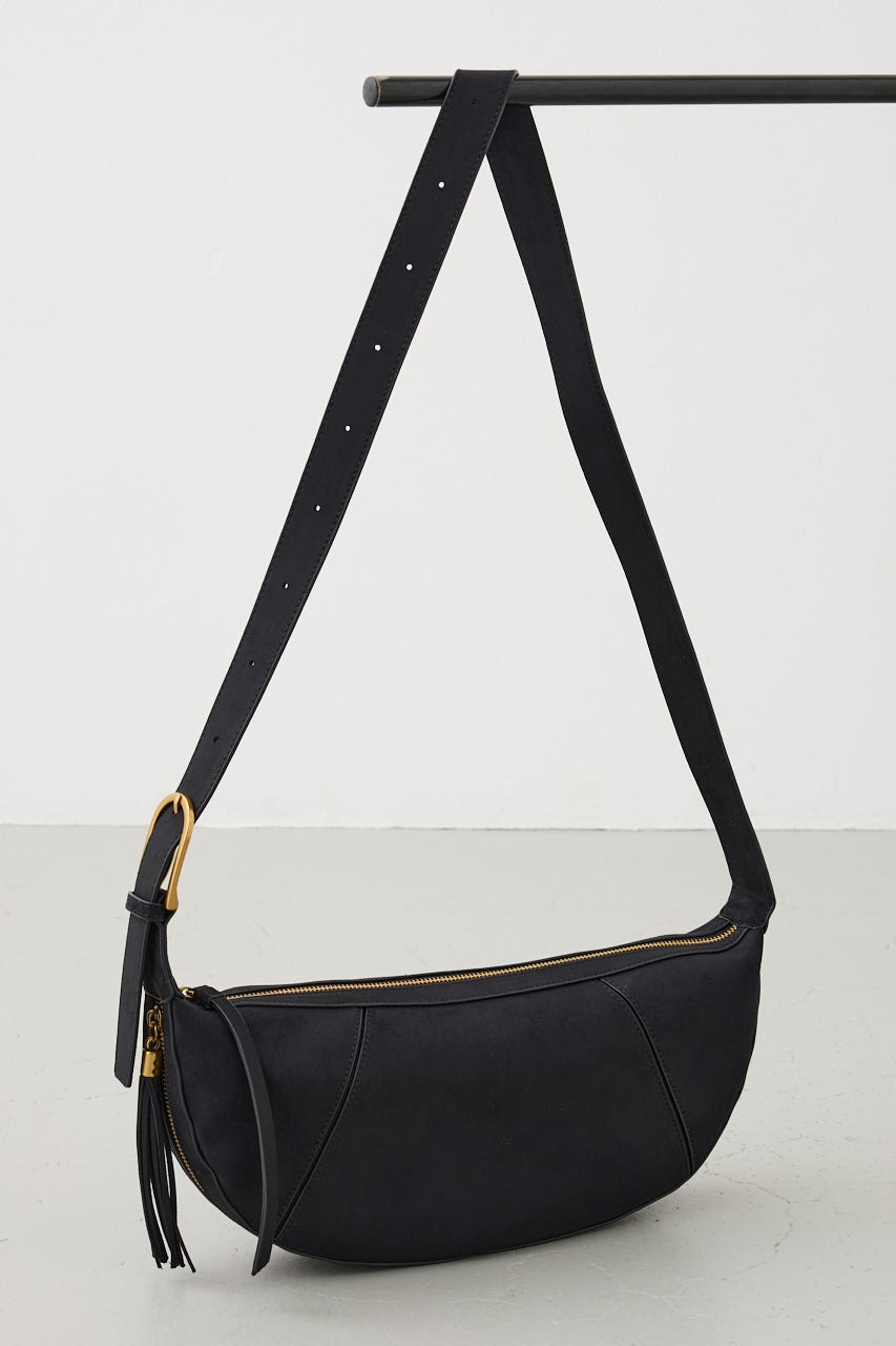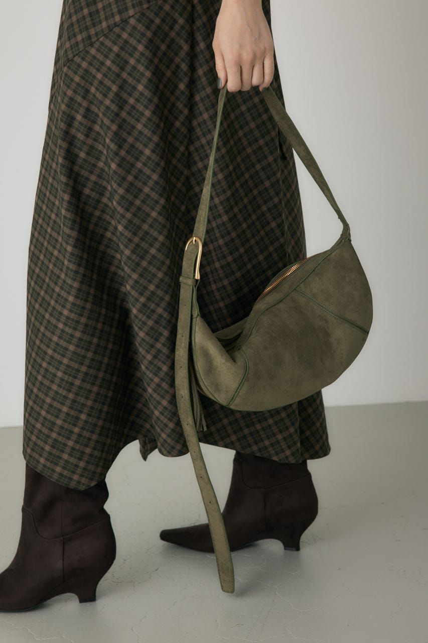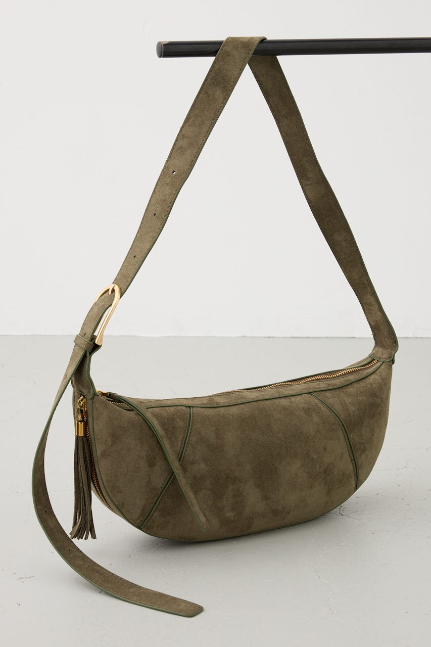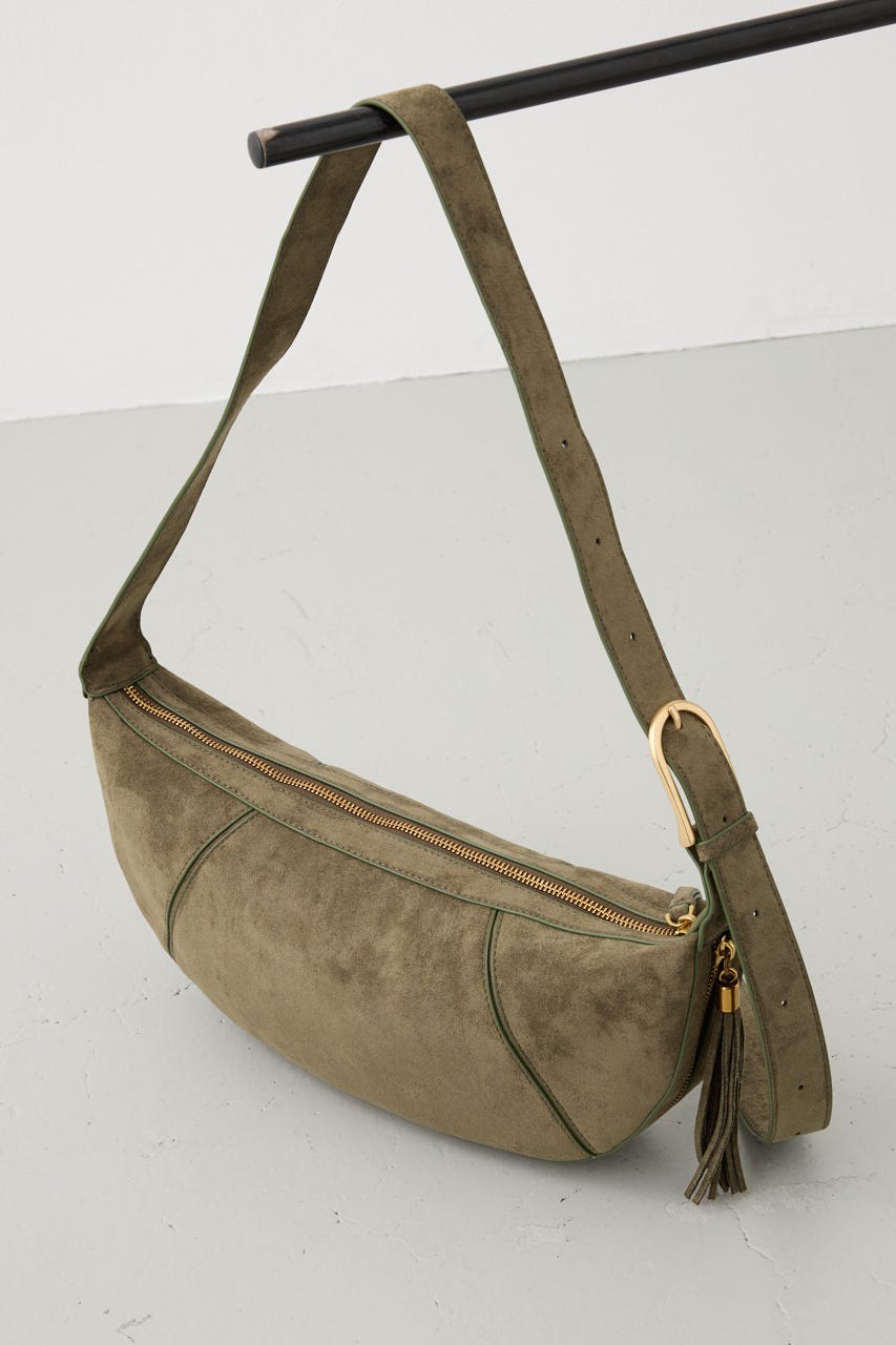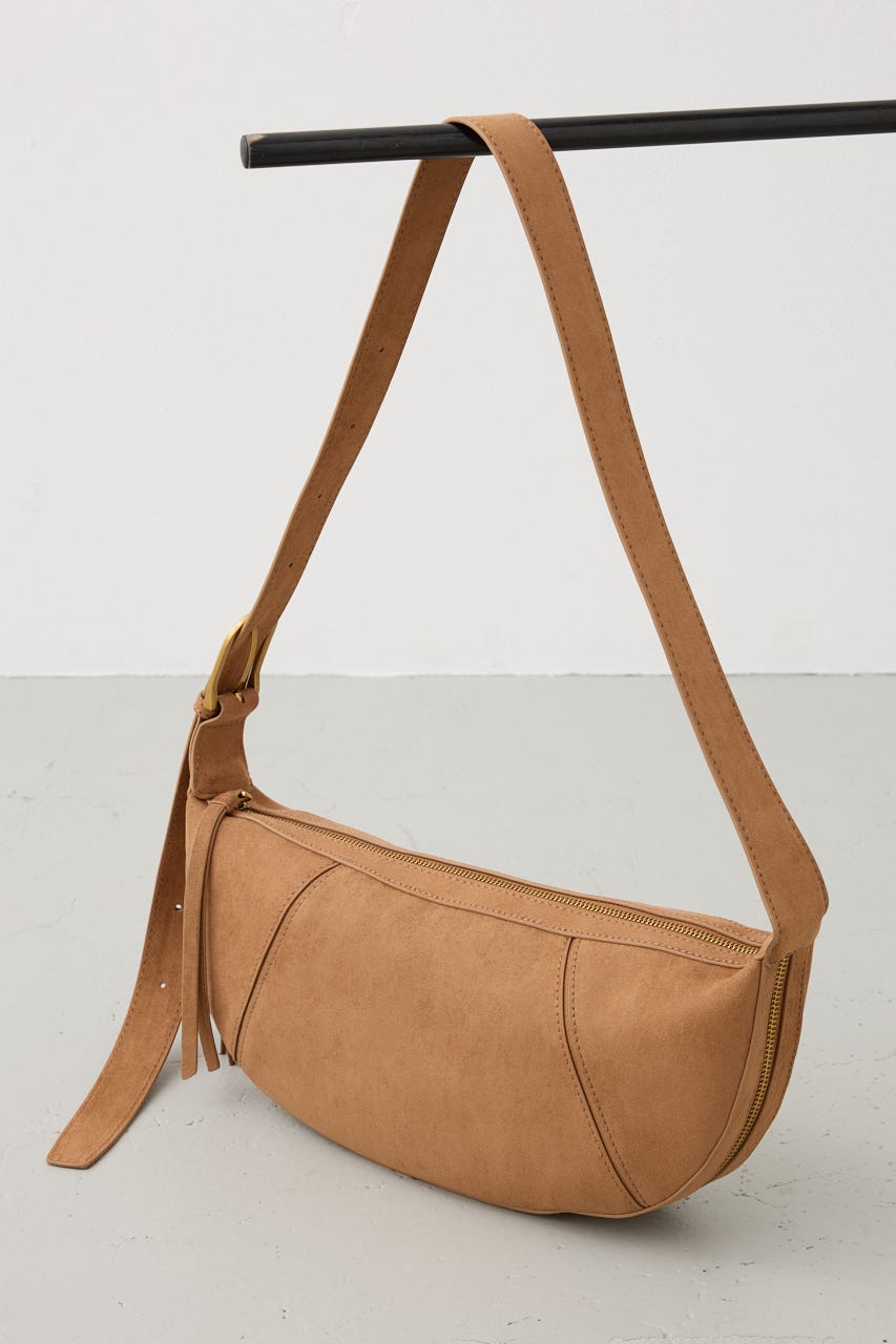 トレンドのスエード調素材のハーフムーン型ショルダー。