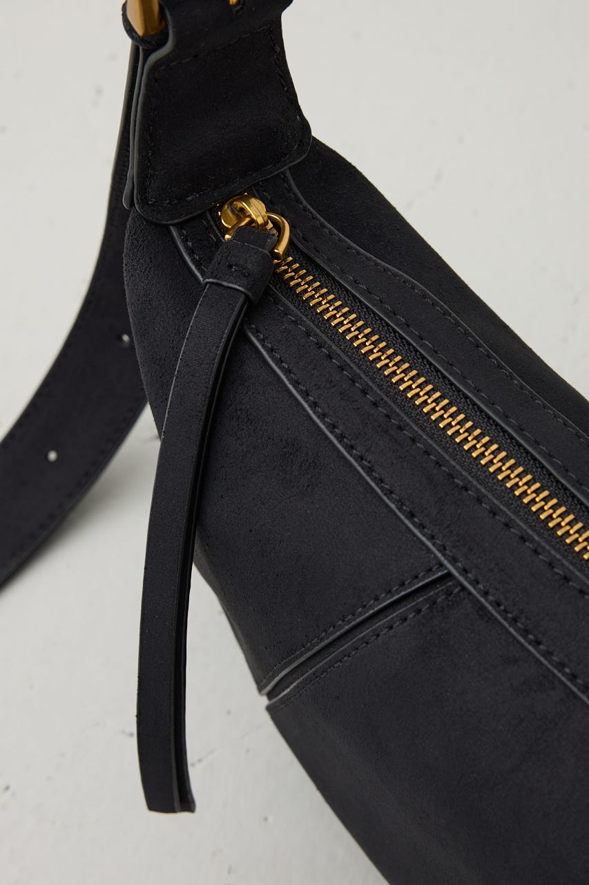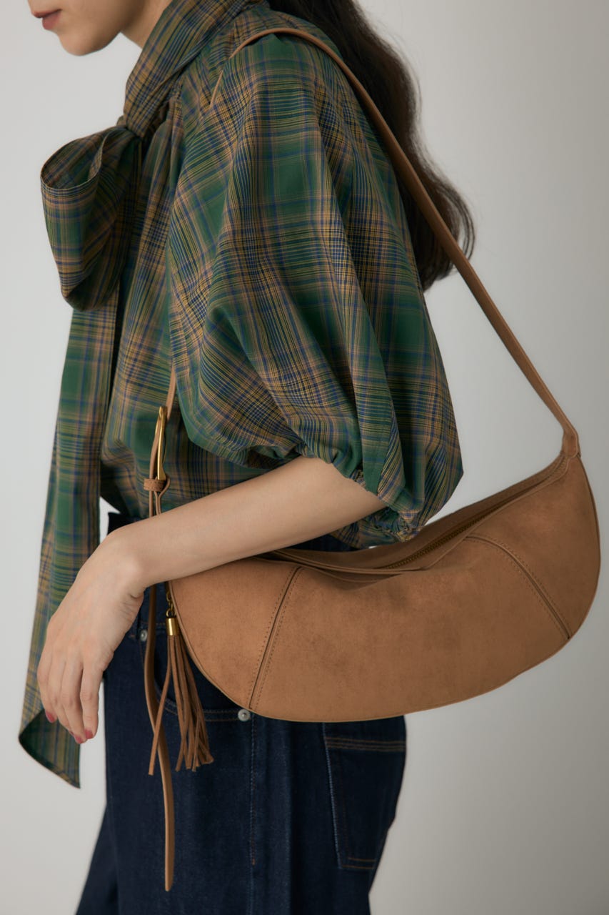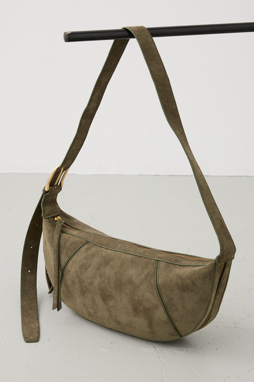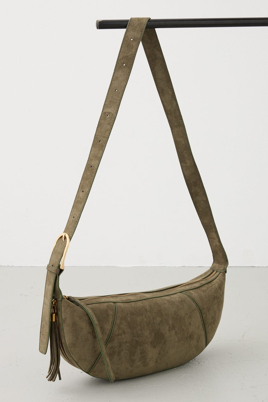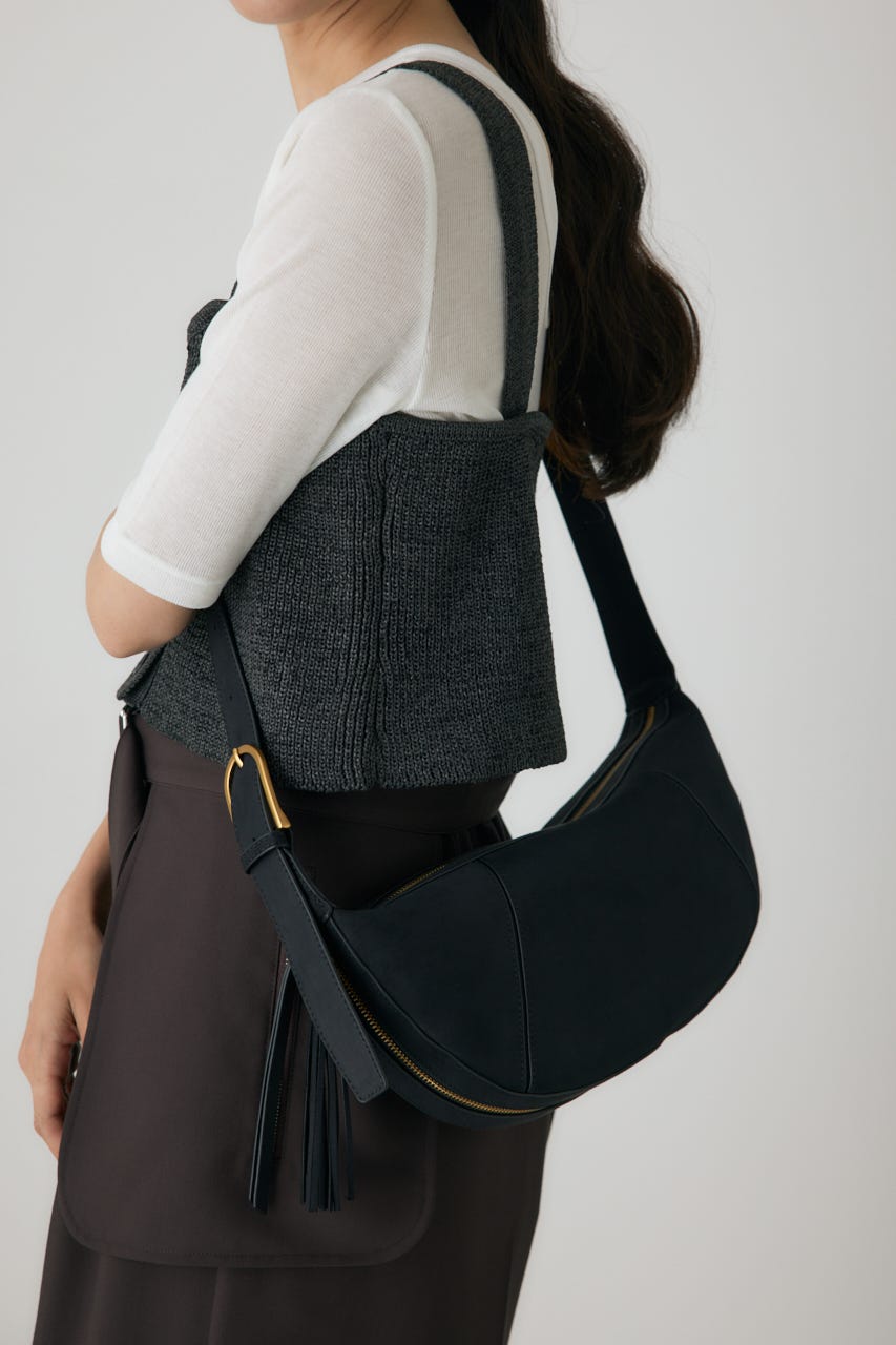 トレンドのスエード調素材のハーフムーン型ショルダー。