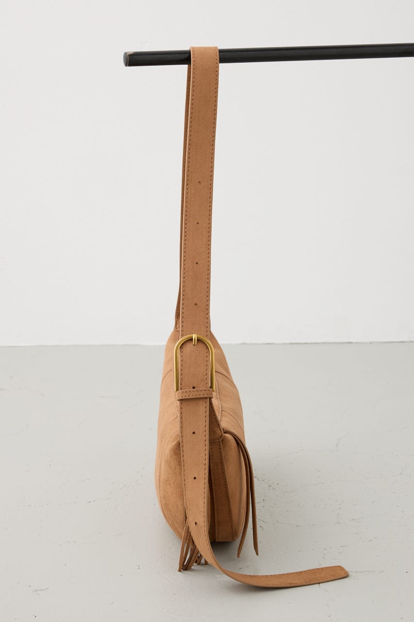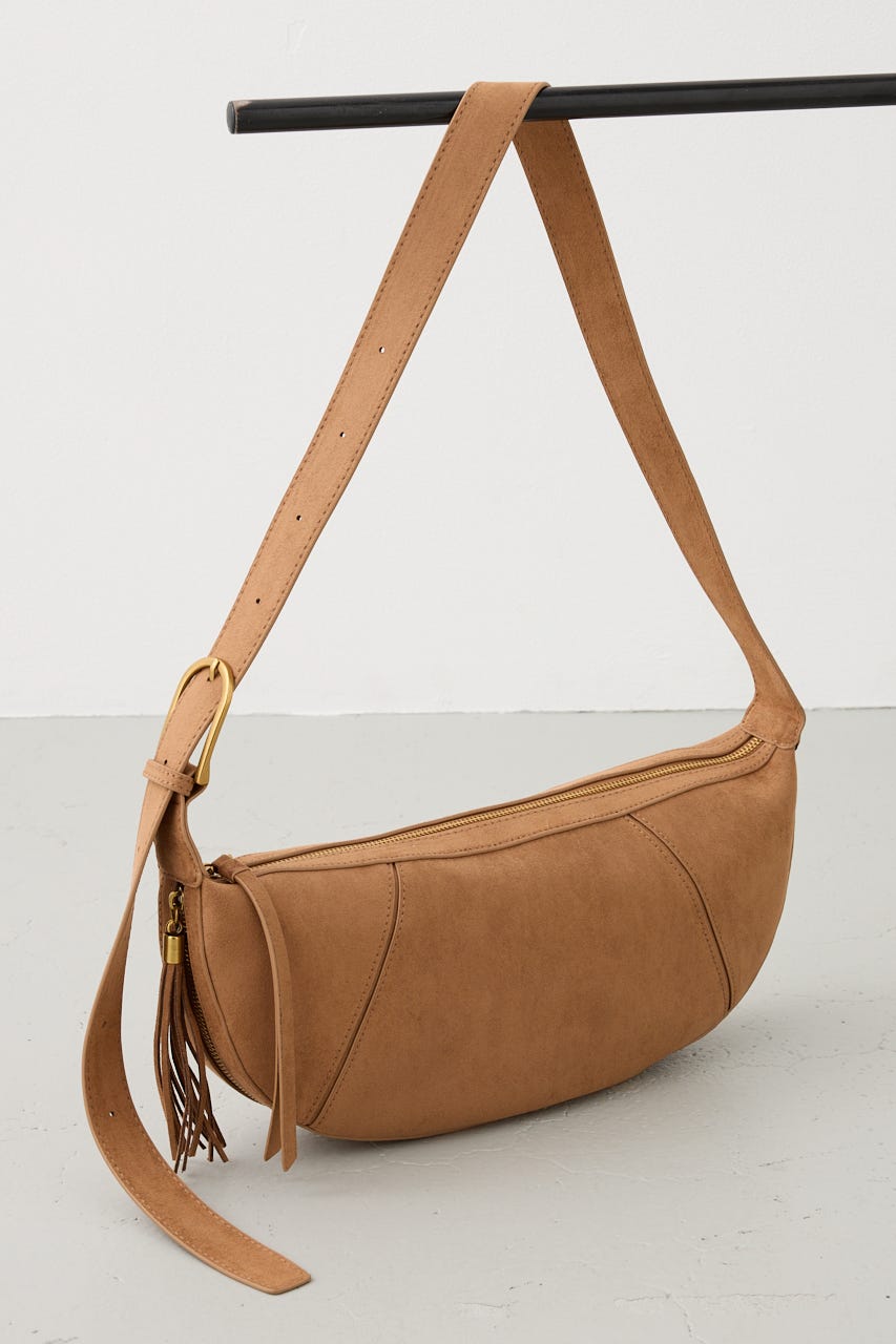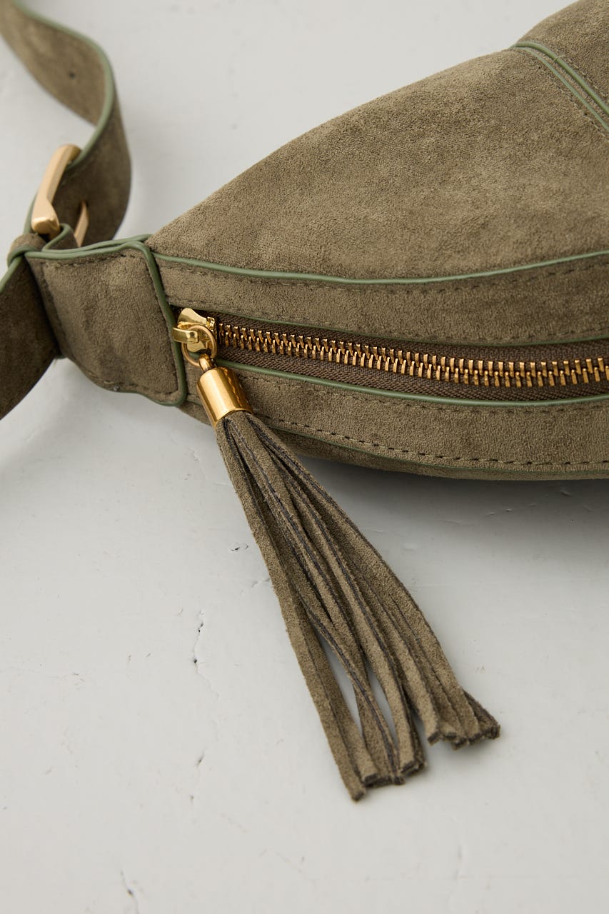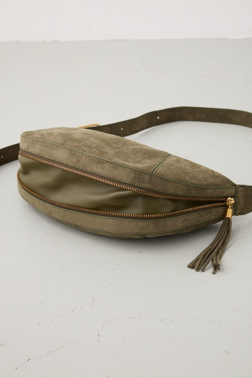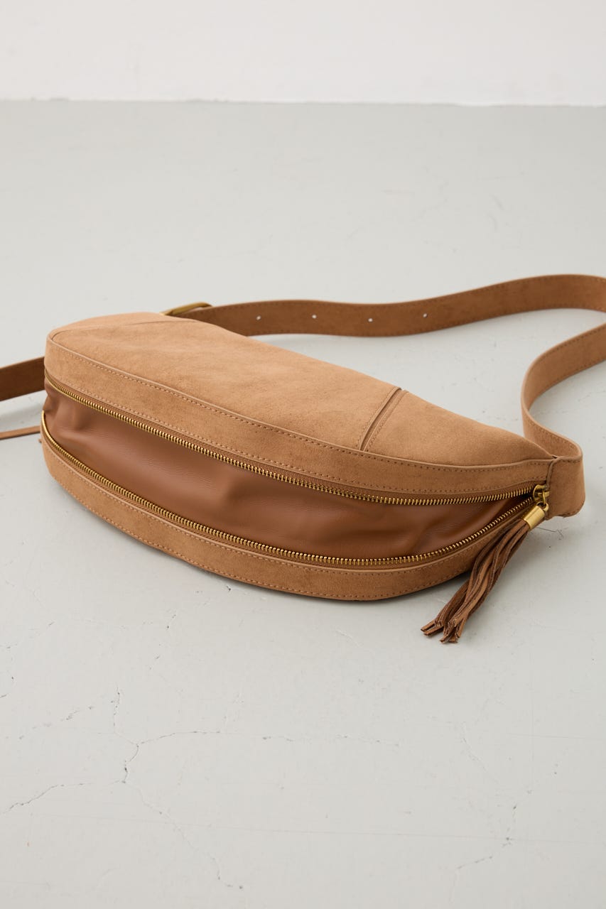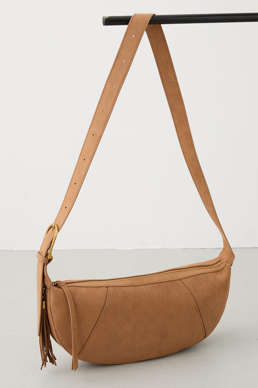 トレンドのスエード調素材のハーフムーン型ショルダー。