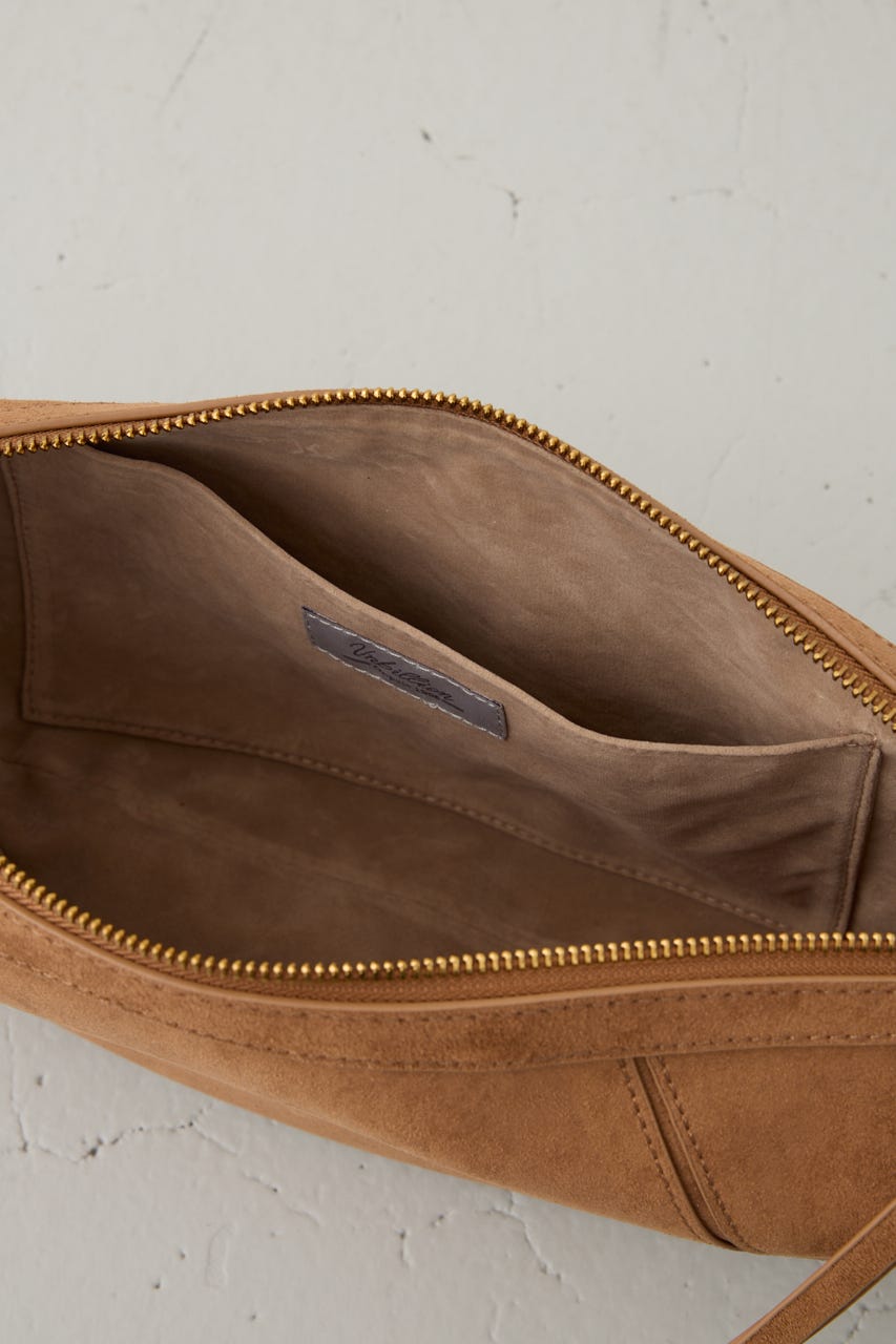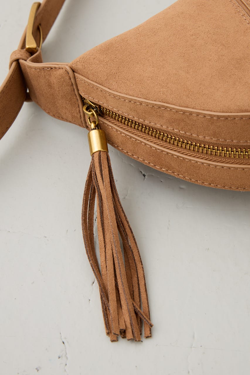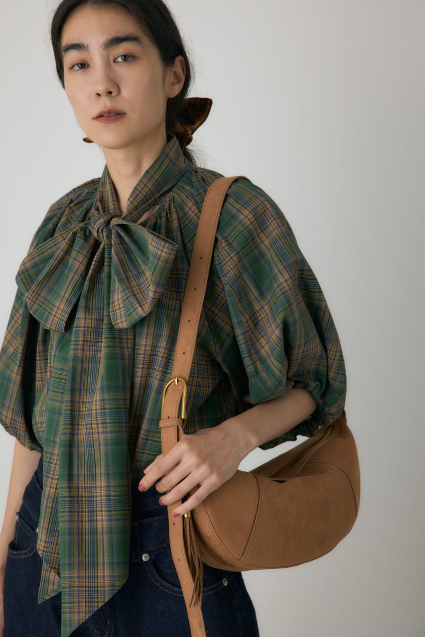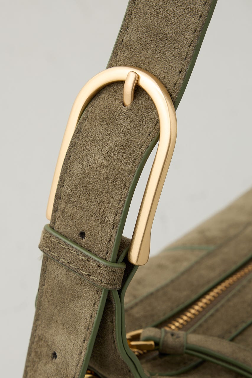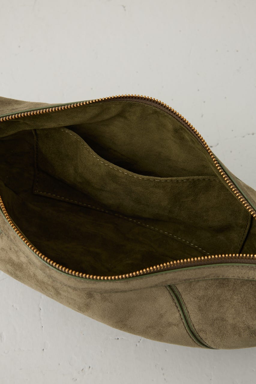 トレンドのスエード調素材のハーフムーン型ショルダー。