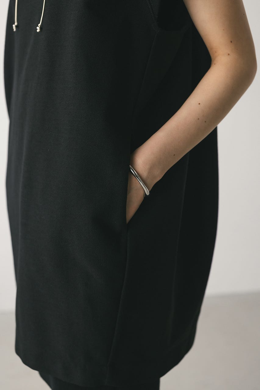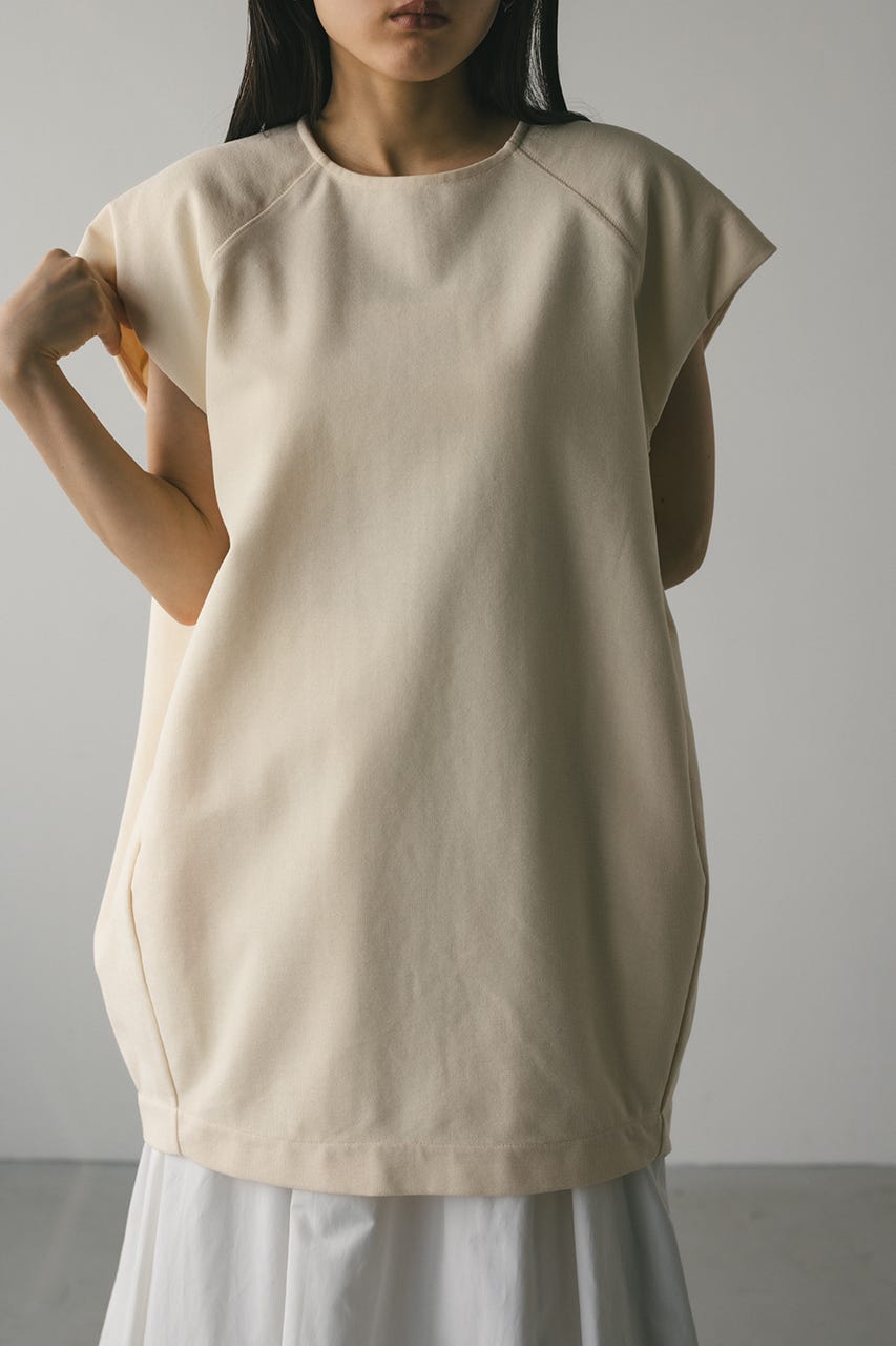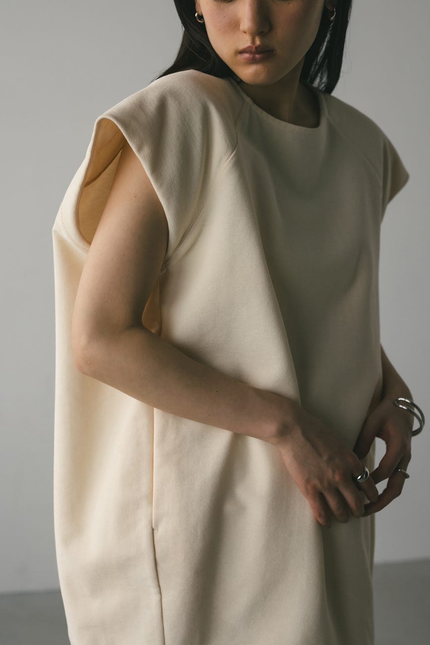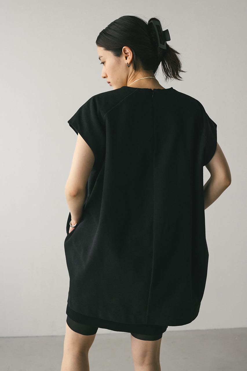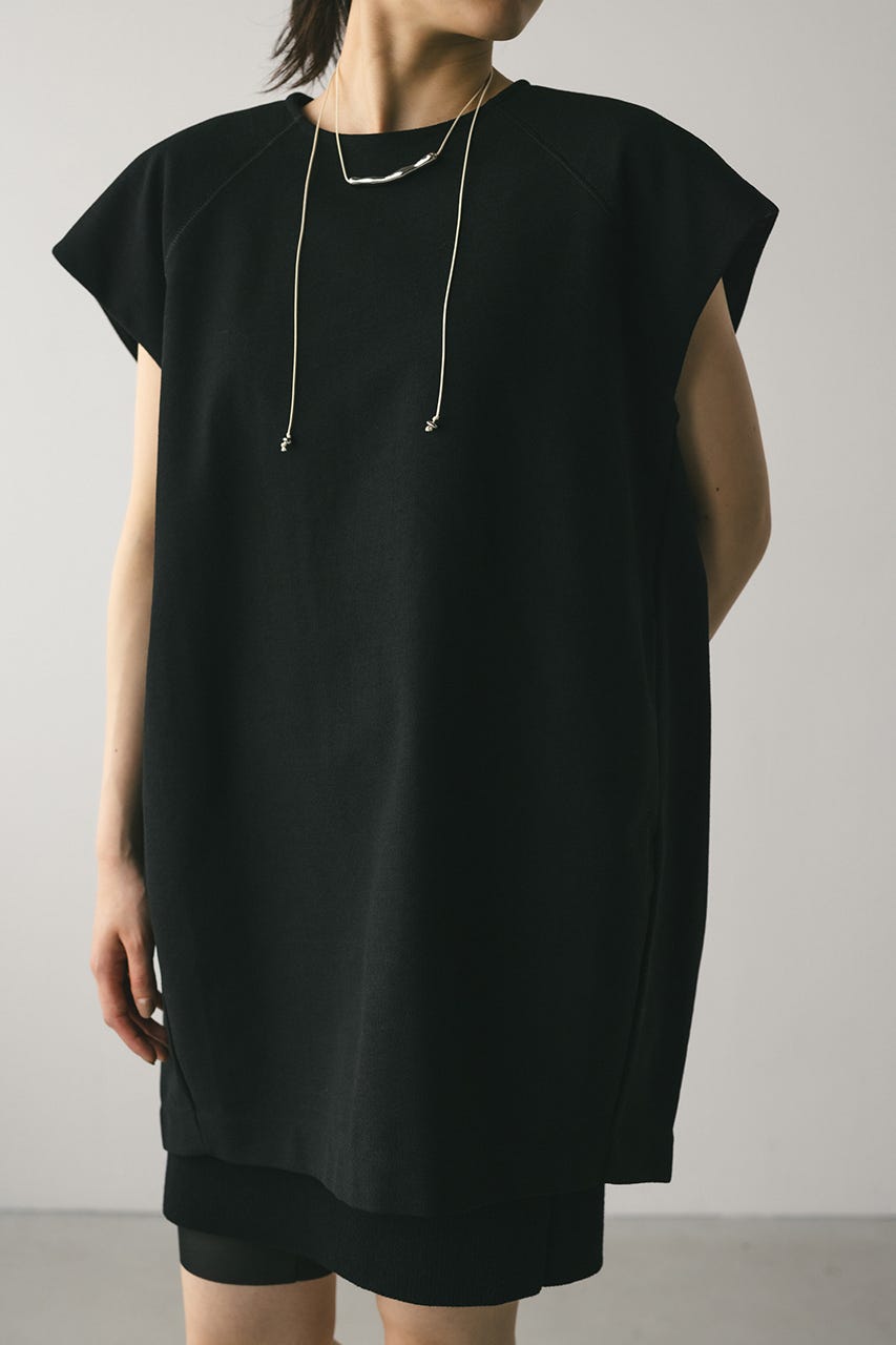 丸いフォルム感とモードなショルダーディテールがポイントのミニワンピース。
