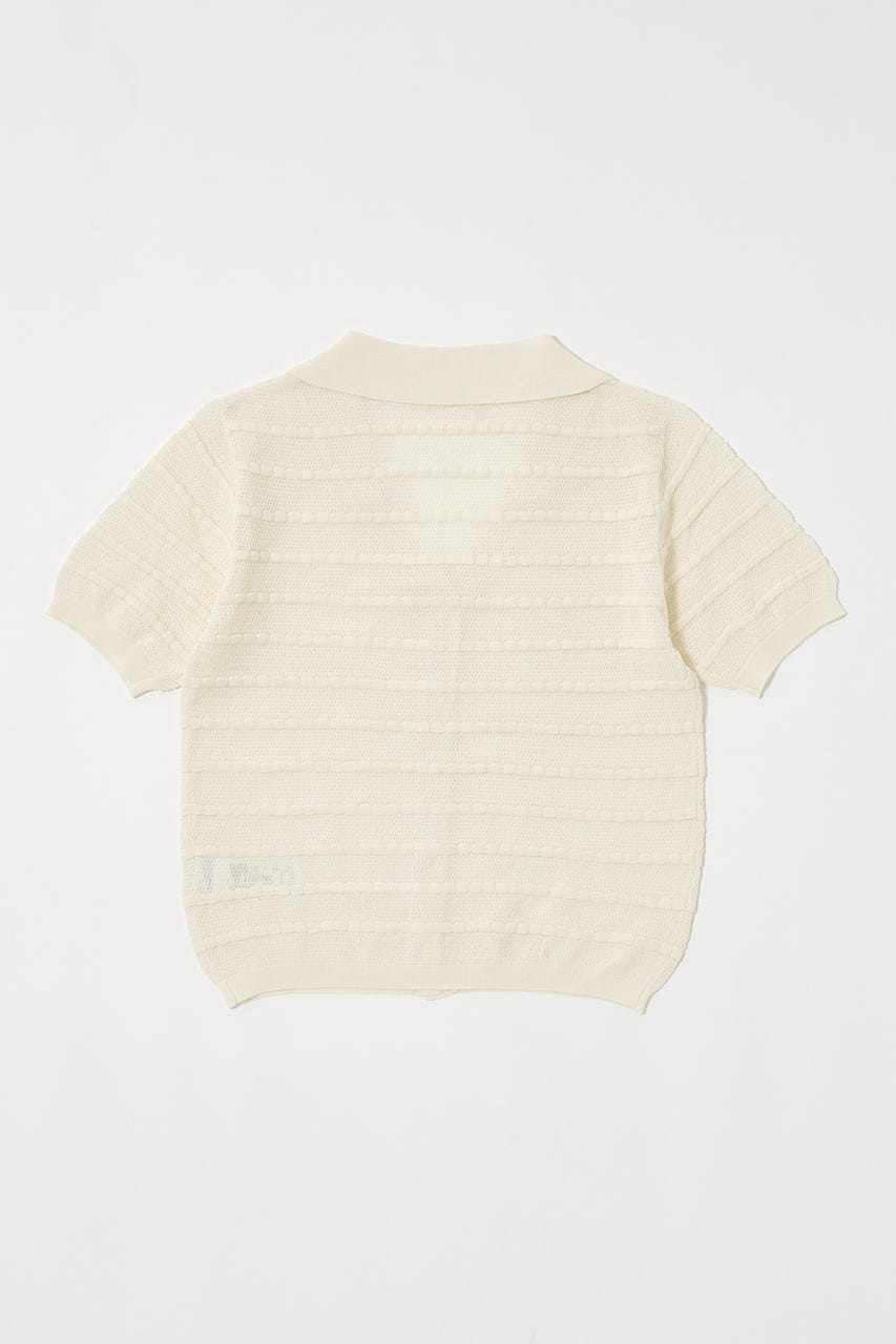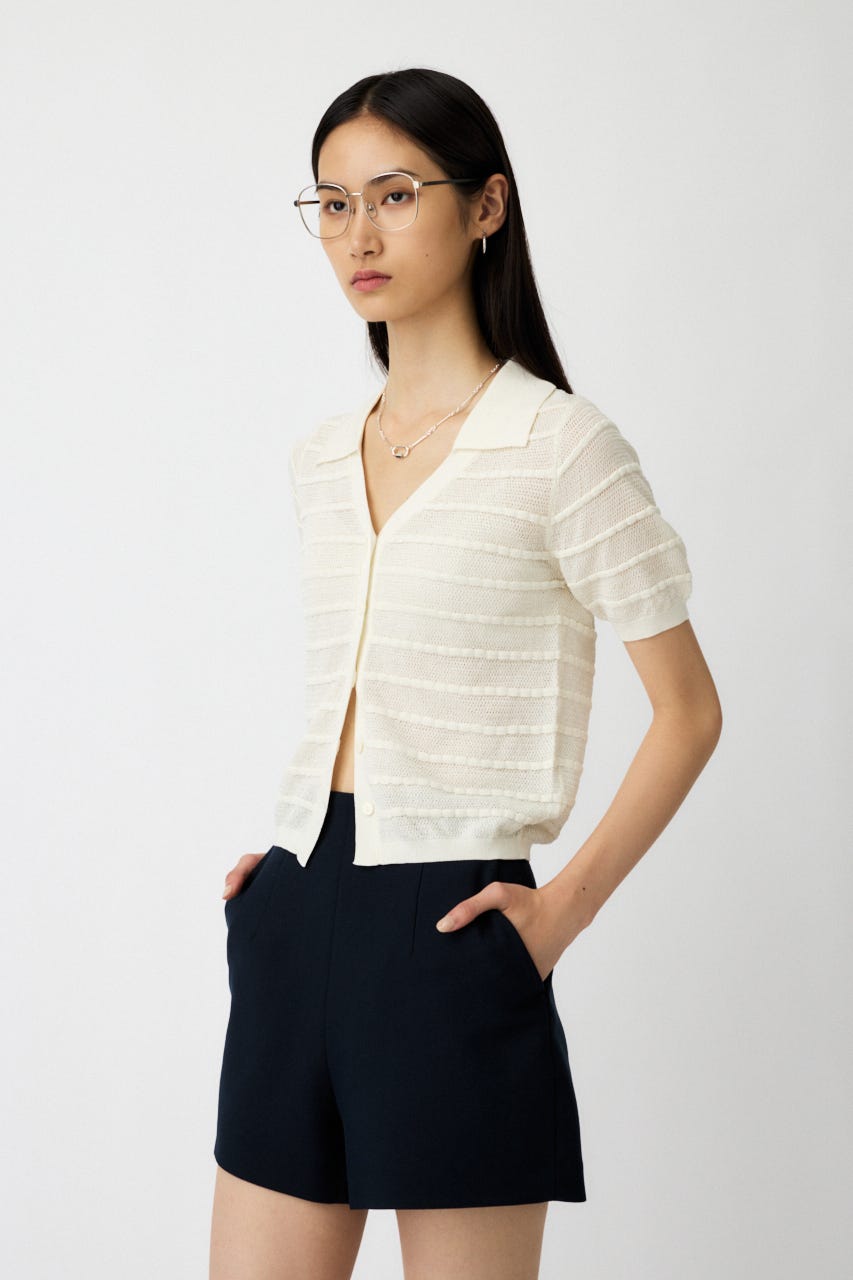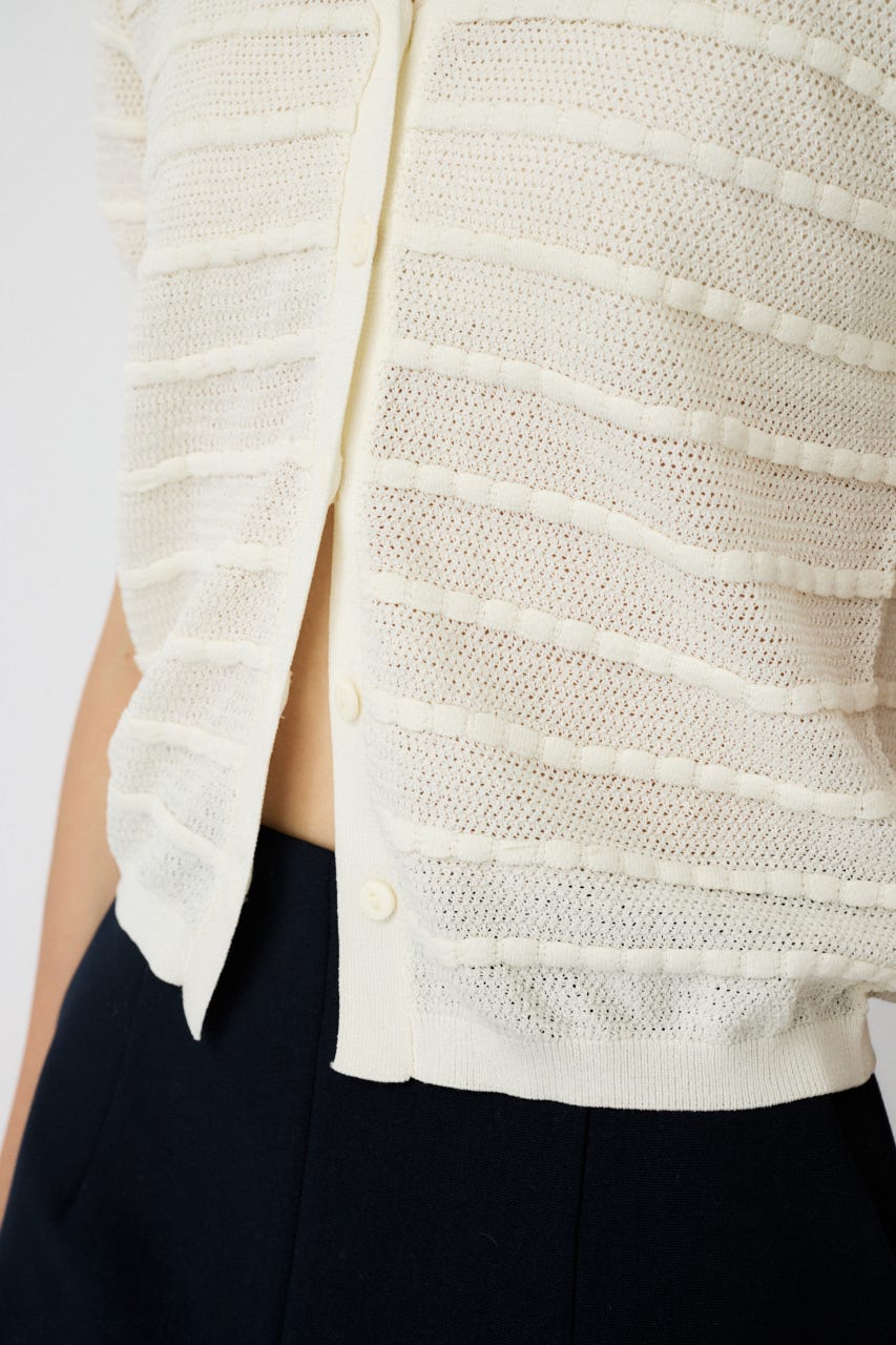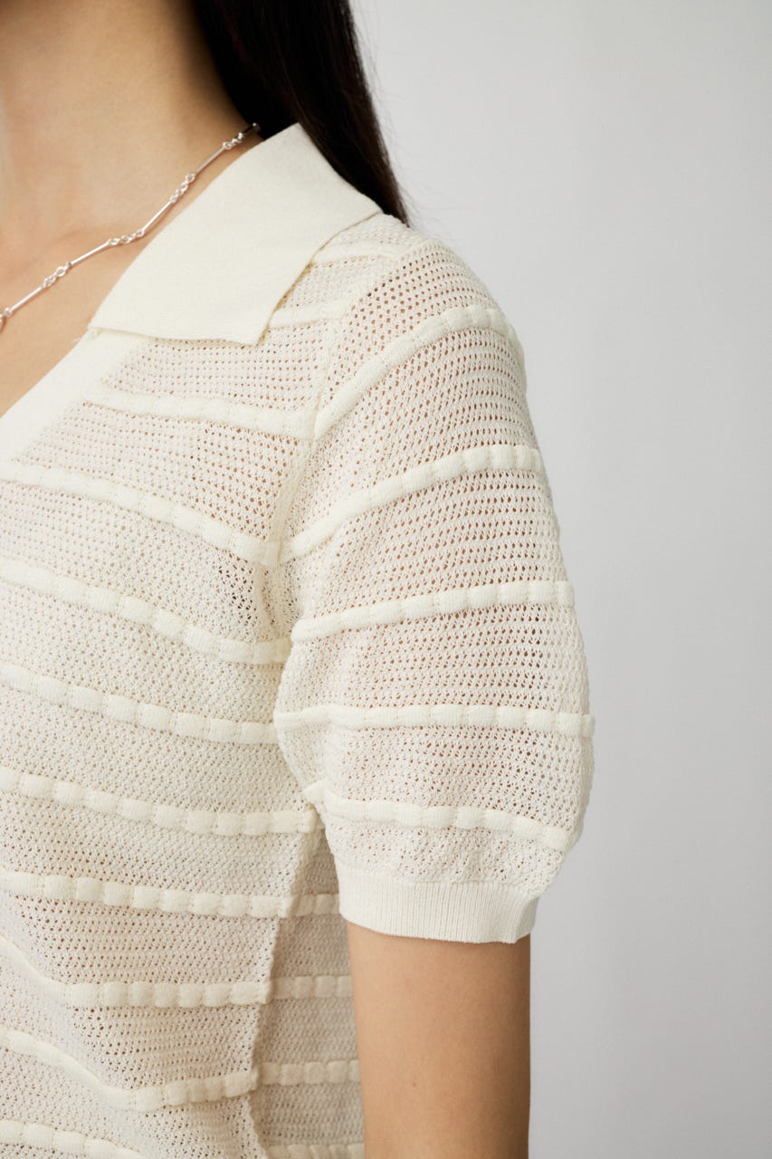 透かし編みのさらっとしたニット素材で夏のワードローブに揃えておきたい1枚。
