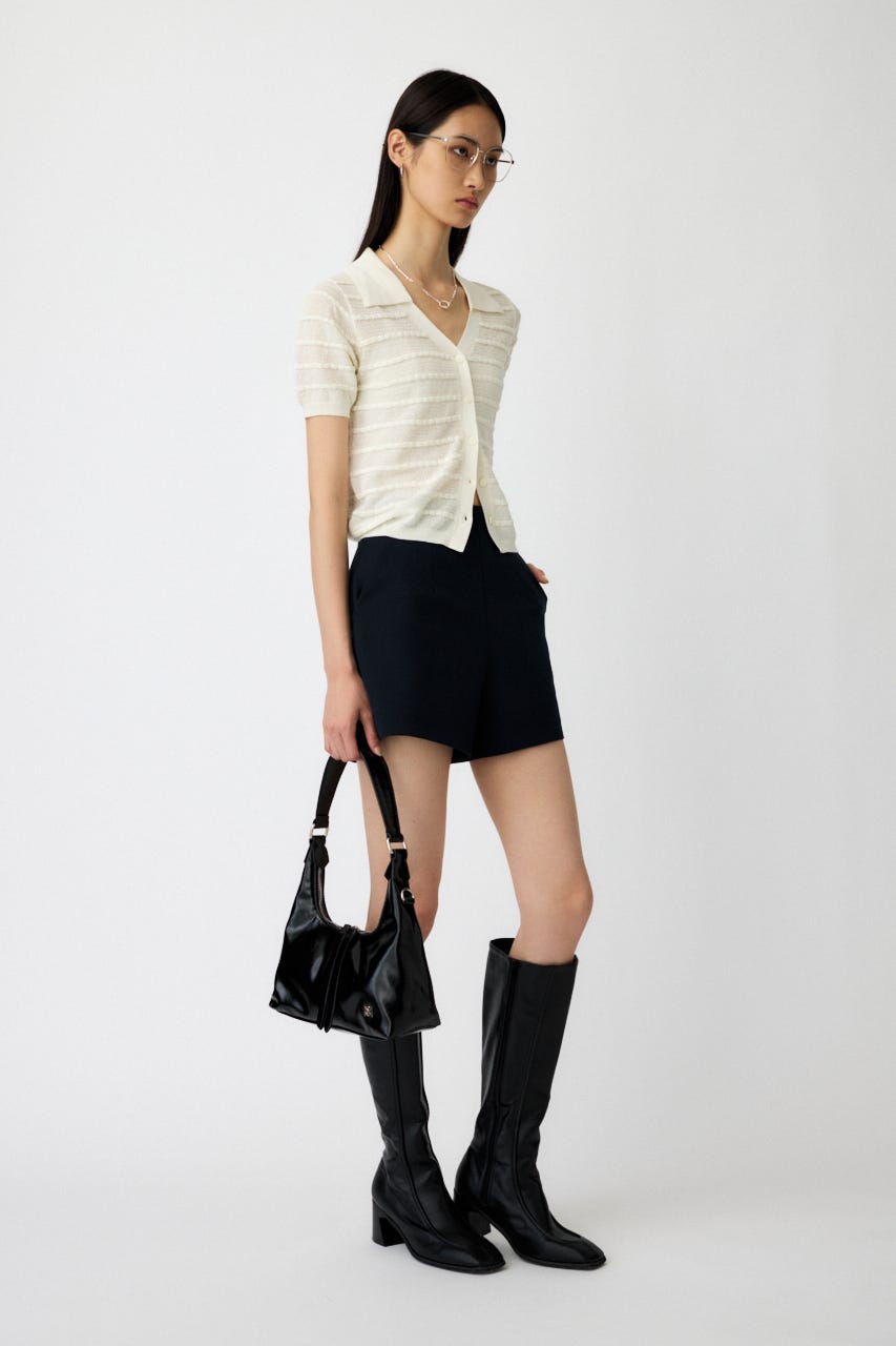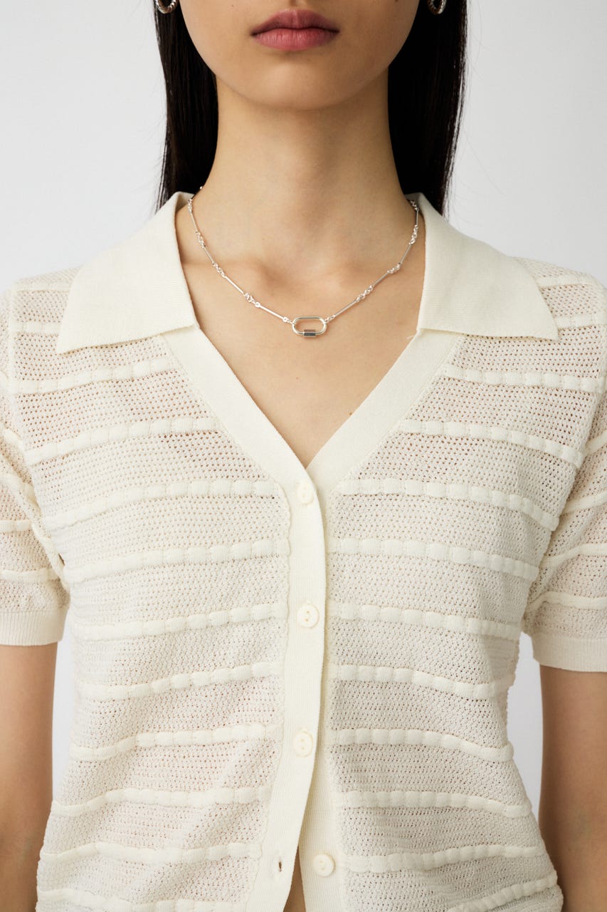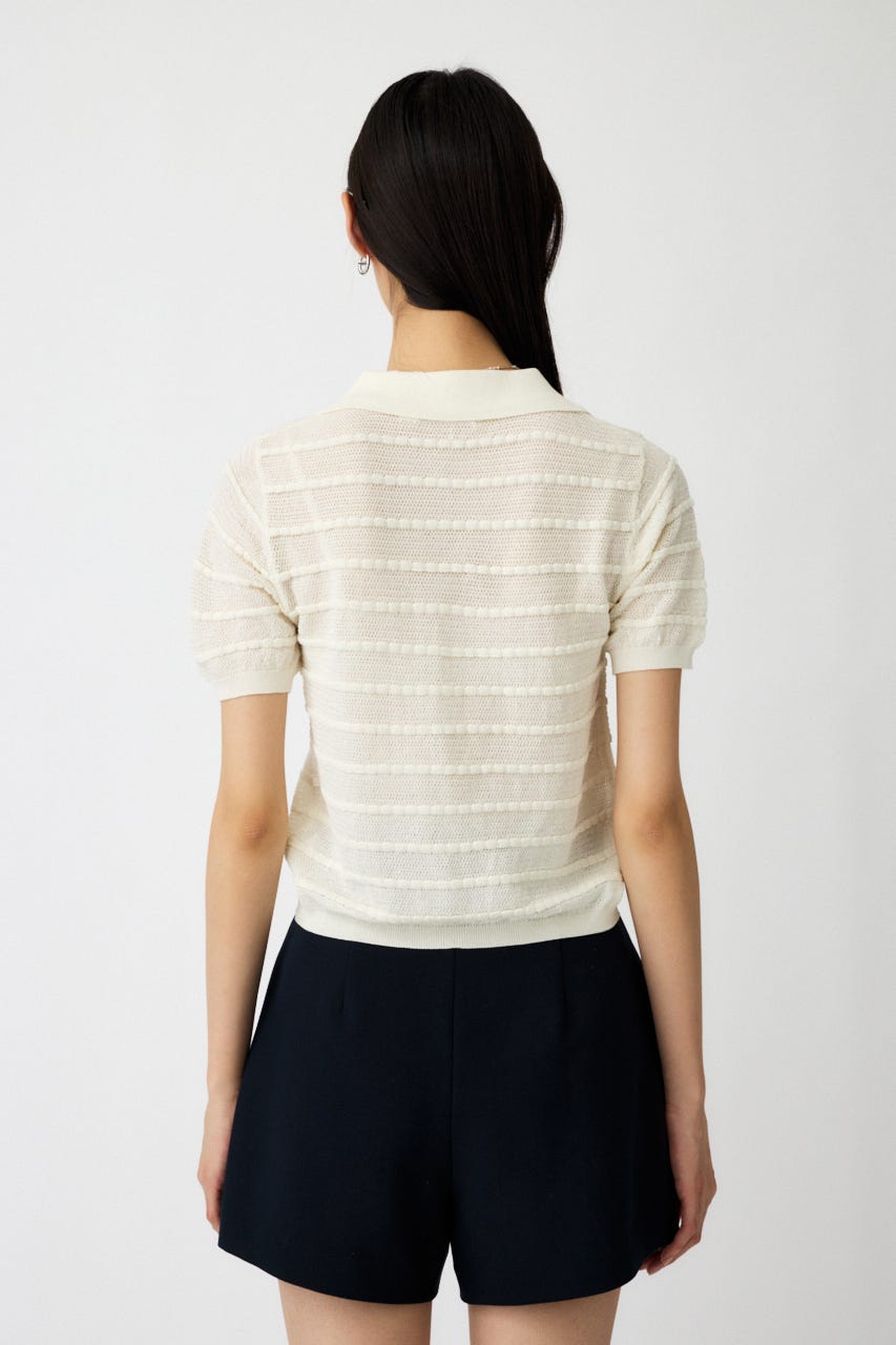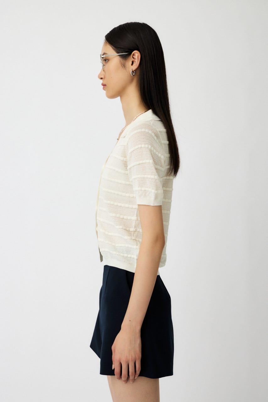 透かし編みのさらっとしたニット素材で夏のワードローブに揃えておきたい1枚。