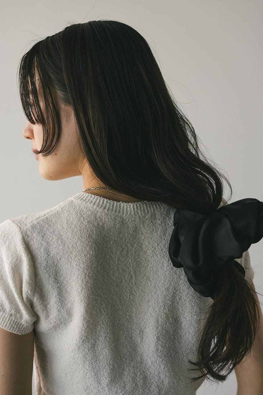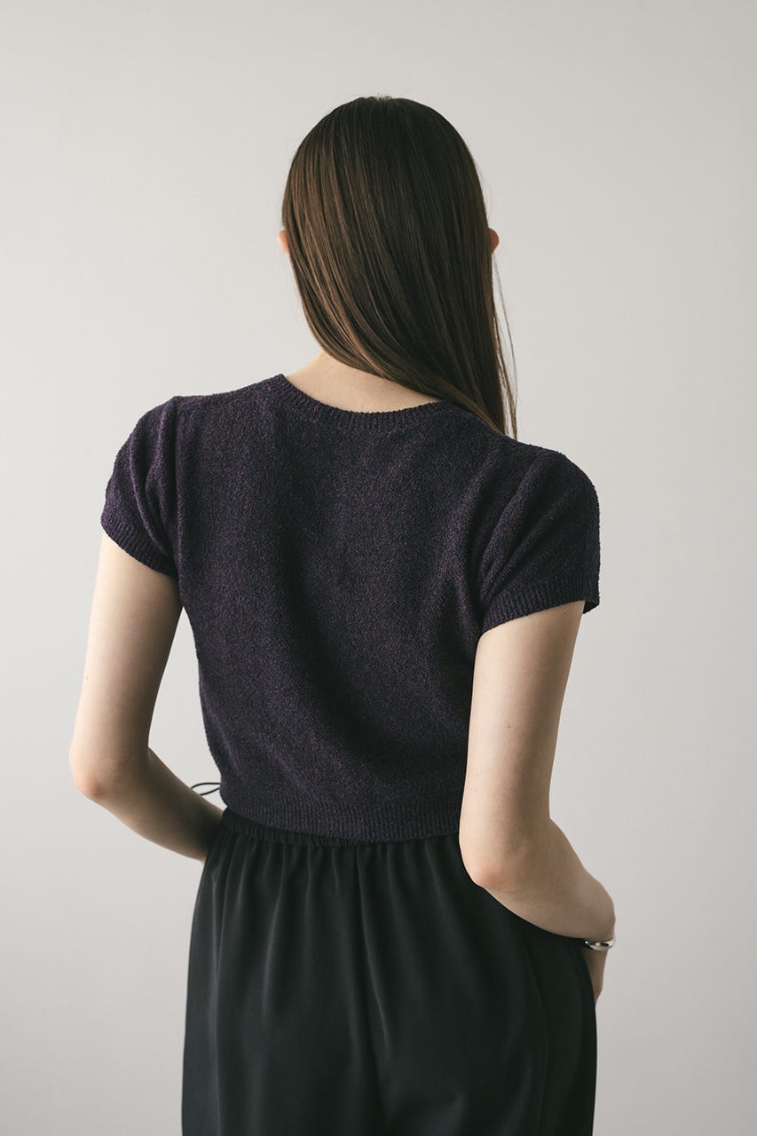 コンパクトなシルエットがポイントの前後2WAYで着用できるパイルニットトップ。