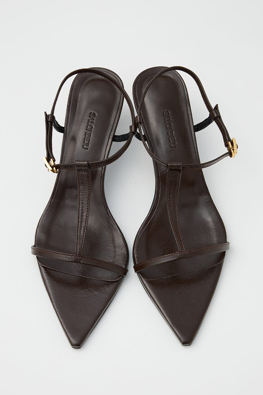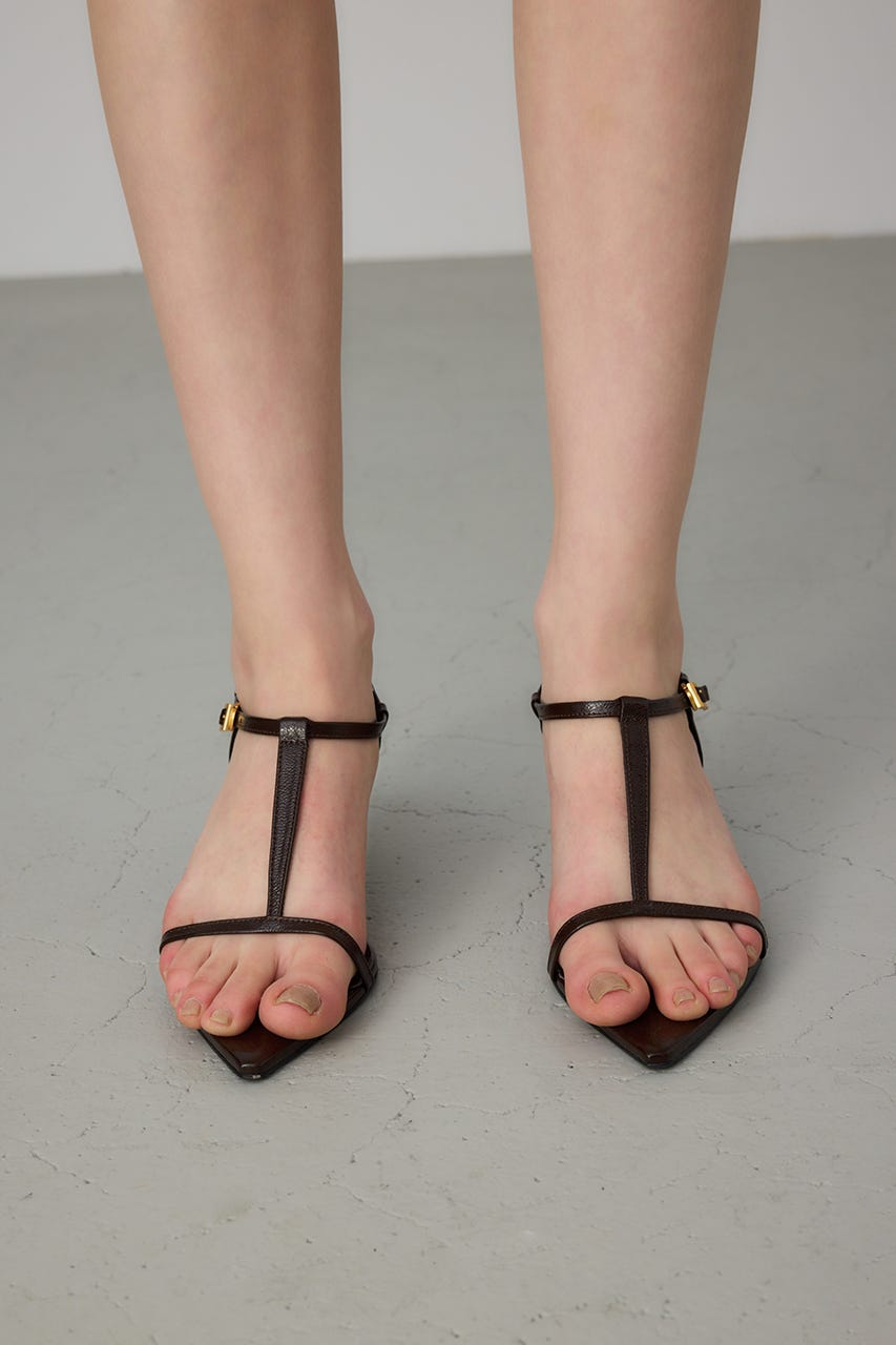 モダンなTストラップデザインかつストラップの太さに変化をつける事で、よりユニークなラインに仕上げました。