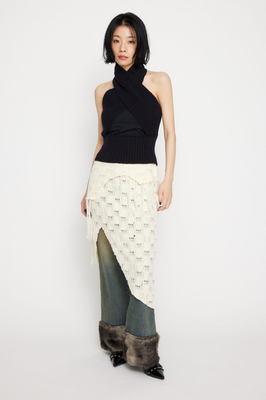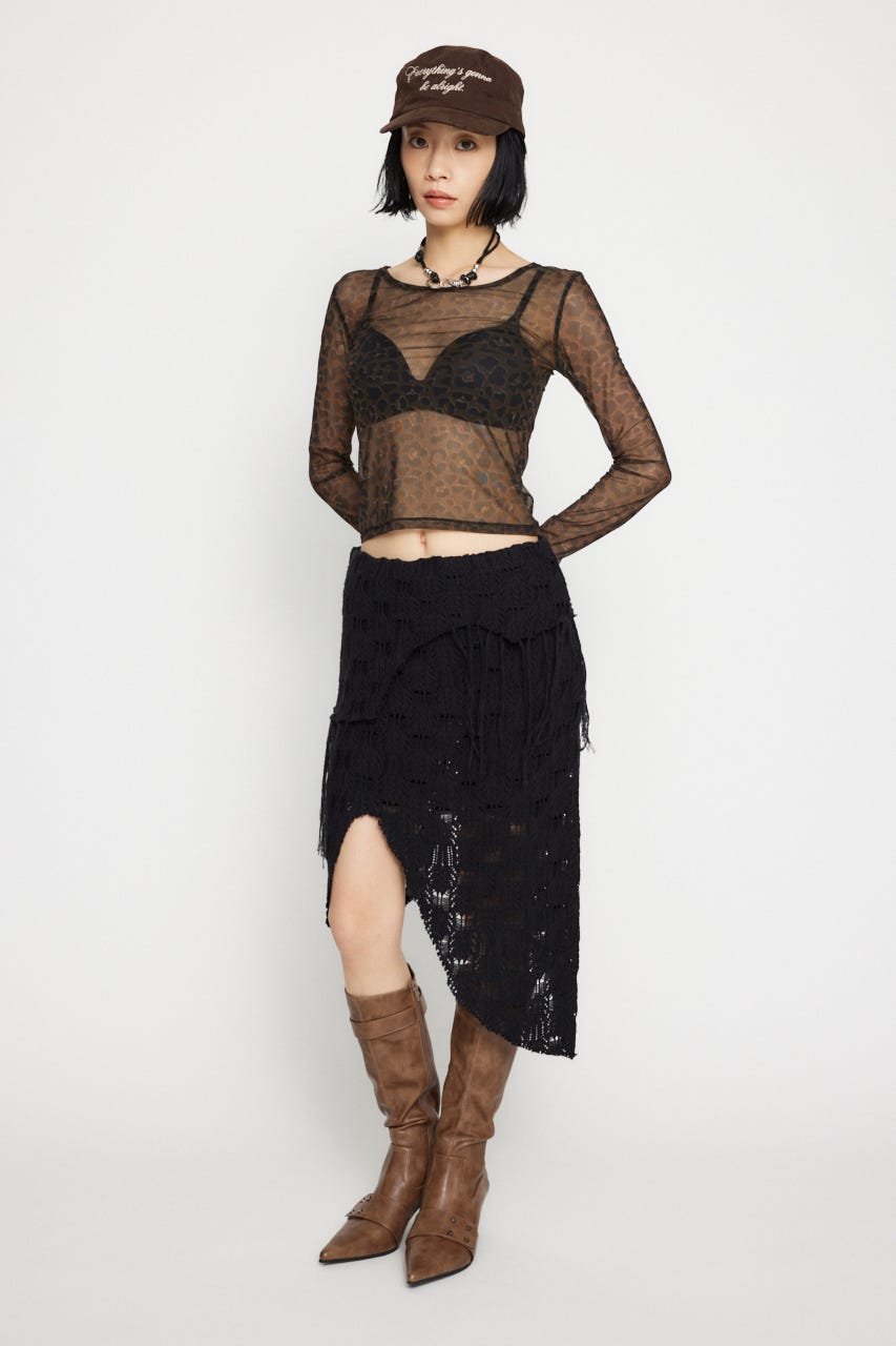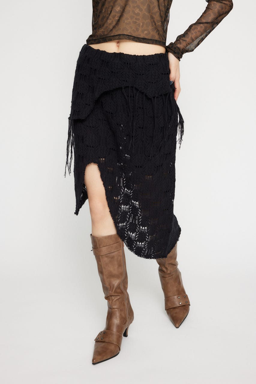 ■POINT:透け感のあるルーズな編み地がポイントのニットスカート。