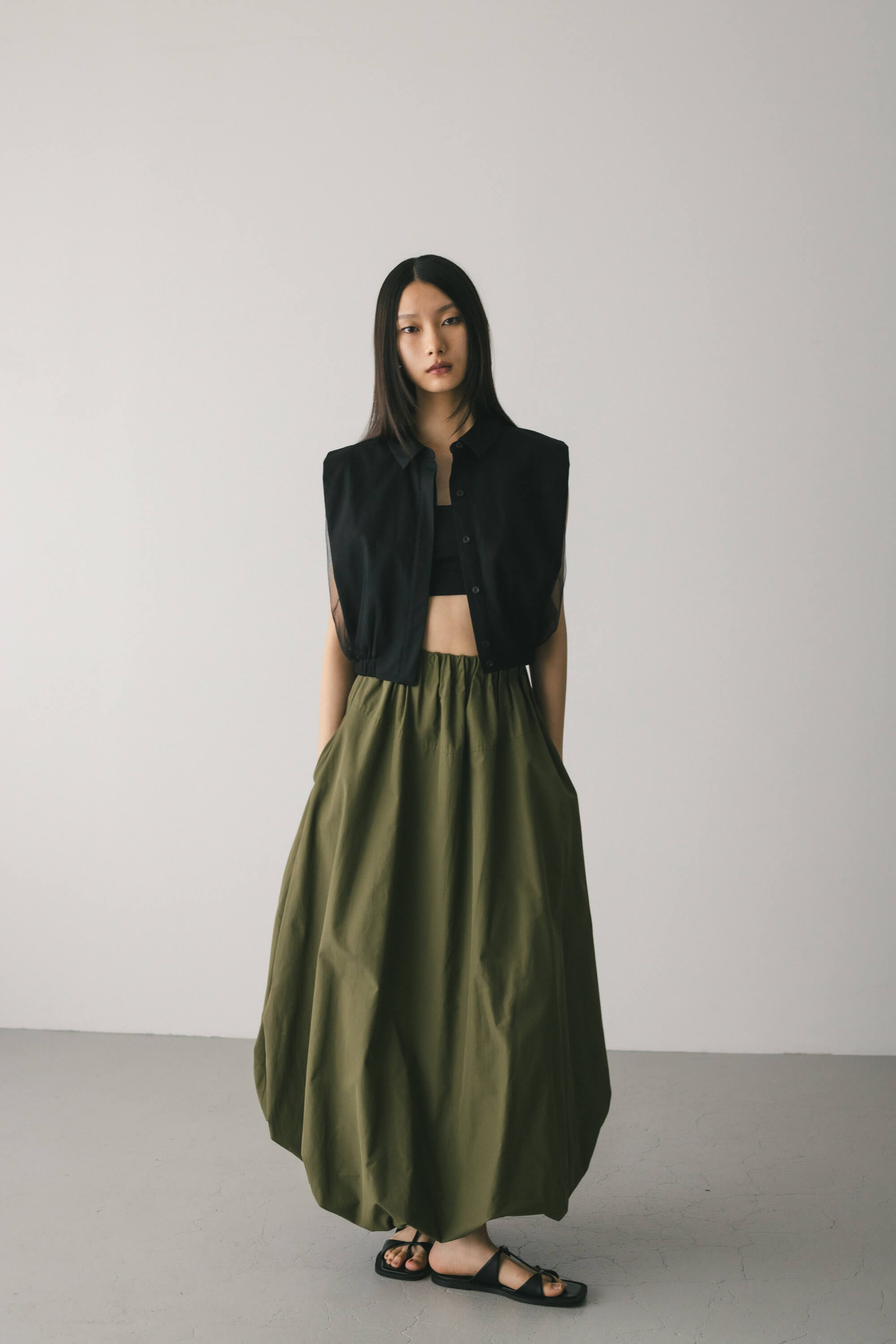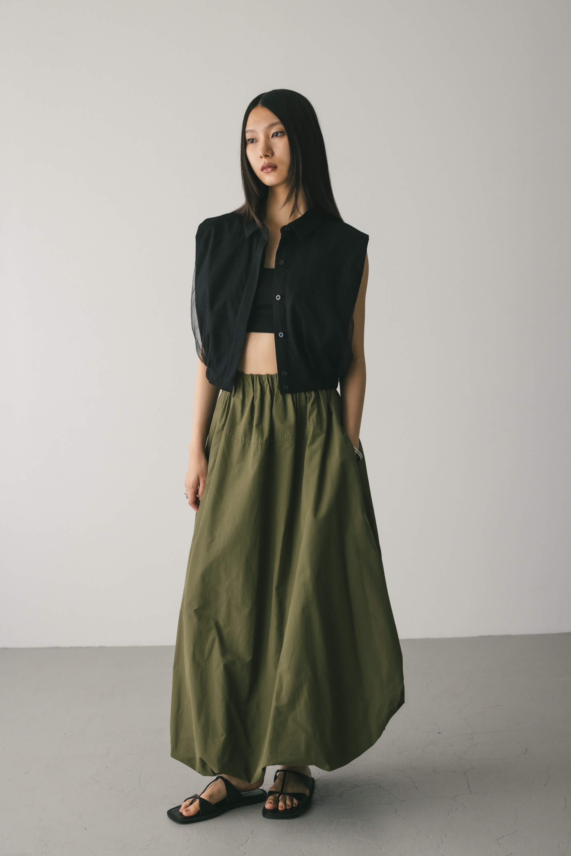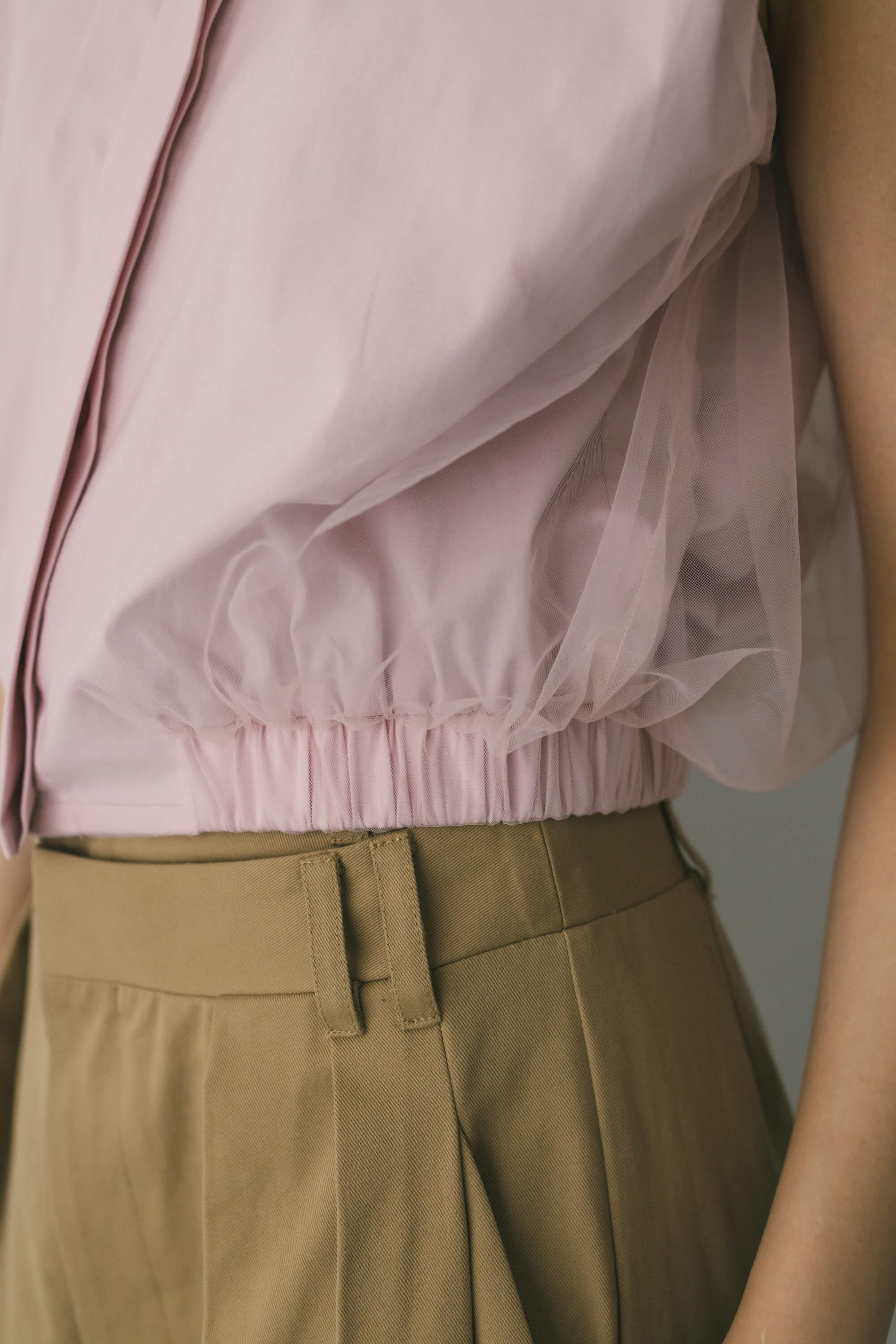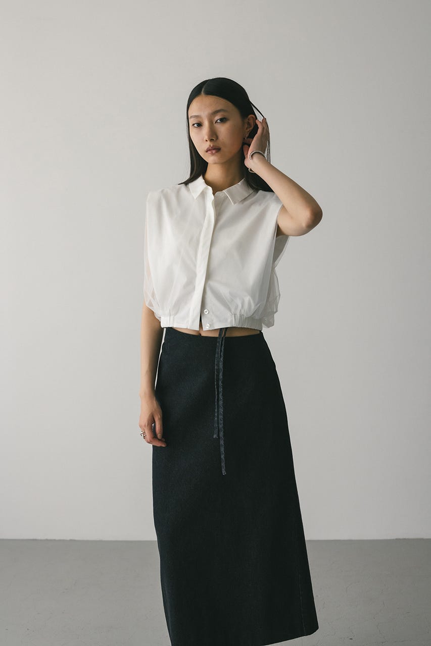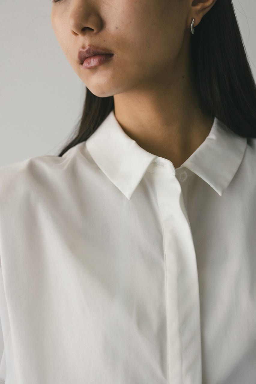 シャツとチュールをドッキングしたコンパクトレイヤードシャツ。