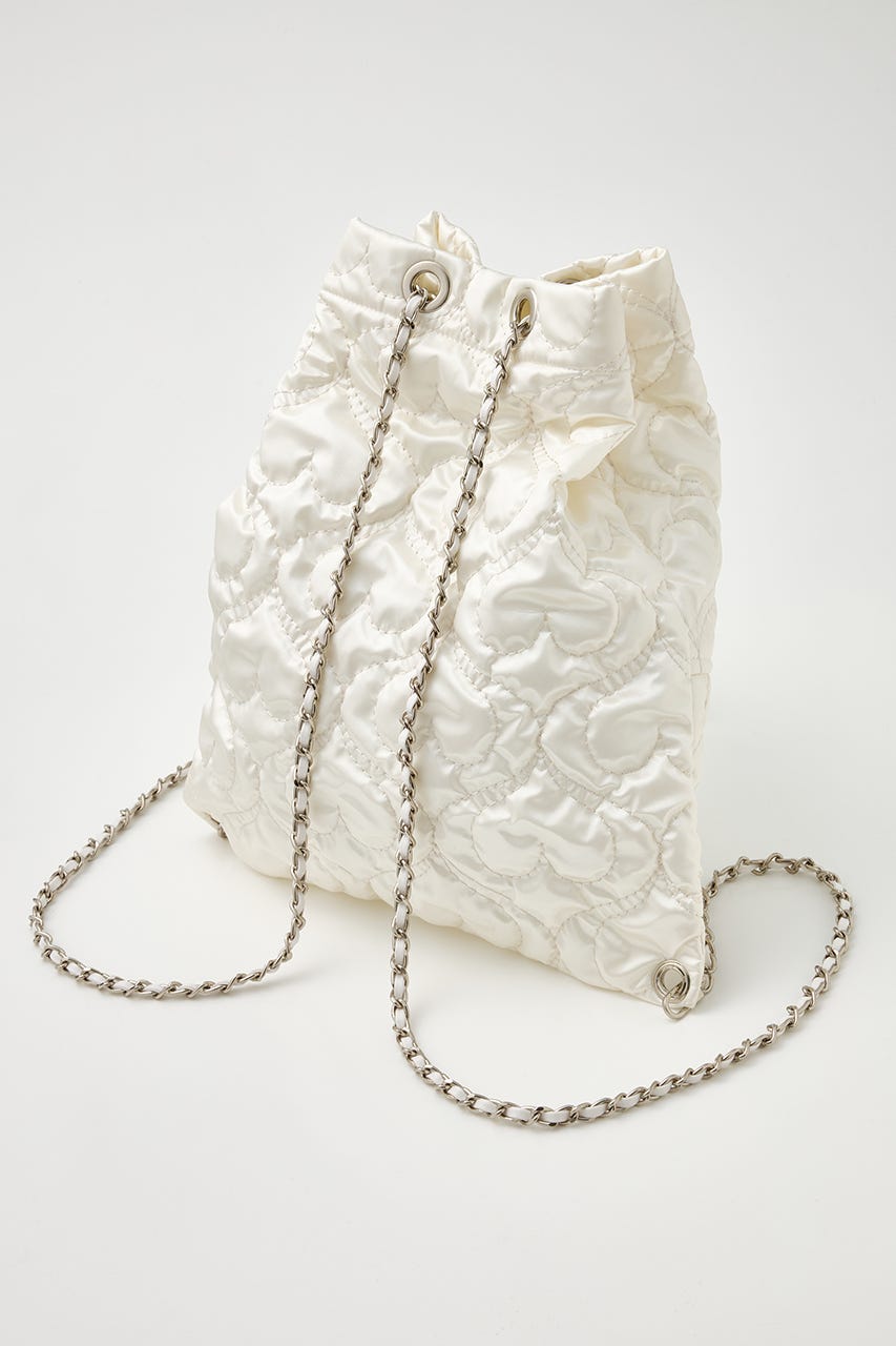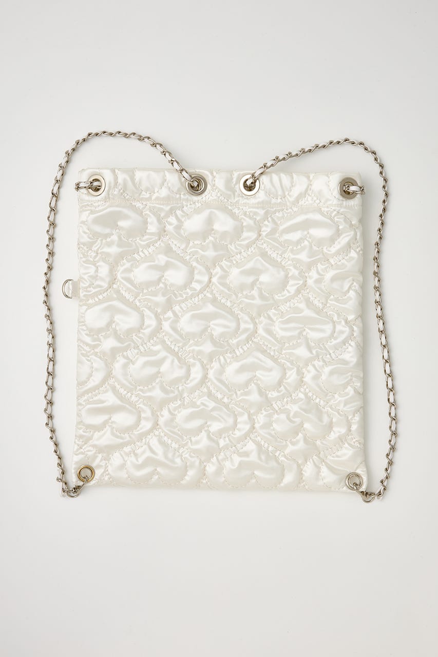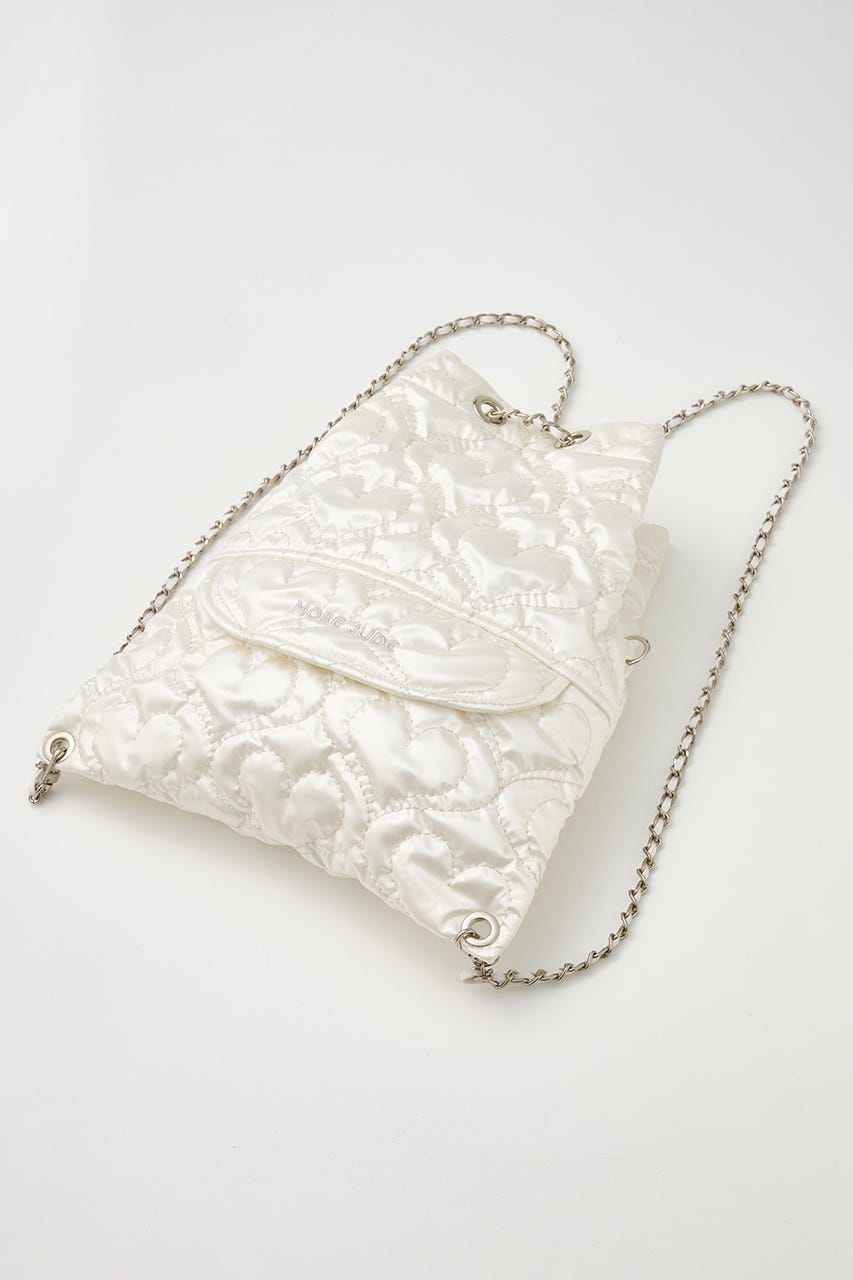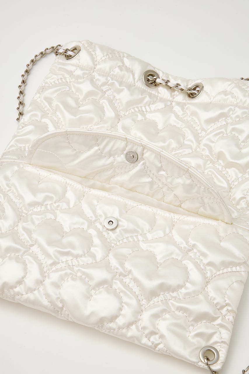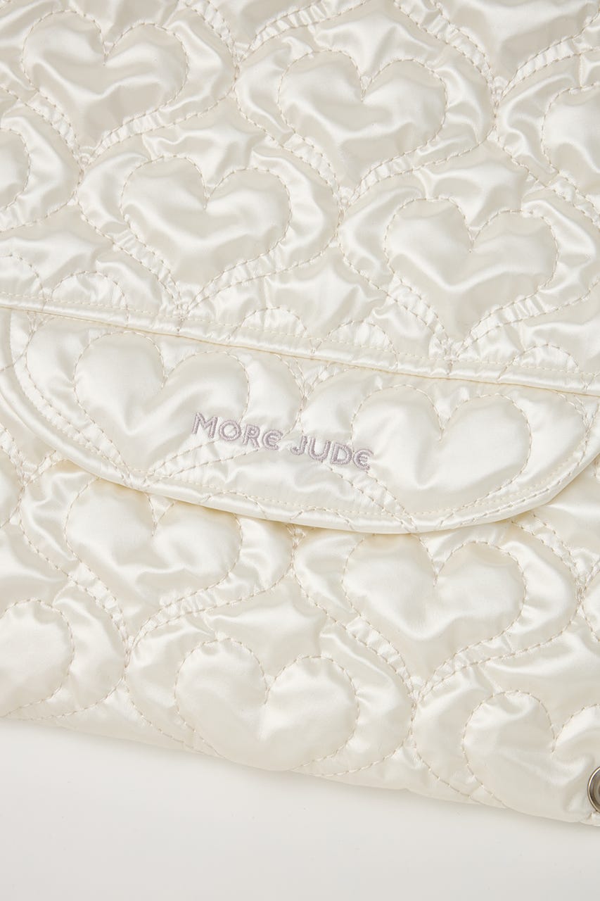 ハート刺繍のキルティング生地で光沢感があり、高級感がありながらもカジュアルにも使えるアイテム。