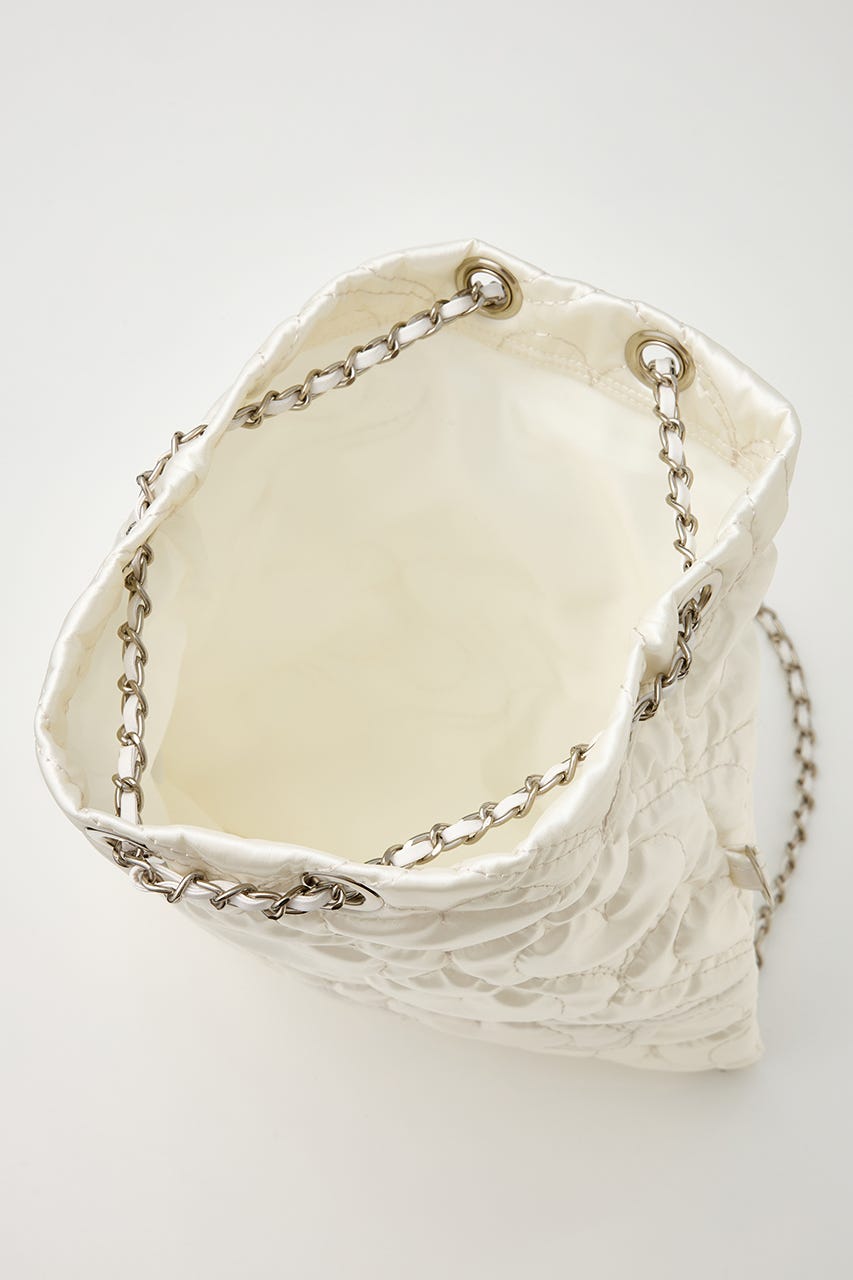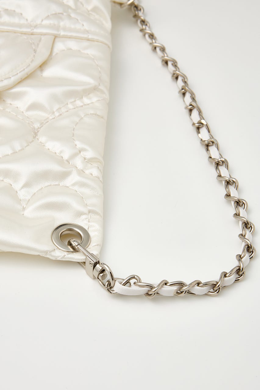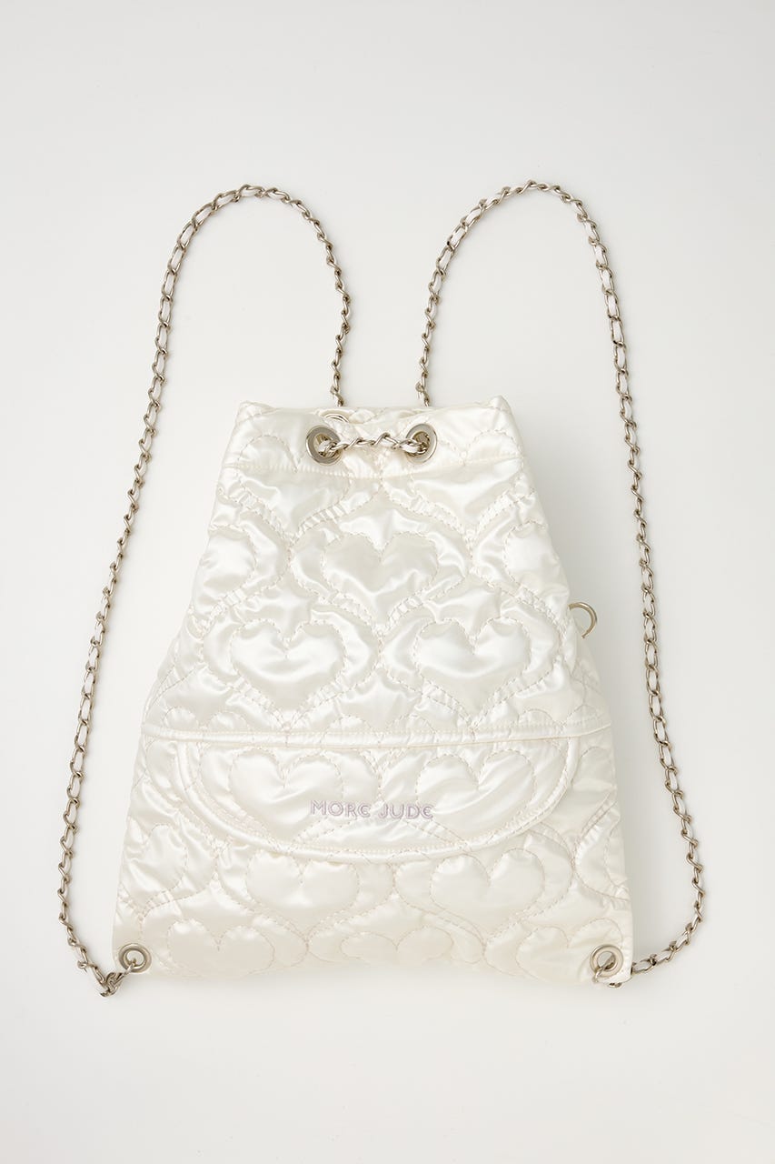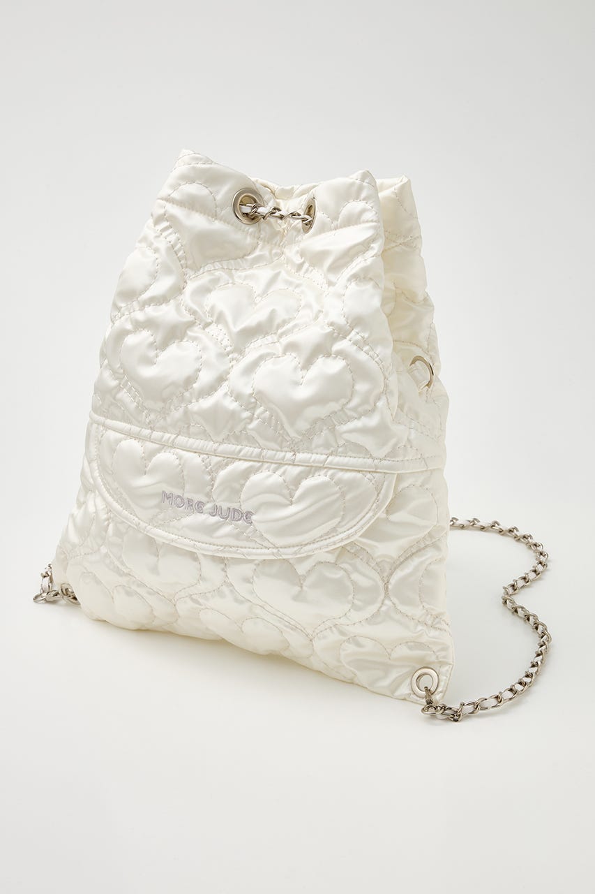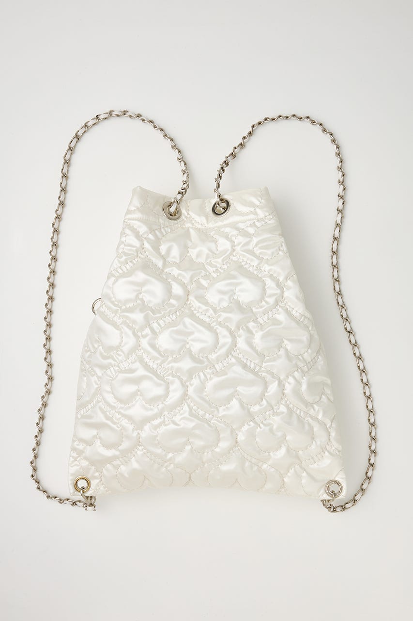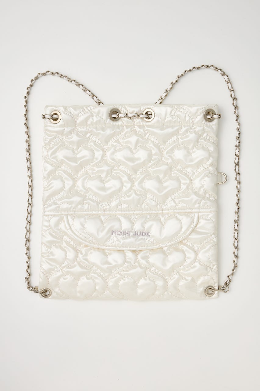 ハート刺繍のキルティング生地で光沢感があり、高級感がありながらもカジュアルにも使えるアイテム。
