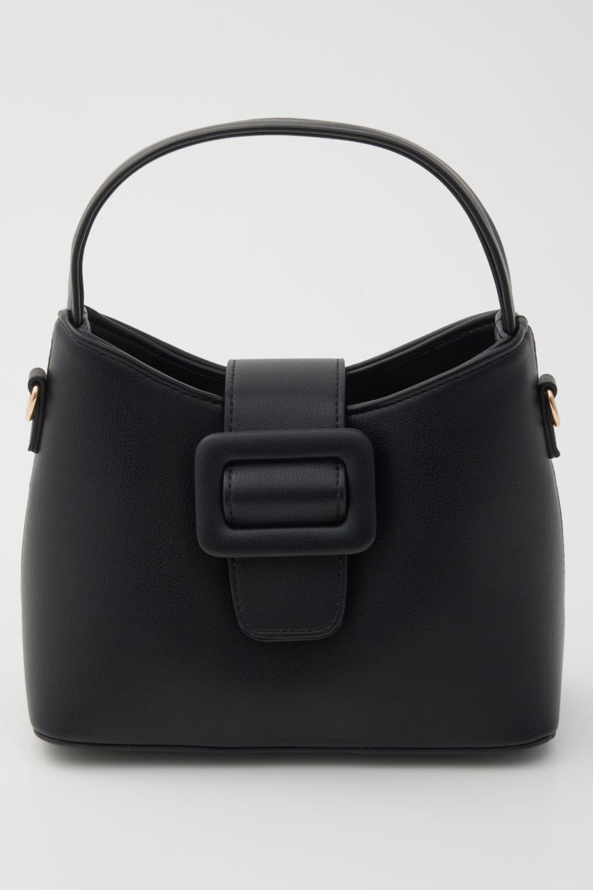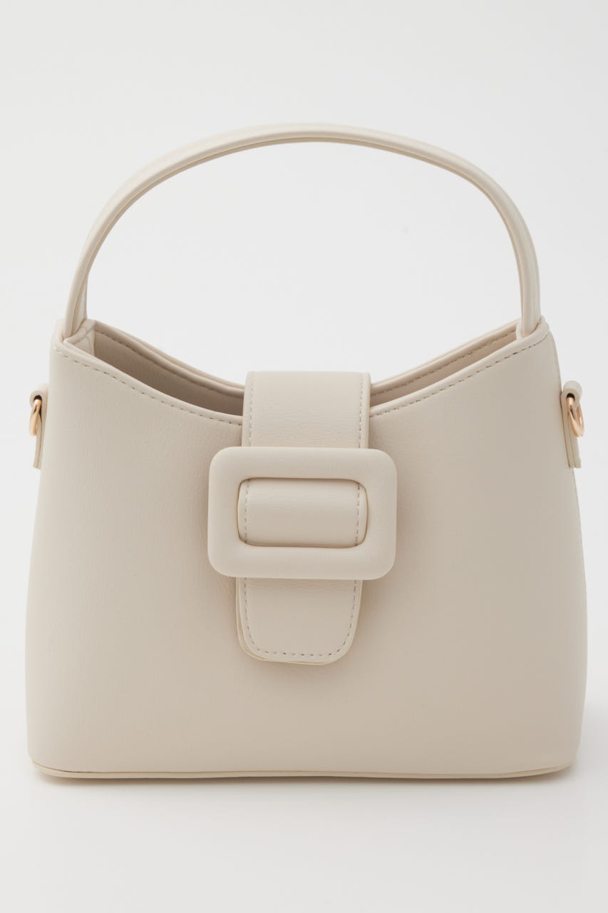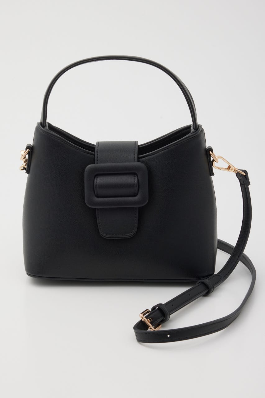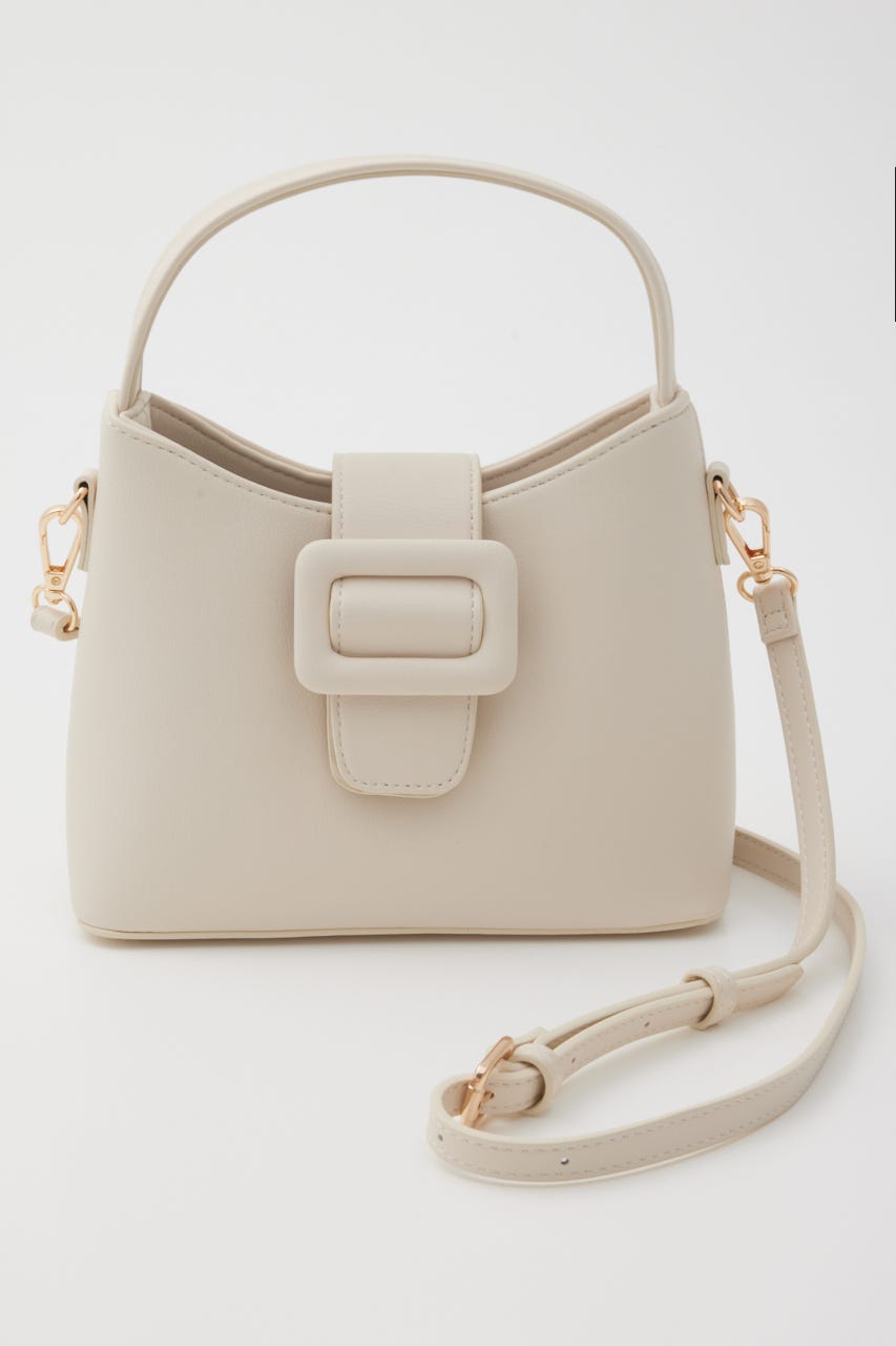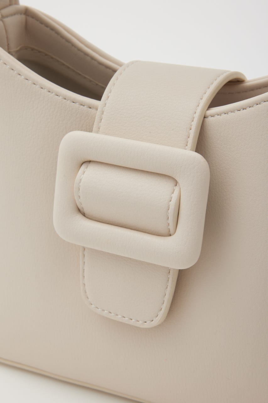 シンプルなスクエアフォルムに、大きなくるみバックルがアクセントになった上品デザインのショルダーバッグ。