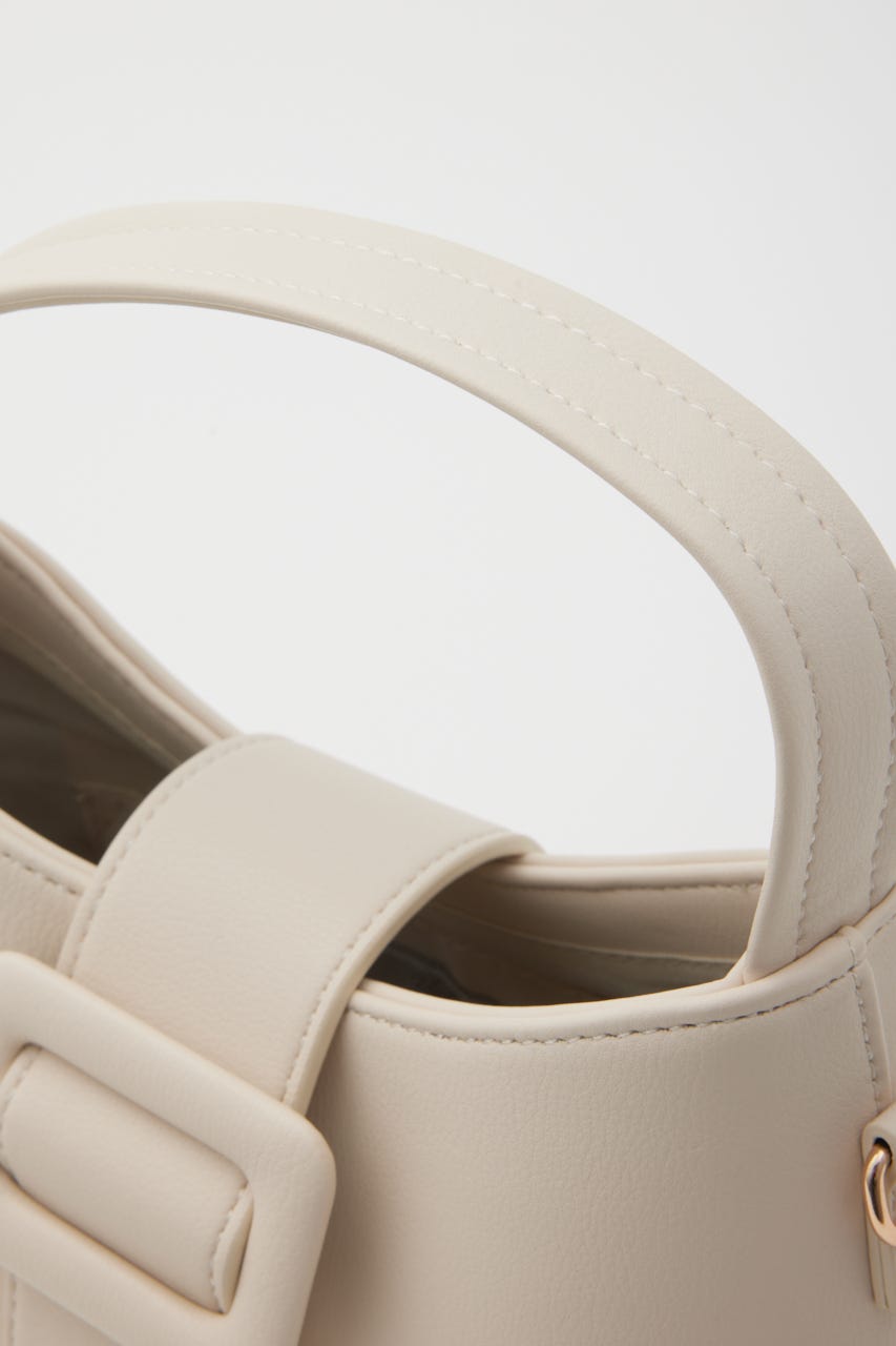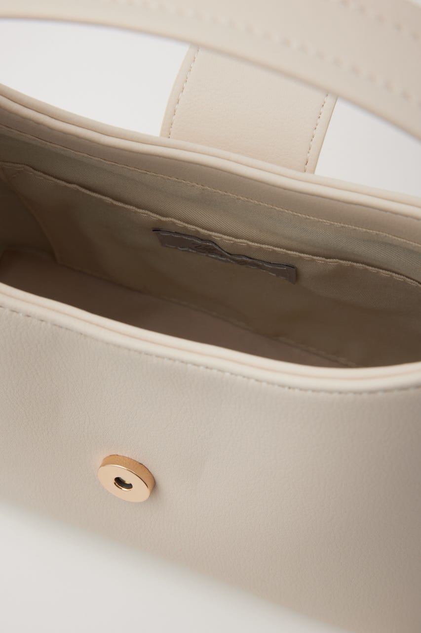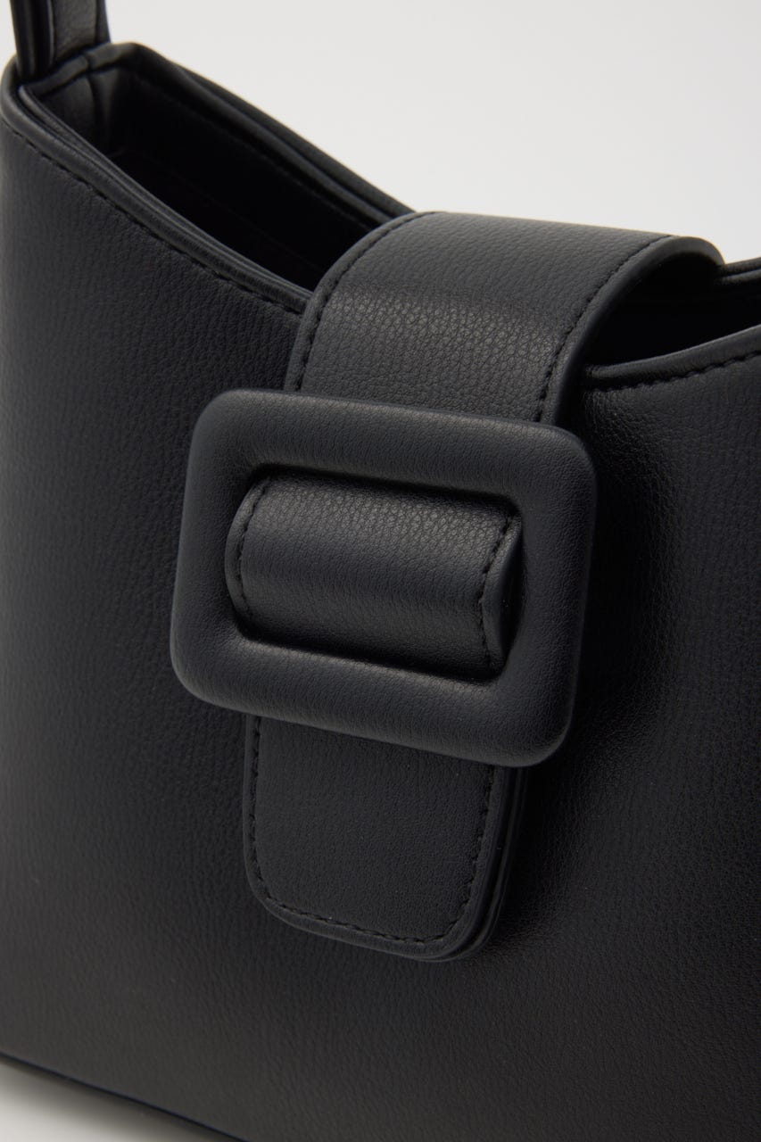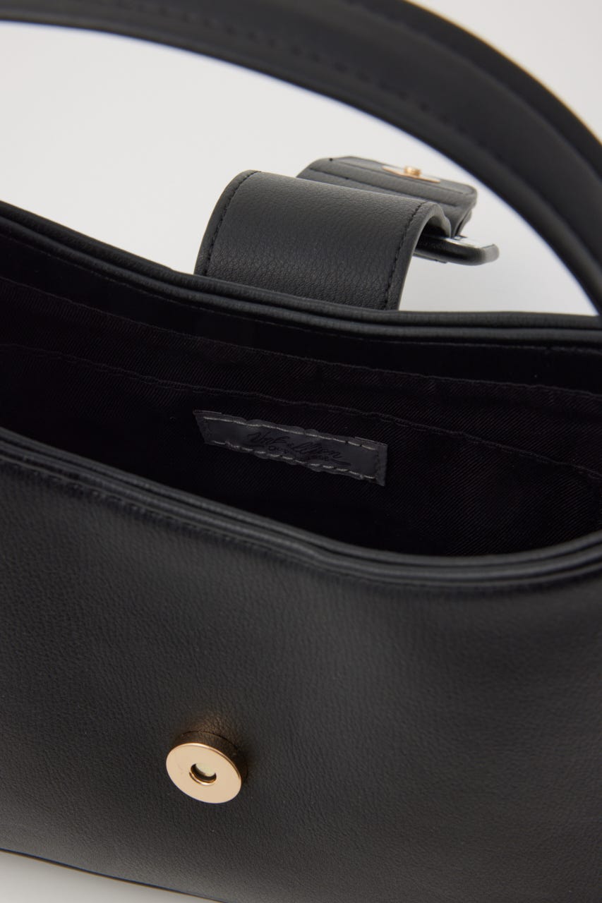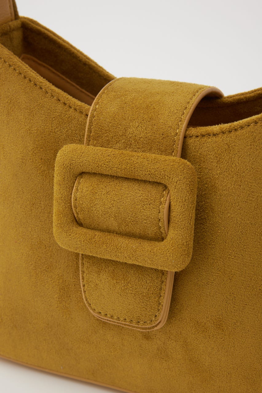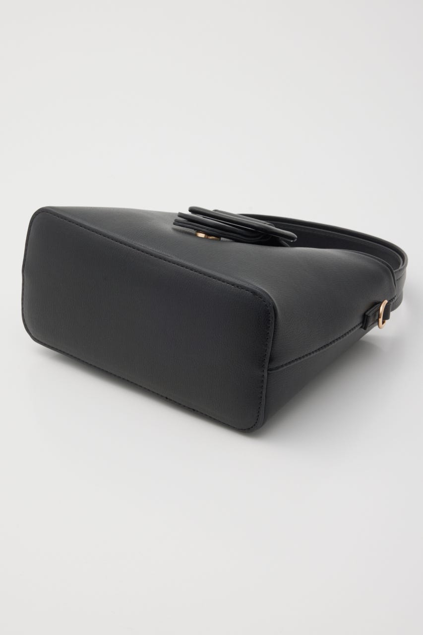 シンプルなスクエアフォルムに、大きなくるみバックルがアクセントになった上品デザインのショルダーバッグ。