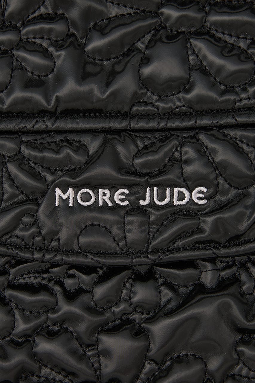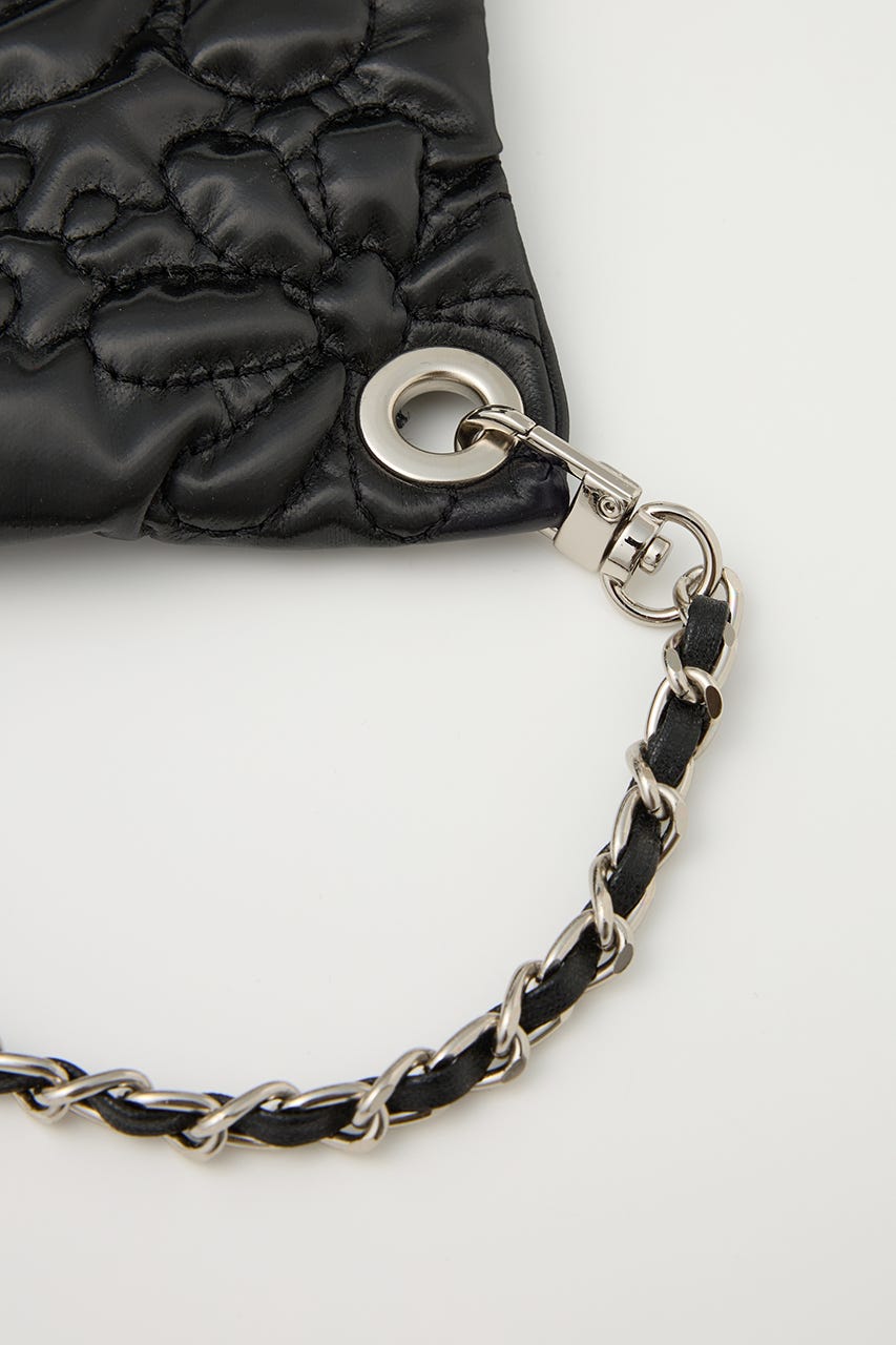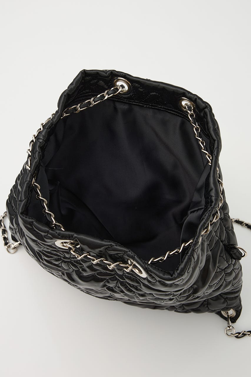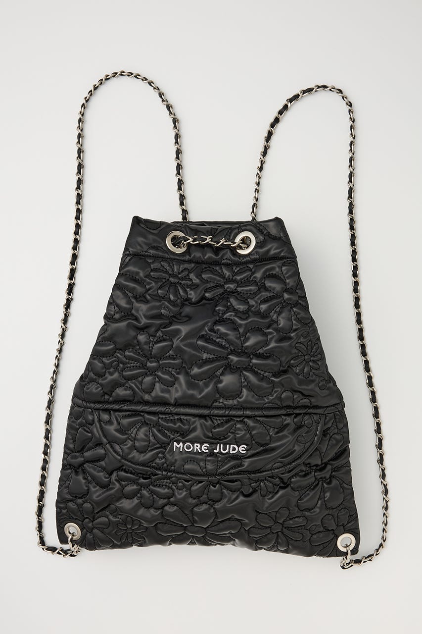 フラワー刺繍のキルティング生地で光沢感があり、高級感がありながらもカジュアルにも使えるアイテム。